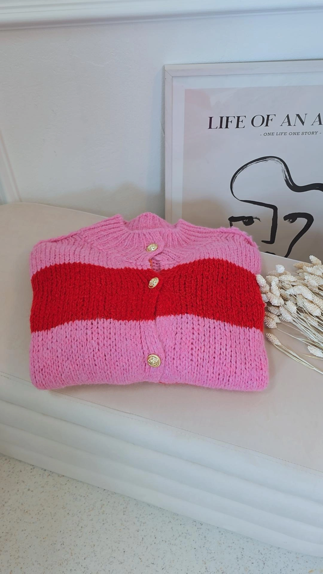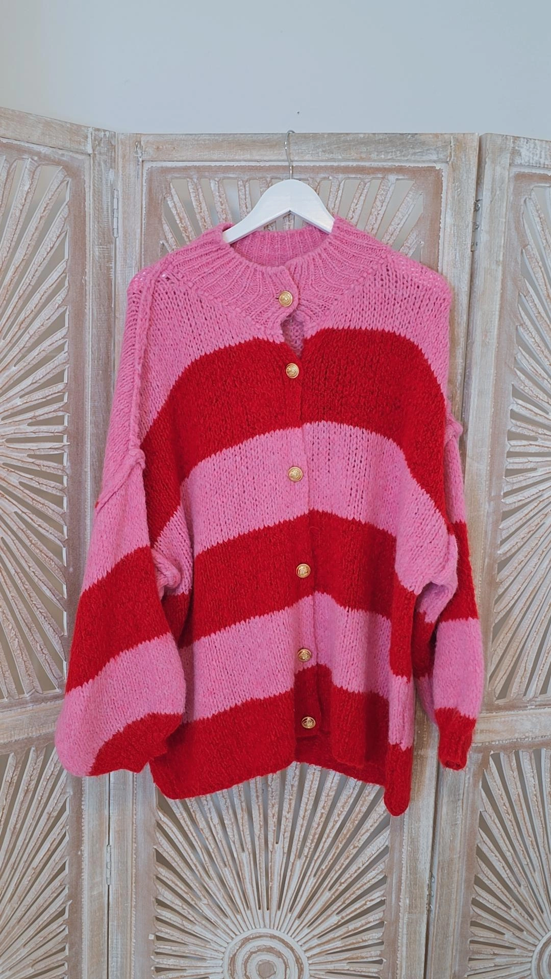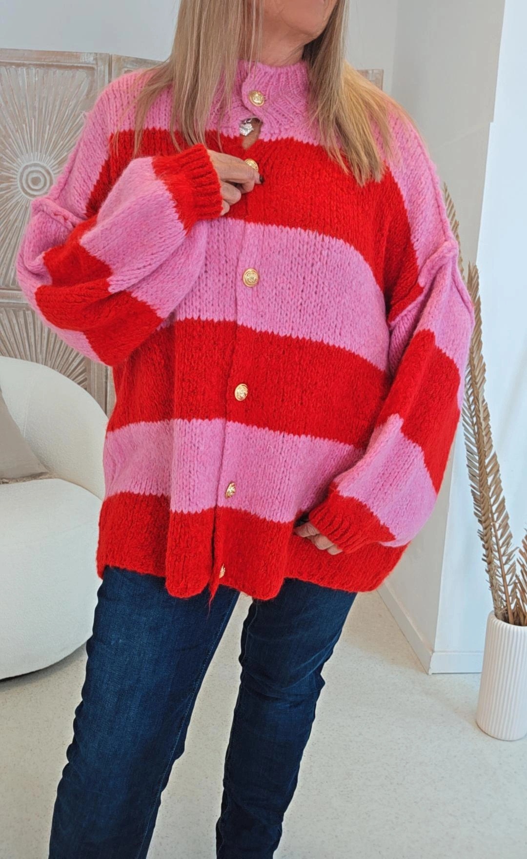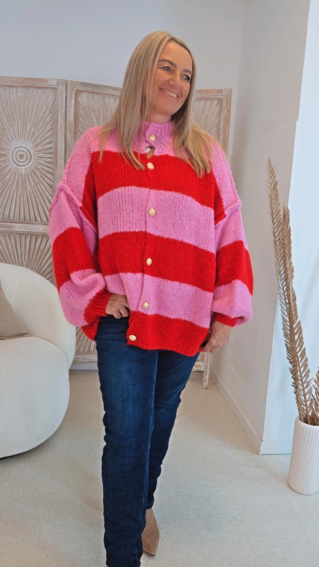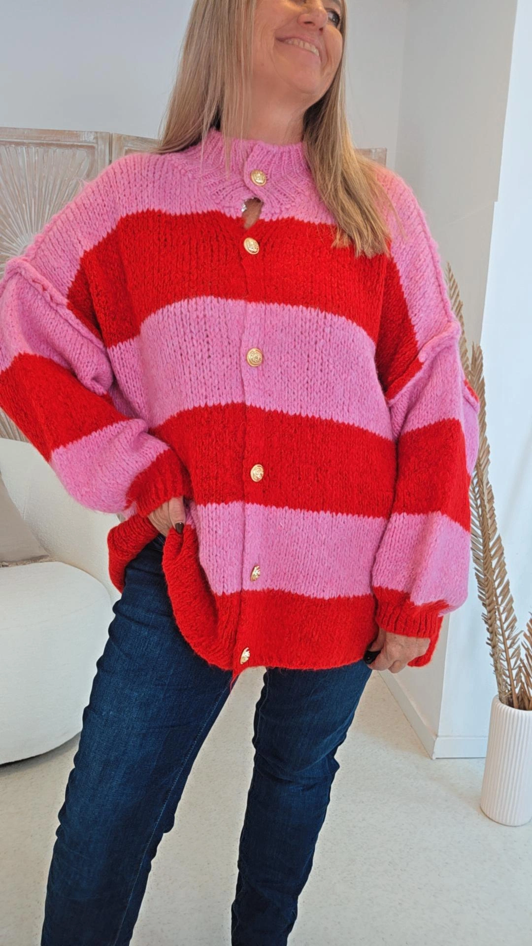 ROSA-ROT OVERSIZE STRICK CARDIGAN ABERFELD Blockstreifen