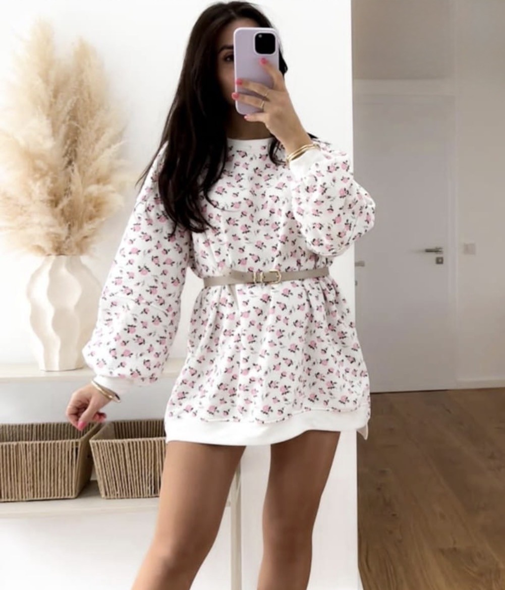 - Dieser Rundhals-Sweater begeistert mit einem ausdrucksstarken Blumenmuster als Aufdruck und verleiht jedem Outfit eine frische, feminine Note. Das harmonische Design sorgt für einen modernen Look, während der klassische Rundhalsausschnitt zeitlos und vielseitig kombinierbar bleibt. Angenehm zu tragen und perfekt für den Alltag, lässt sich der Sweater sowohl lässig als auch stilvoll stylen – ein echtes Highlight für alle, die florale Akzente lieben.