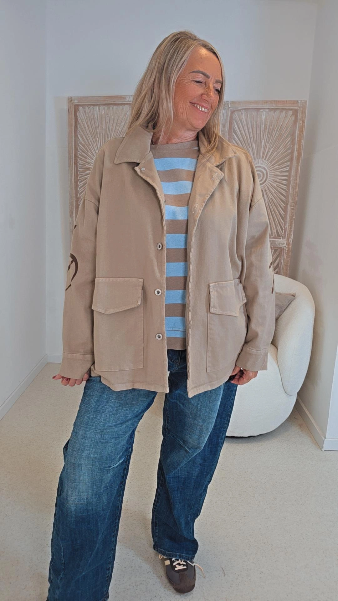 Je kleiner die eigene Größe um so lockerer sitzt der Artikel. Näheres findet ihr in unserer Rubrik "MEINE PERFEKTE GRÖSSE" Bitte Maße beachten. Angaben können +/-3 cm abweichen. Dekorationsartikel gehören nicht zum Lieferumfang.