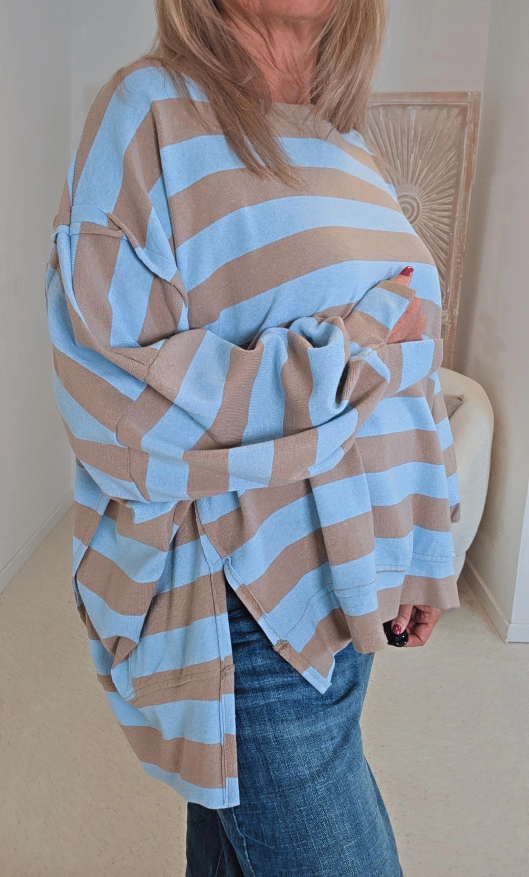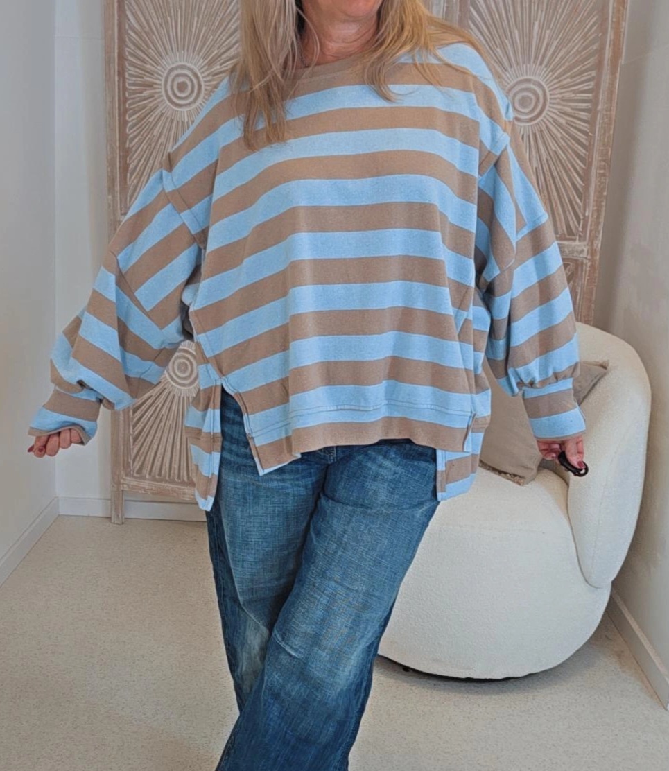 TAUPE-HELLBLAU OVERSIZE SWEATER AYLIN BLOCKSTREIFEN.6