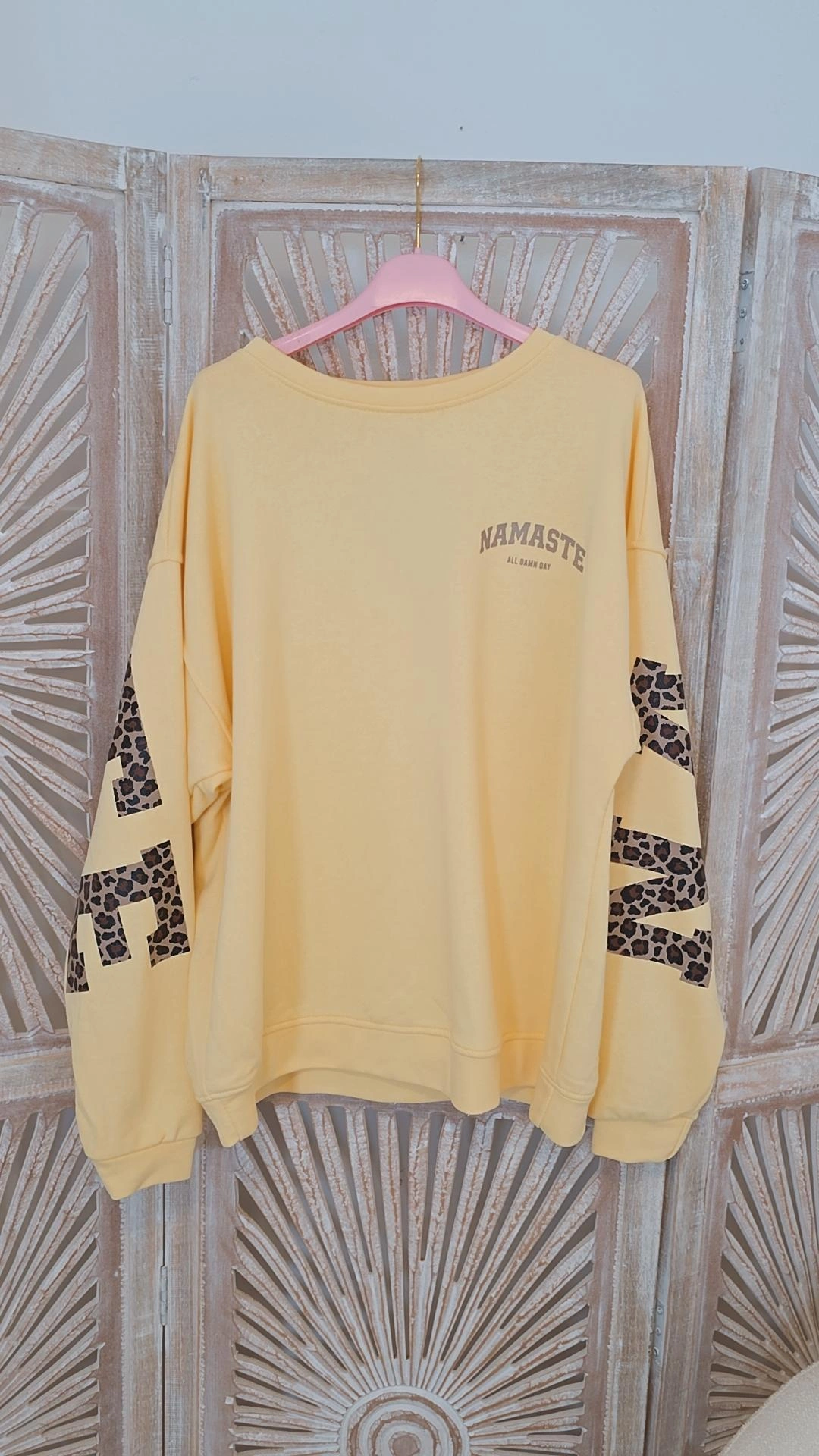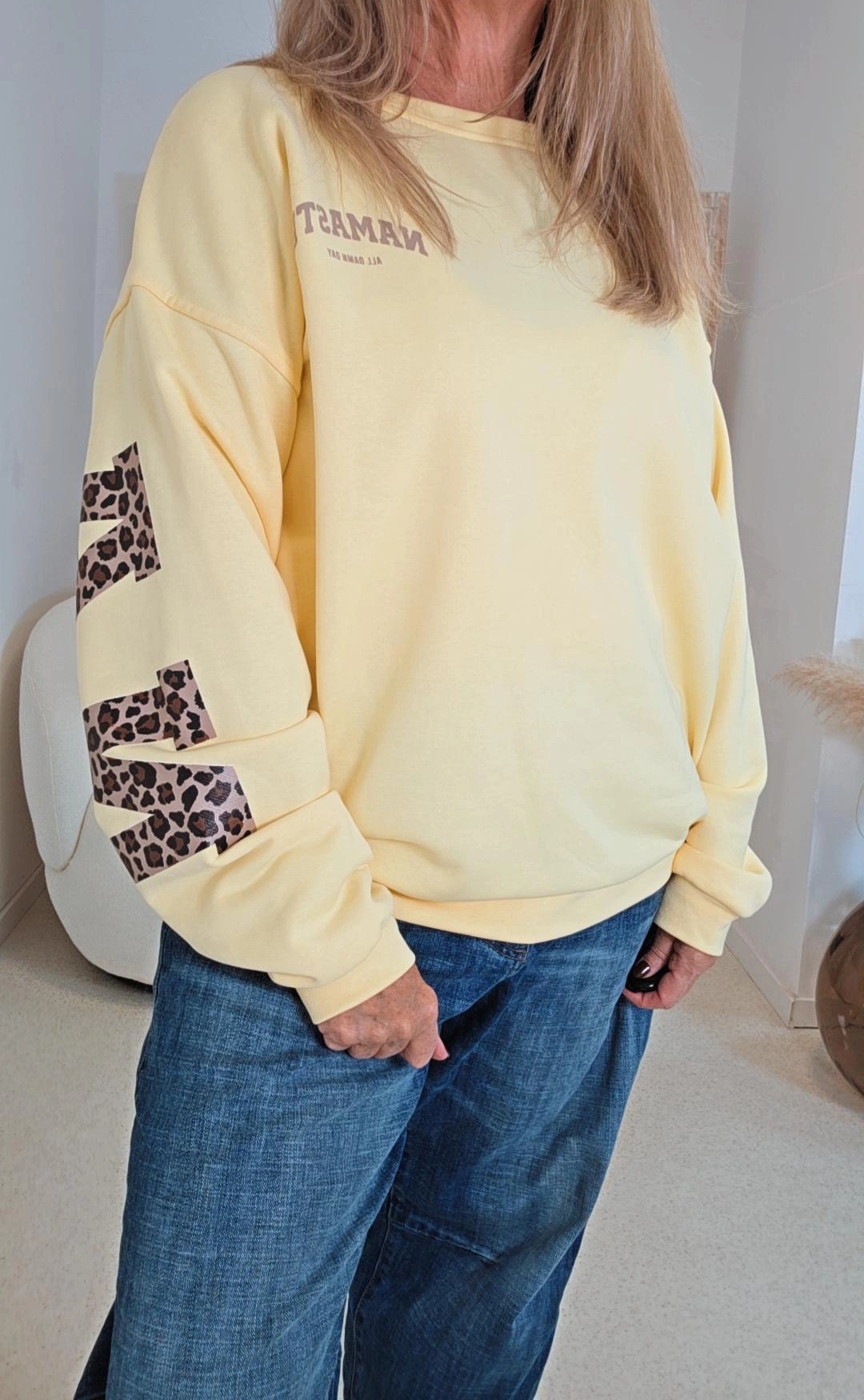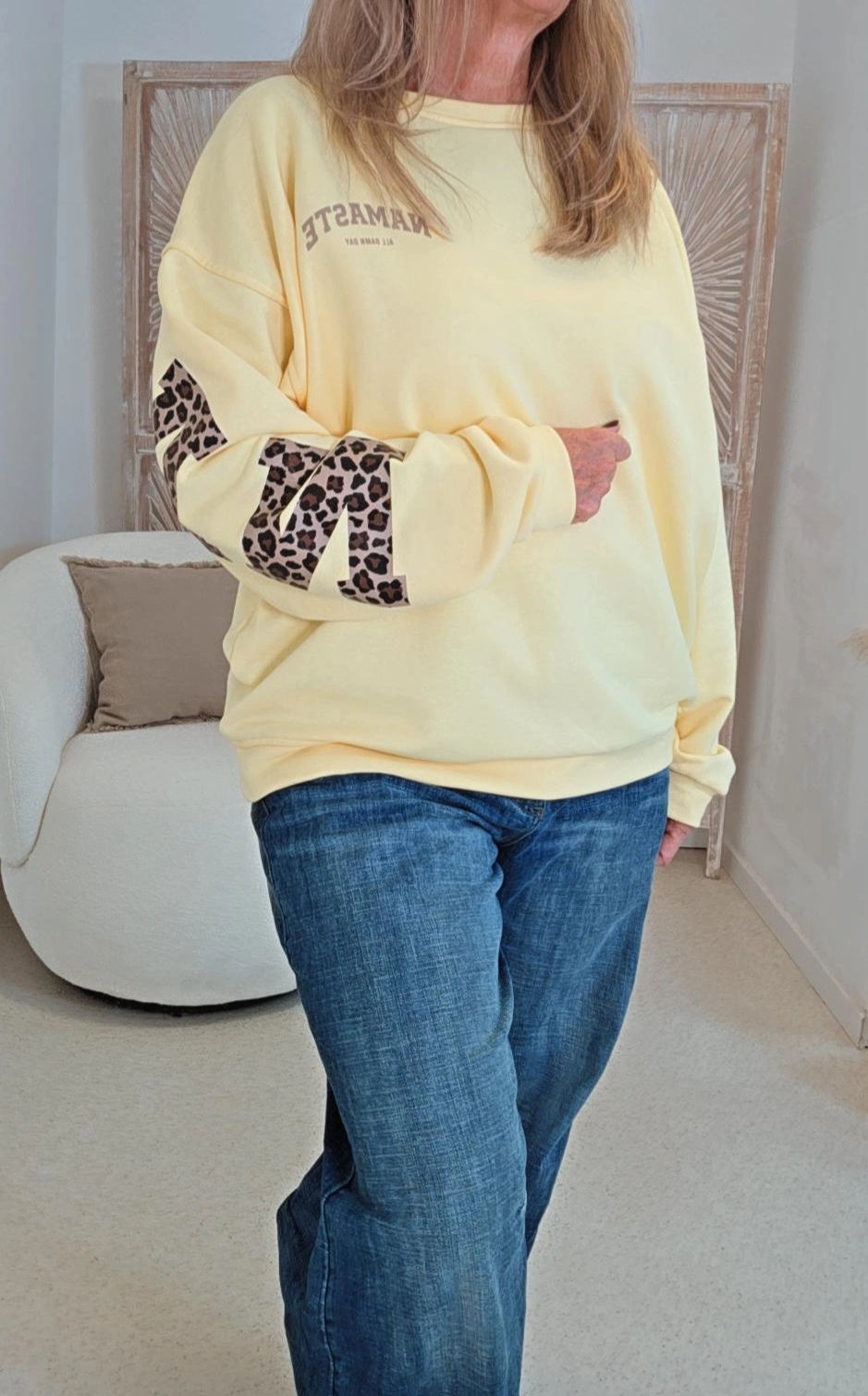 - Trendiger Statement Sweater mit LEO Aufdruck Namaste