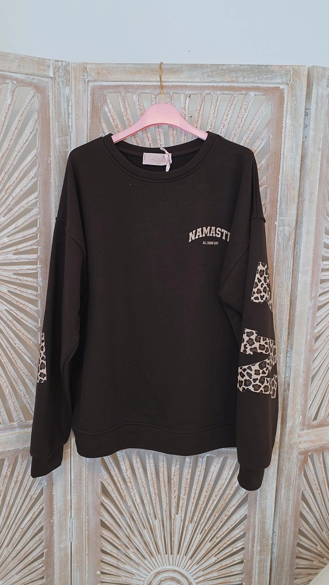 - Trendiger Statement Sweater mit LEO Aufdruck Namaste