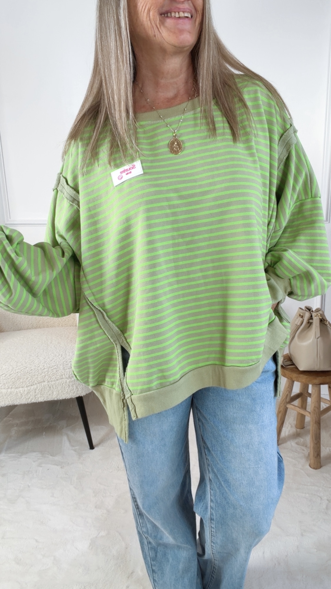 Oversize Sweater „Sourire Smile“ mit Streifen und markanten Nähten