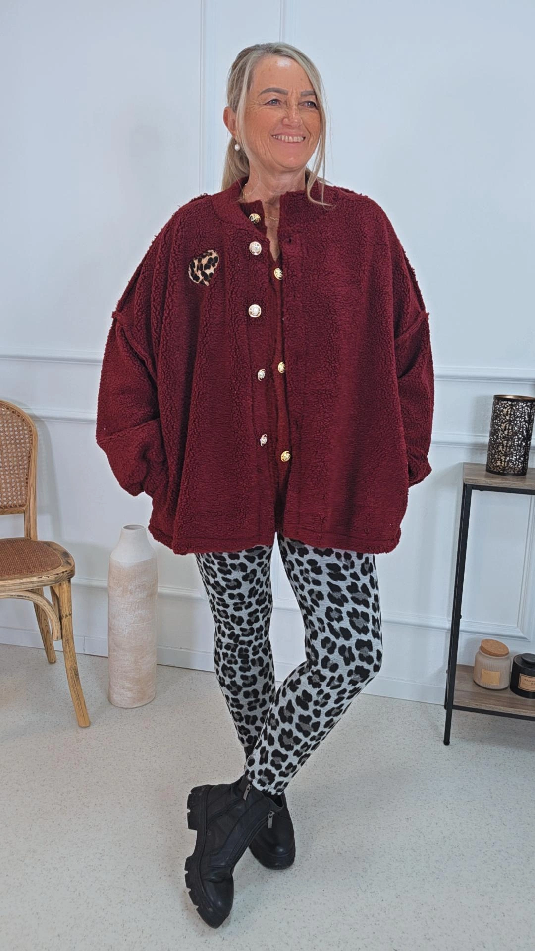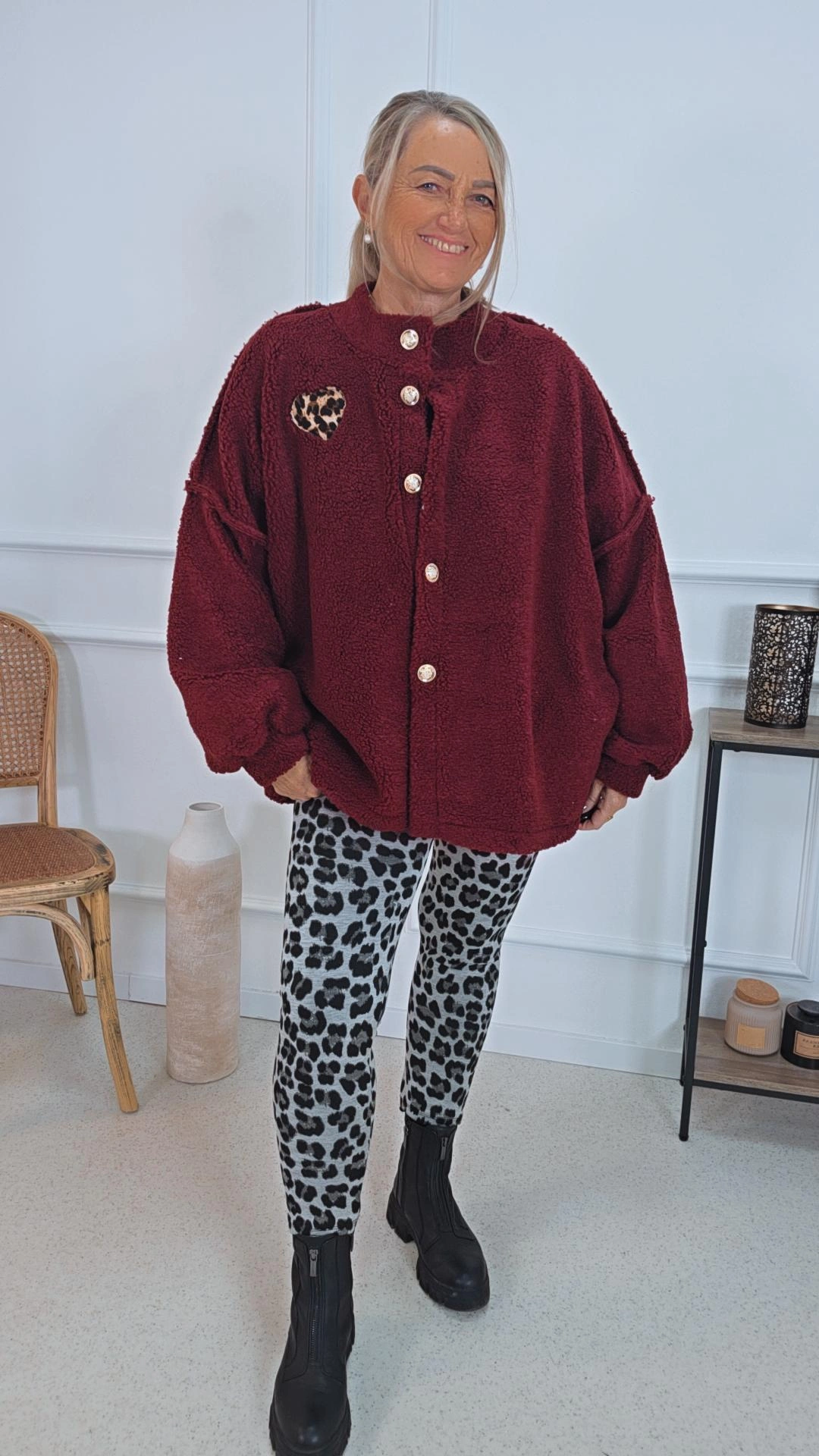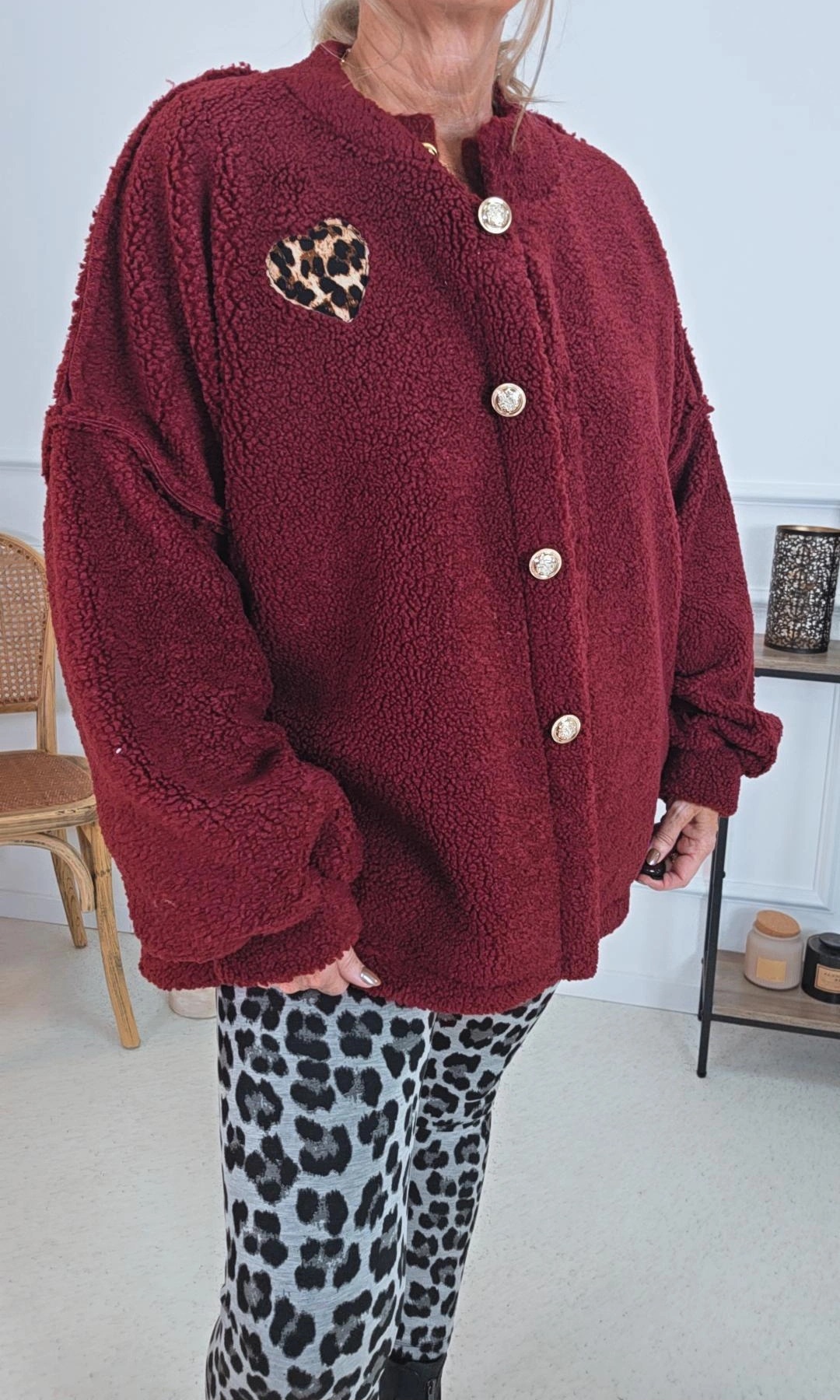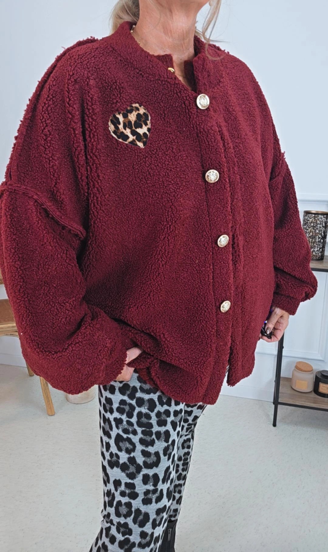 BURGUNDY OVERSIZE TEDDY JACKE JANNIKA LEO HEART.1