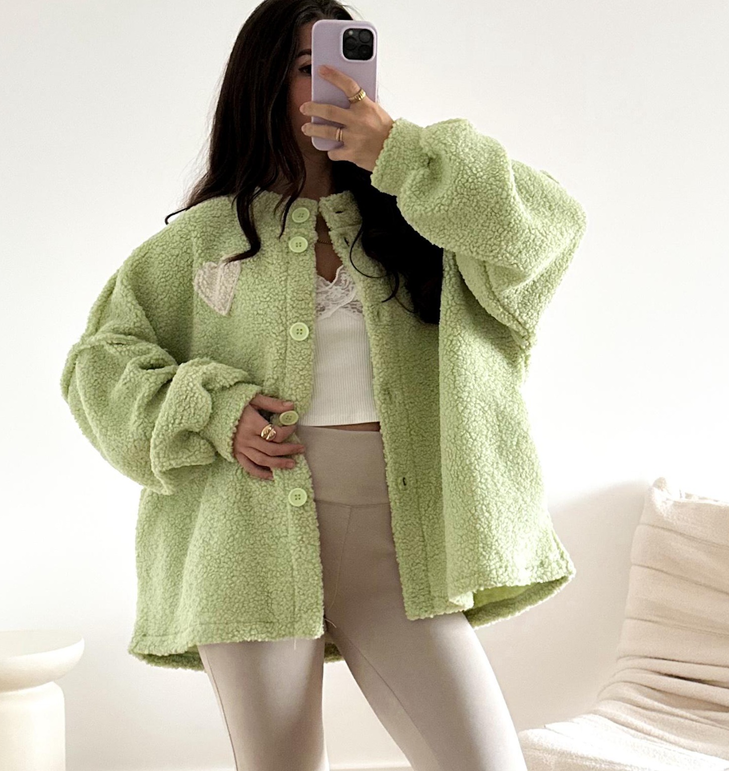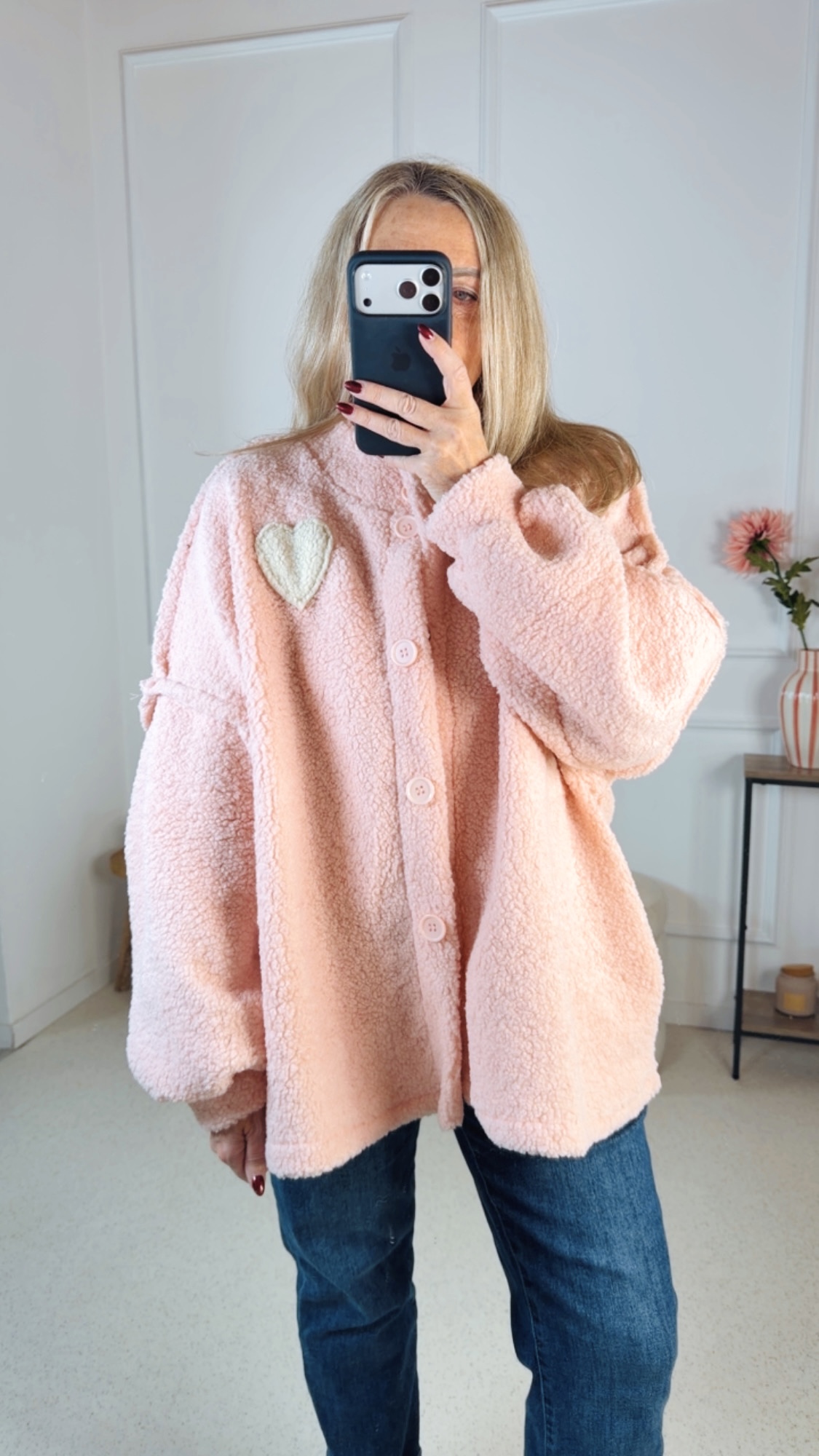 🧸 Teddyjacke Jannis – Stylischer Oversize-Look mit Herz