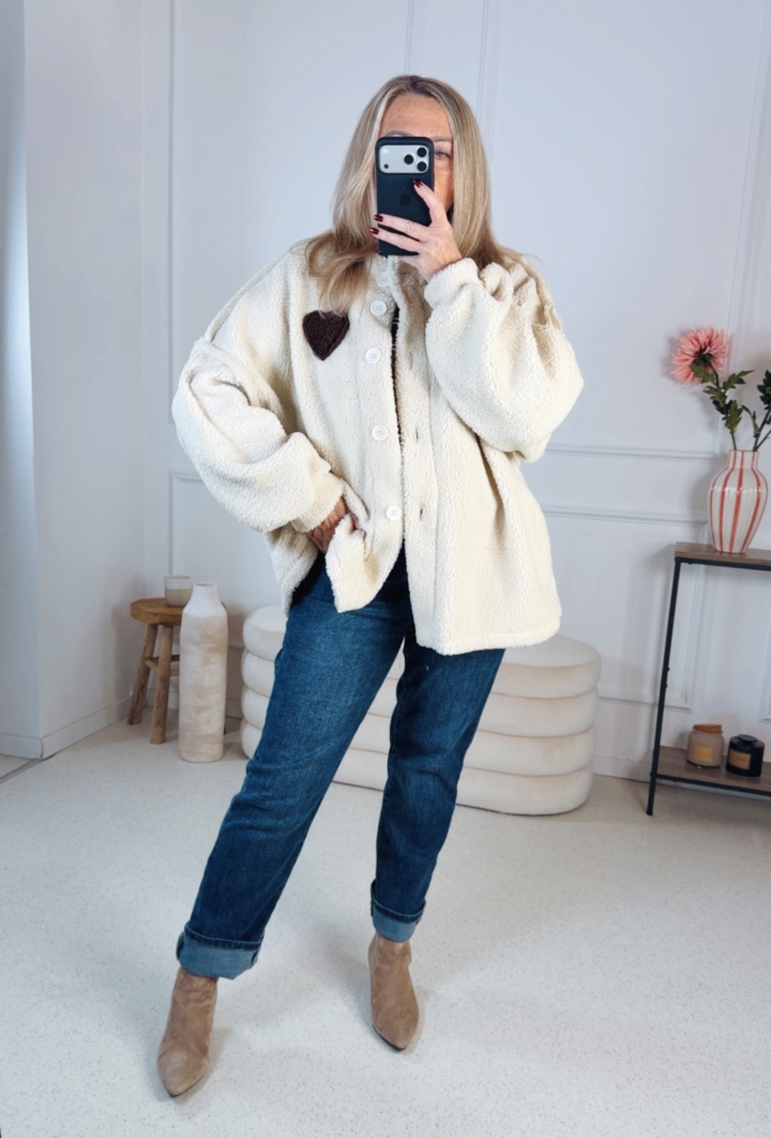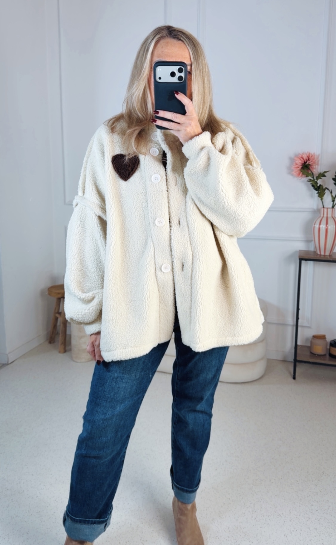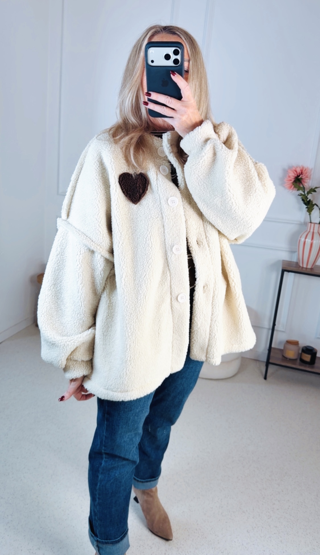 🧸 Teddyjacke Jannis – Stylischer Oversize-Look mit Herz