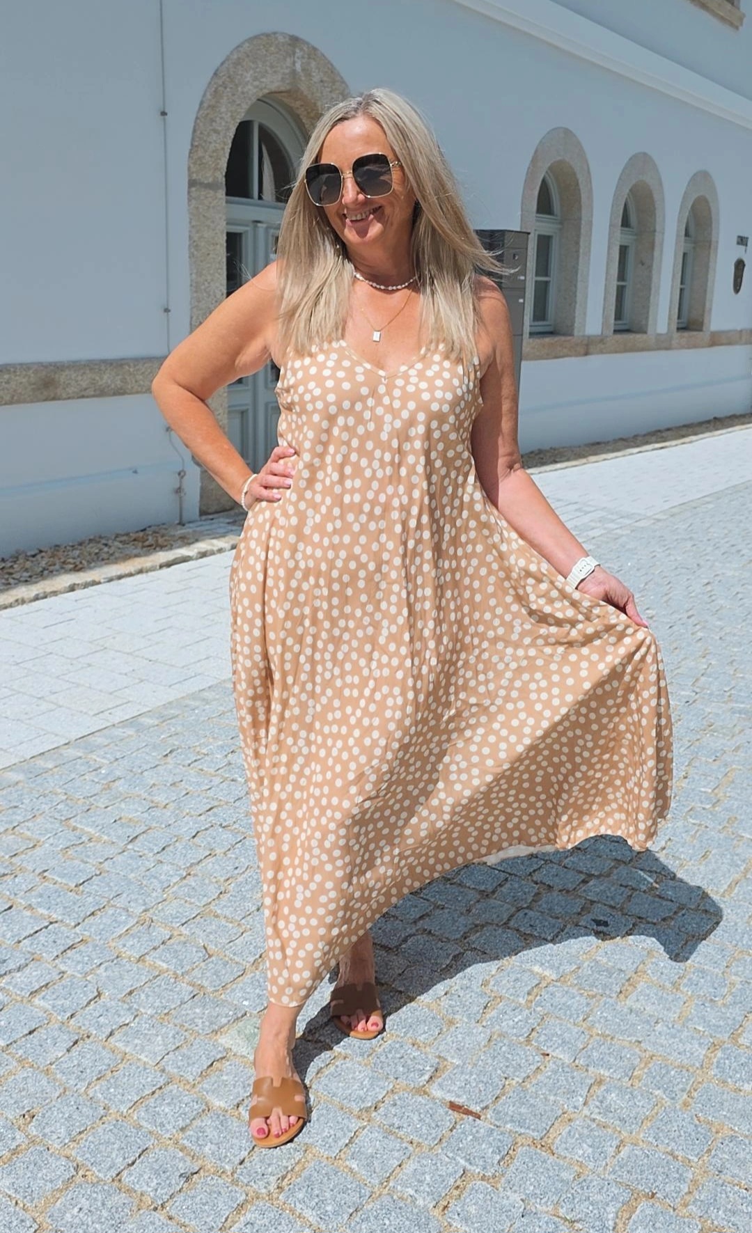 PÜNKTCHENKLEID VIVIAN ÄRMELLOS LANG 34-42/44 Made in Italy Polka Dots