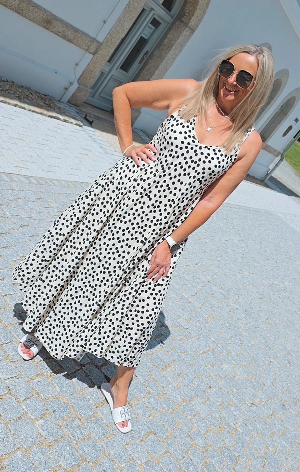 PÜNKTCHENKLEID VIVIAN ÄRMELLOS LANG 34-42/44 Made in Italy Polka Dots
