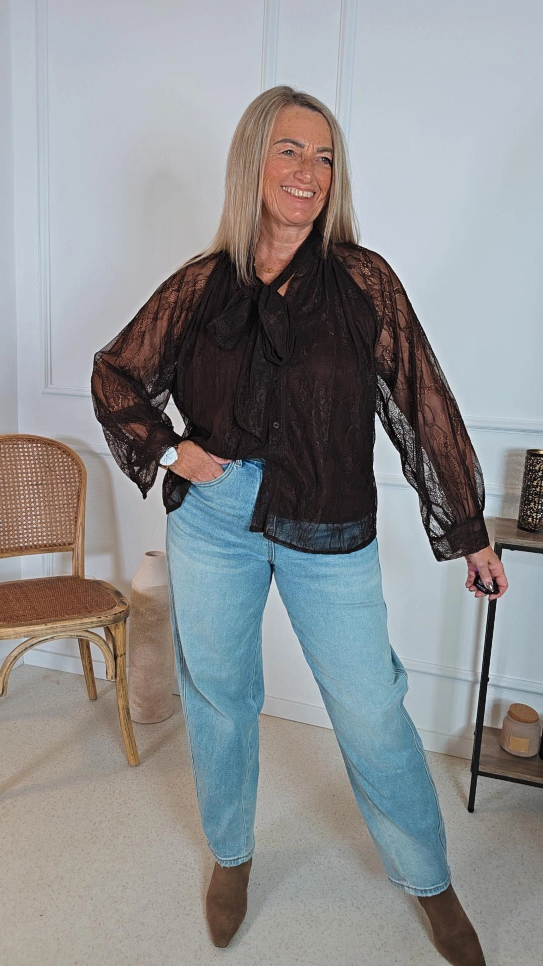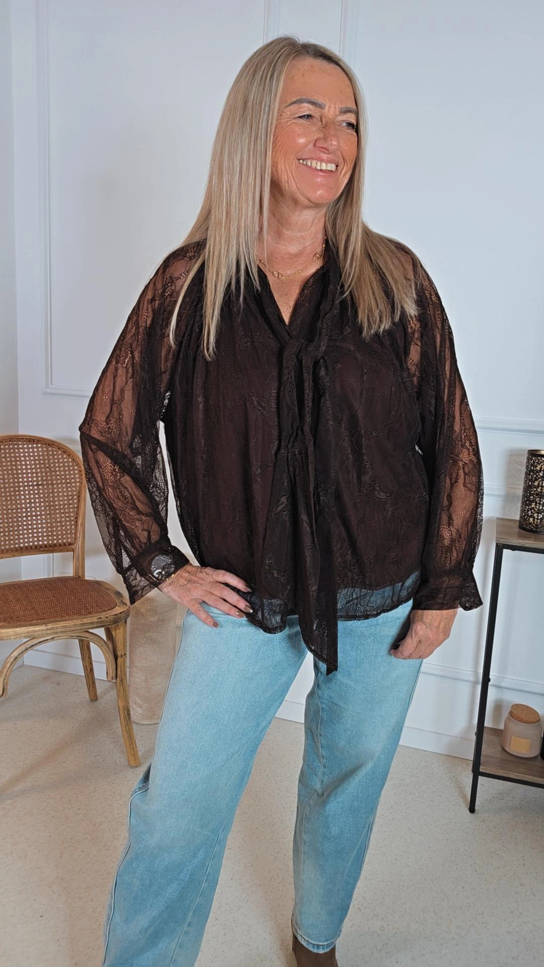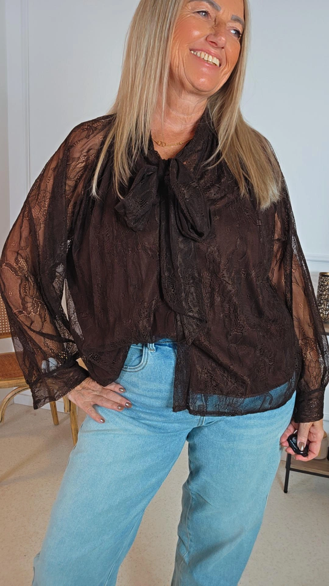 Produktbeschreibung – Elegante Spitzenbluse mit Schluppe