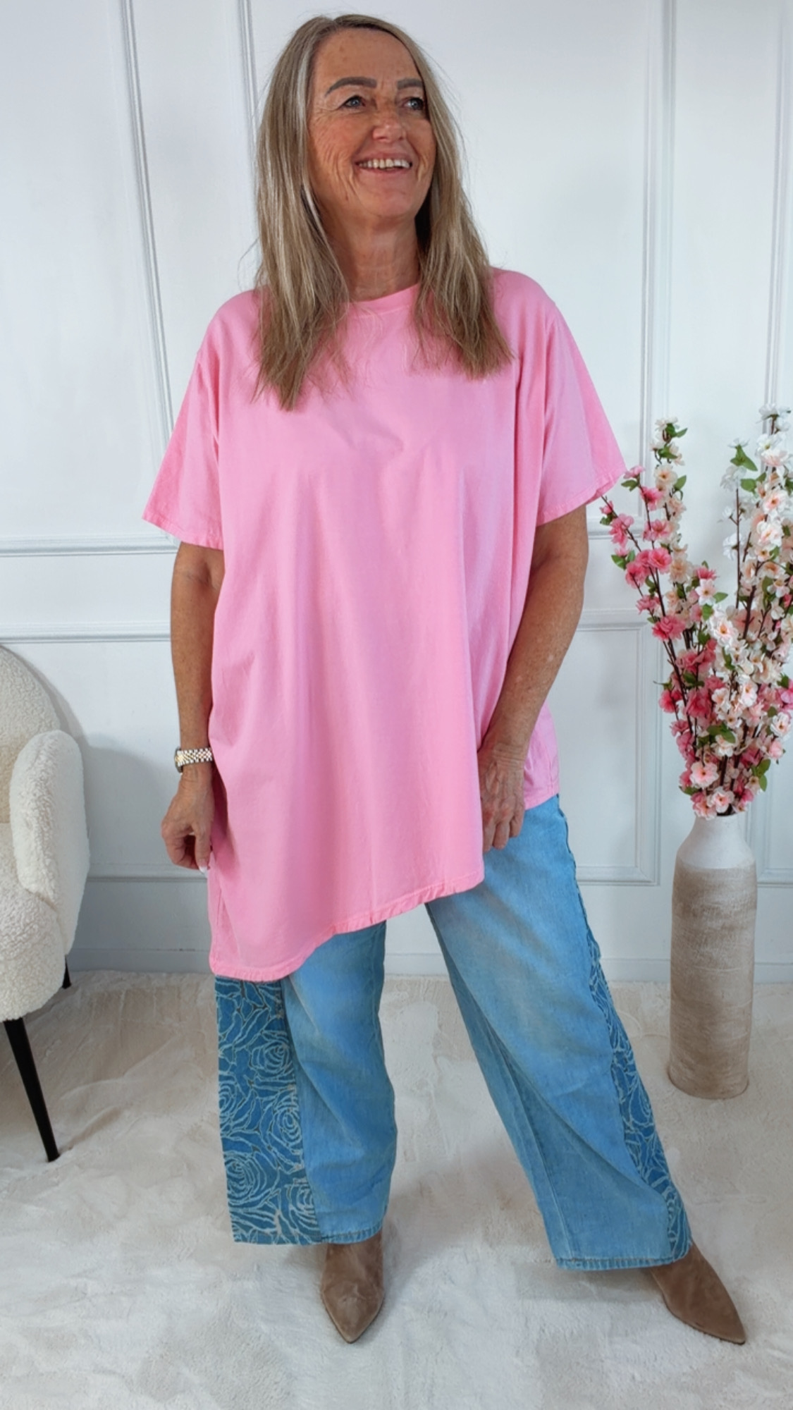 Dieses schöne Oversize asymmetrische Shirt ist ein frischer Hingucker für deine Frühlingsgarderobe. Der moderne Schnitt sorgt für eine besondere Silhouette und verleiht dem Shirt eine trendige, lässige Ausstrahlung. Die asymmetrische Form bringt Bewegung in den Look und macht es zu einem stylischen Allrounder für Alltag und Freizeit.