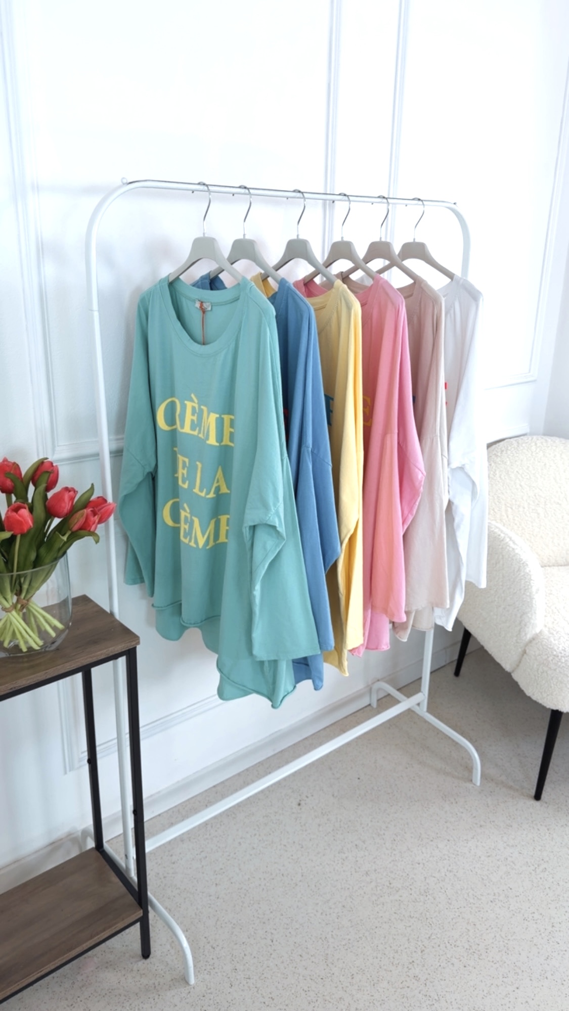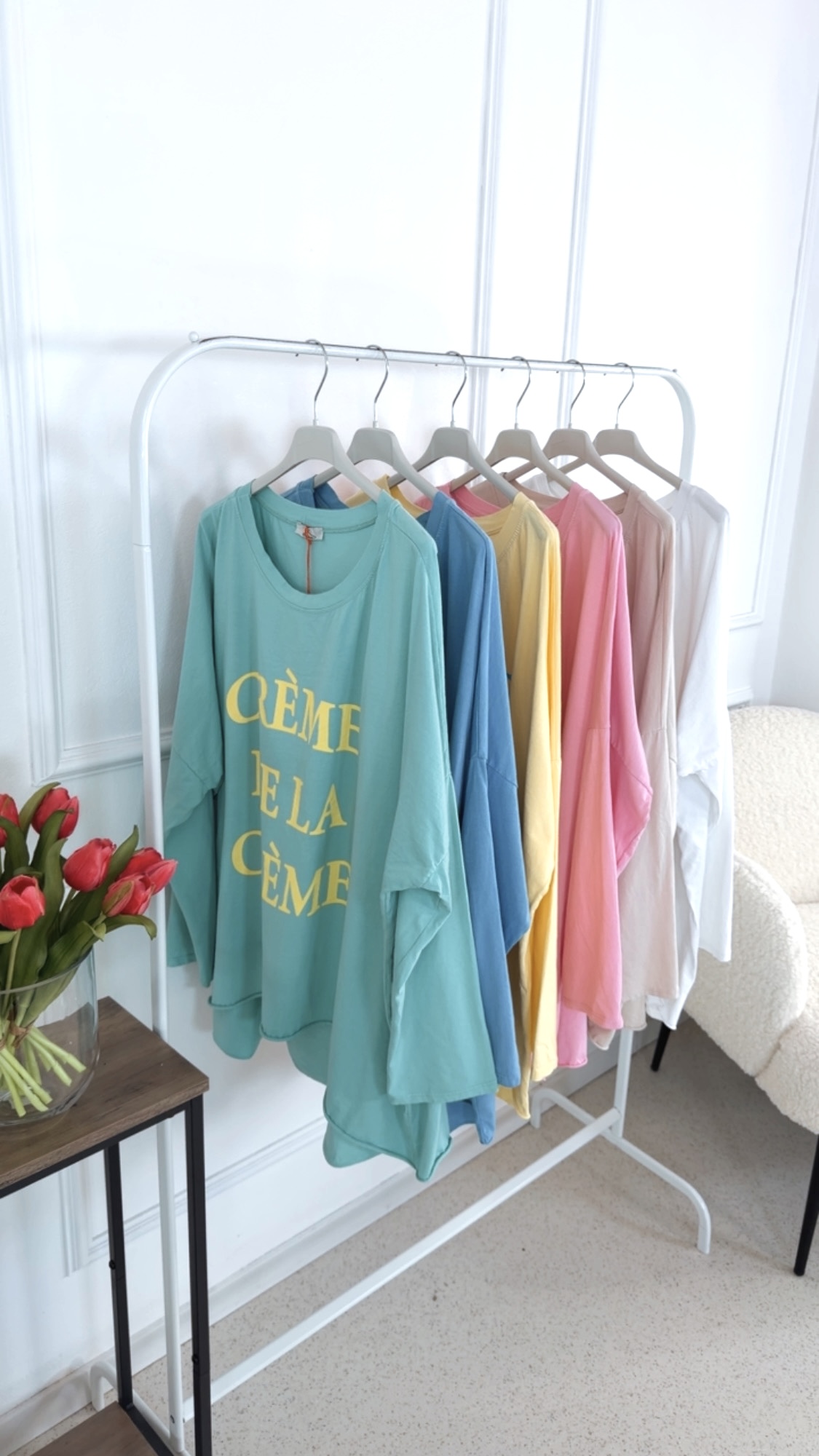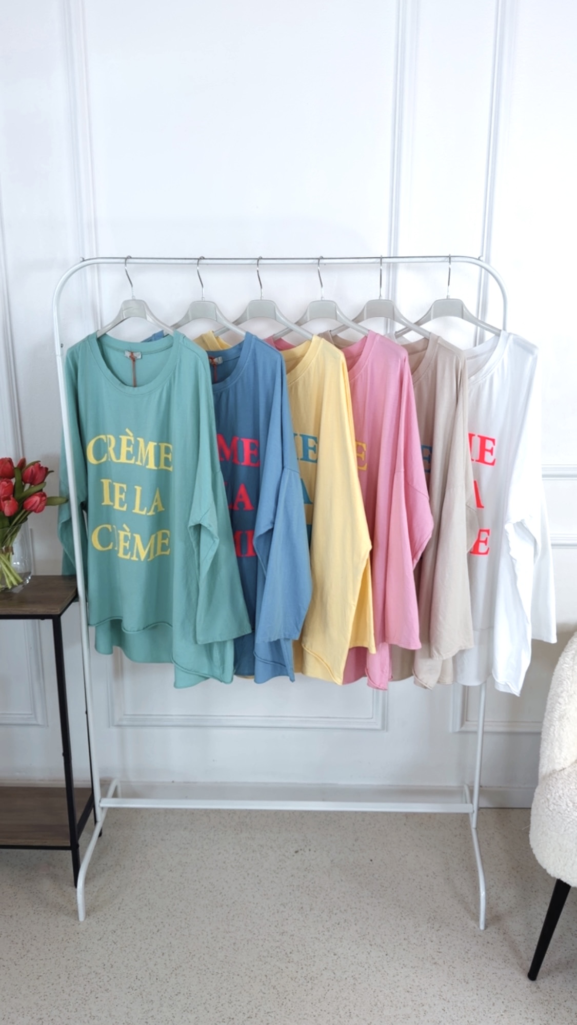 Dieses Long Shirt im angesagten Vokuhila-Schnitt überzeugt mit einem lässigen und zugleich stylischen Look. Der Rundhalsausschnitt sorgt für eine klassische Silhouette, während die langen Ärmel zum Hochkrempeln vielseitige Styling-Möglichkeiten bieten. Auf der Vorderseite setzt der Schriftzug „Crème de la Crème“ ein modisches Statement und verleiht dem Shirt eine besondere Note. Locker geschnitten und angenehm zu tragen, ist dieses Long Shirt der perfekte Begleiter für entspannte, trendbewusste Alltagsoutfits.