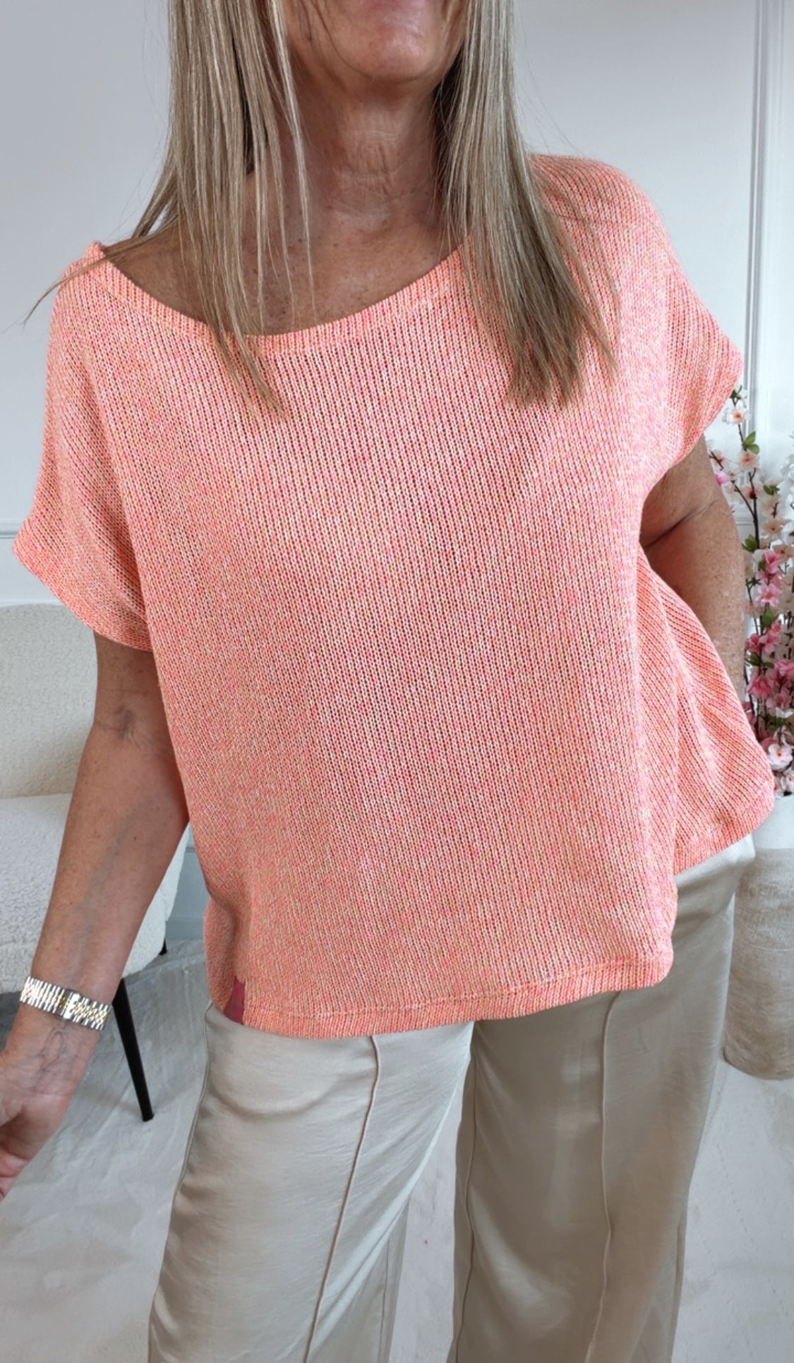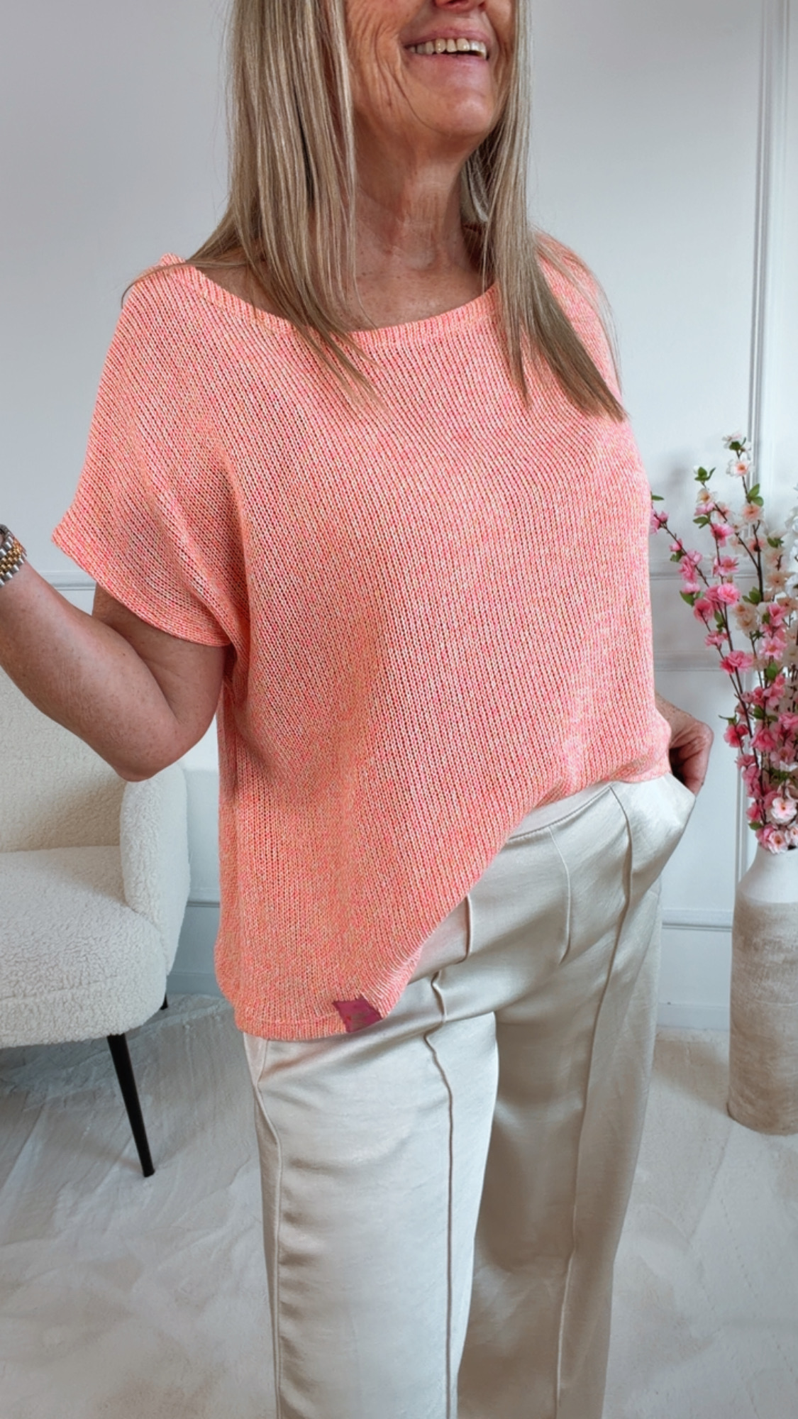 Der wunderschöne „Zelmira Cotton Summer Knit“ ist ein perfekter Begleiter für warme Tage. Das locker gestrickte Material sorgt für eine luftige, leichte Optik und verleiht dem Oberteil einen entspannten Sommerlook.