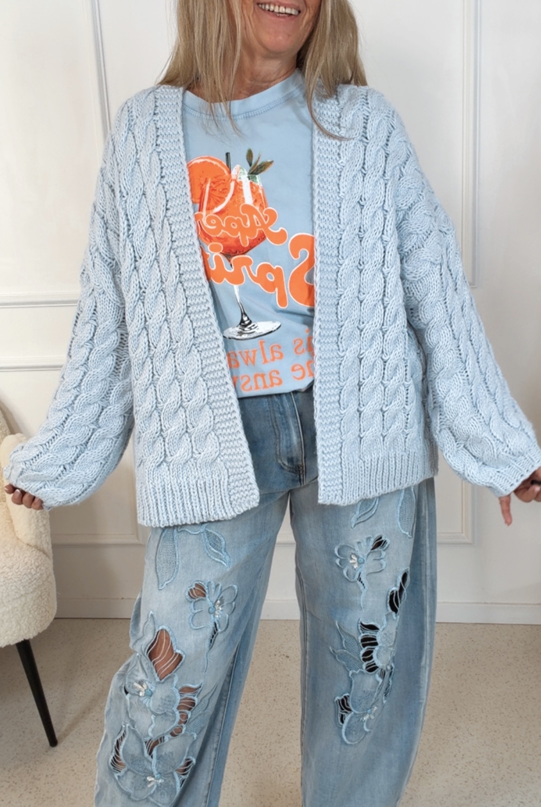 Diese Strickjacke im Cardigan-Style begeistert mit ihrem klassischen Zopfmuster und einer entspannten, modernen Silhouette 🤍 Der leicht oversized geschnittene Fit sorgt für einen lässigen Look und ein besonders angenehmes Tragegefühl. Ob offen getragen oder locker übergeworfen – dieser Cardigan ist ein echtes Wohlfühlteil für jeden Tag ✨