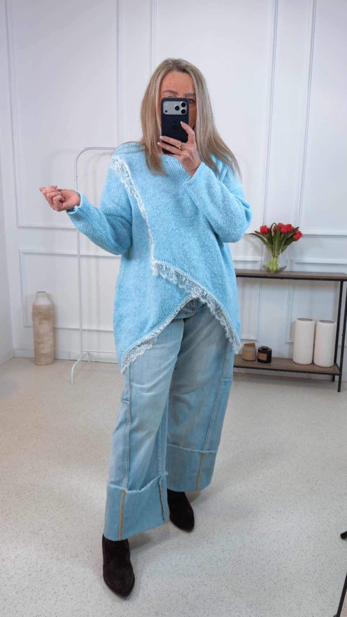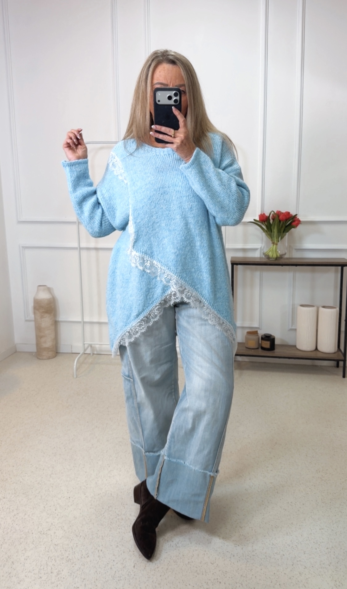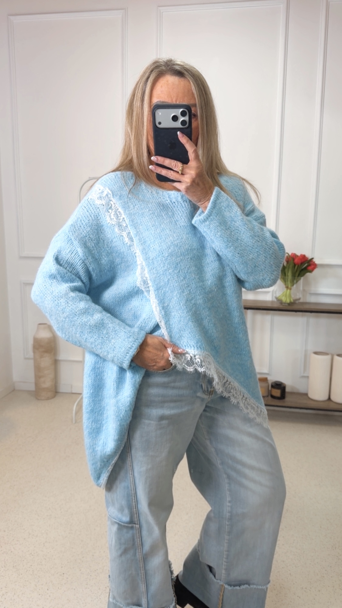 - Wunderschöner Oversize Pullover im Vokuhila Style mit Spitze