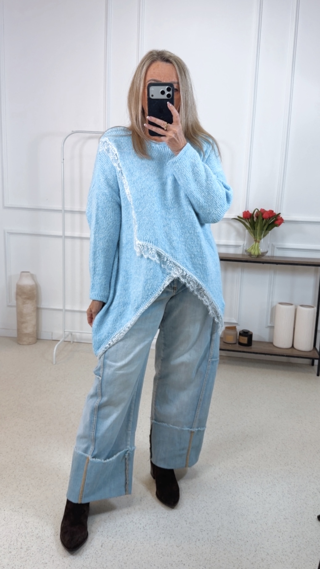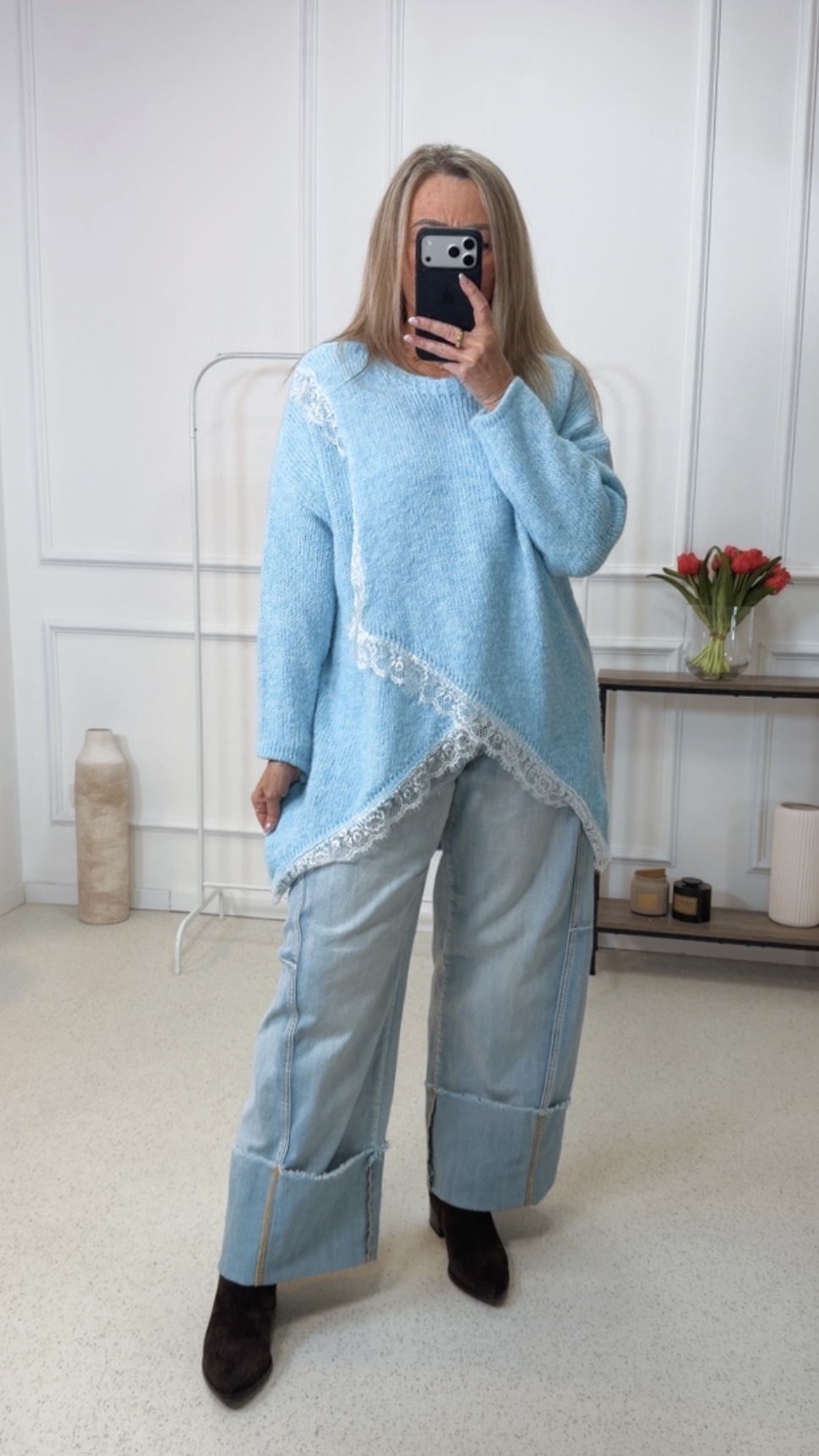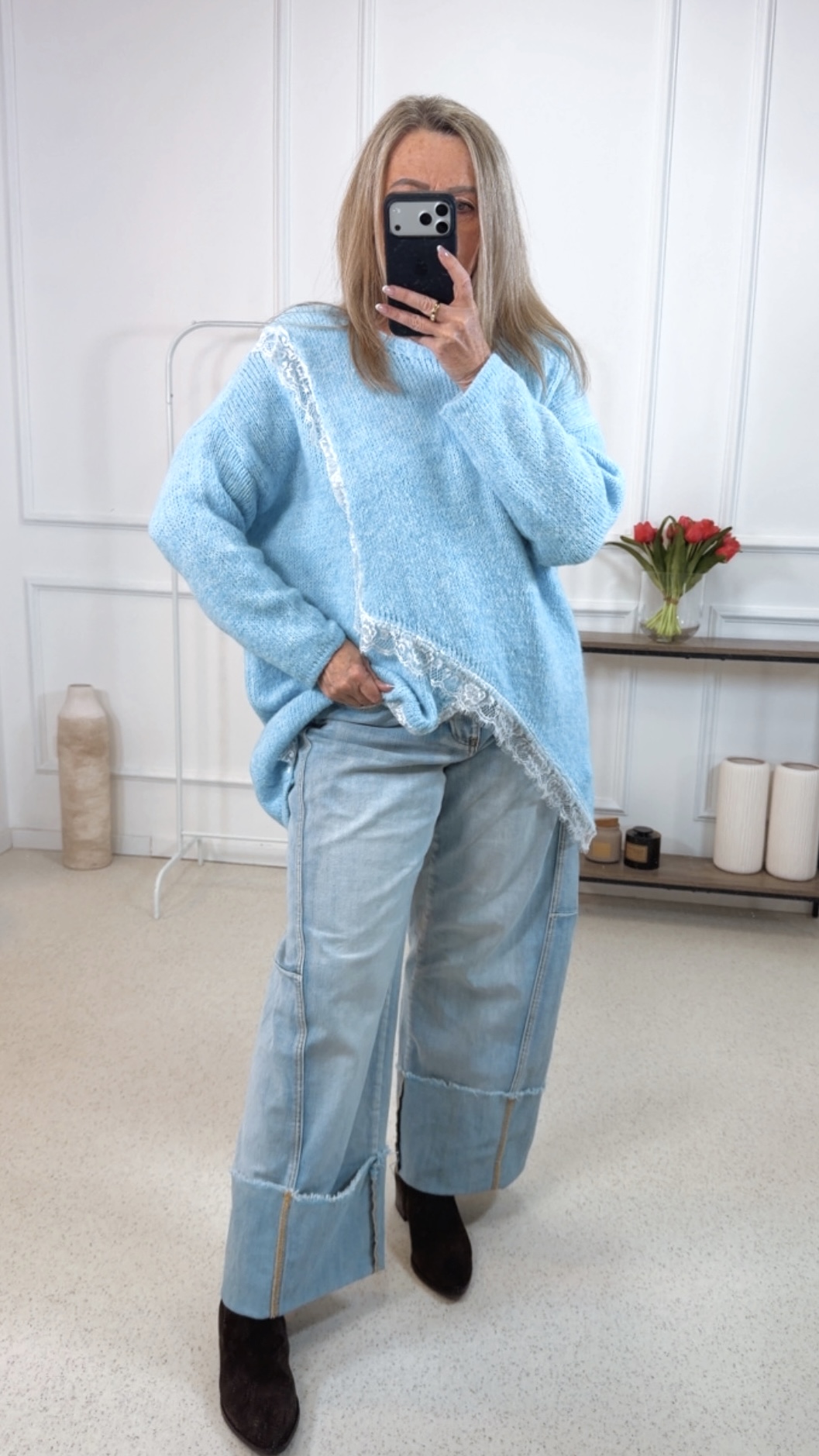 - Wunderschöner Oversize Pullover im Vokuhila Style mit Spitze