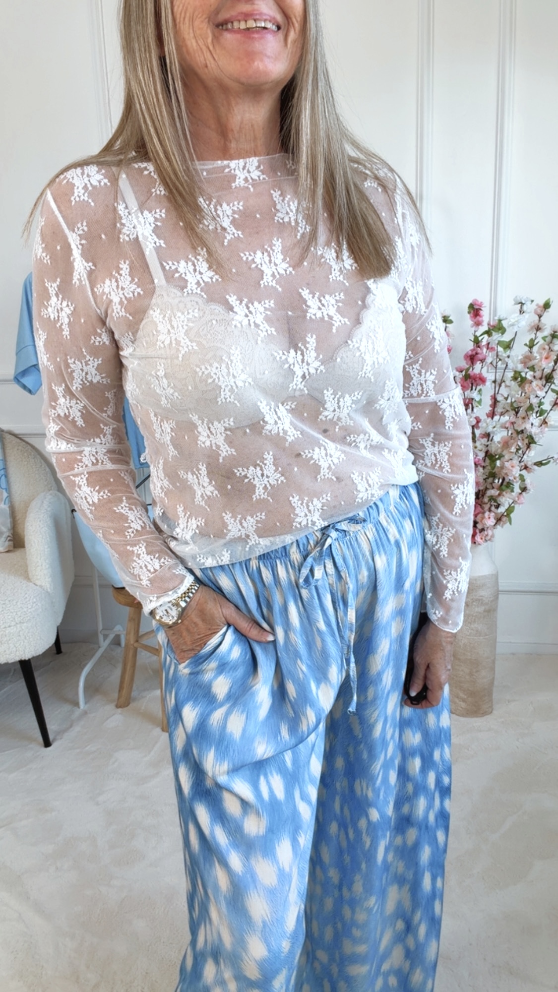 Feminin, elegant und ein echter Hingucker: Dieses Spitzenshirt besticht durch sein aufwendiges, wunderschönes Muster, das jedem Outfit einen besonderen Akzent verleiht. Die zarte Spitze sorgt für eine edle, leicht transparente Optik, die sowohl romantisch als auch modern wirkt.