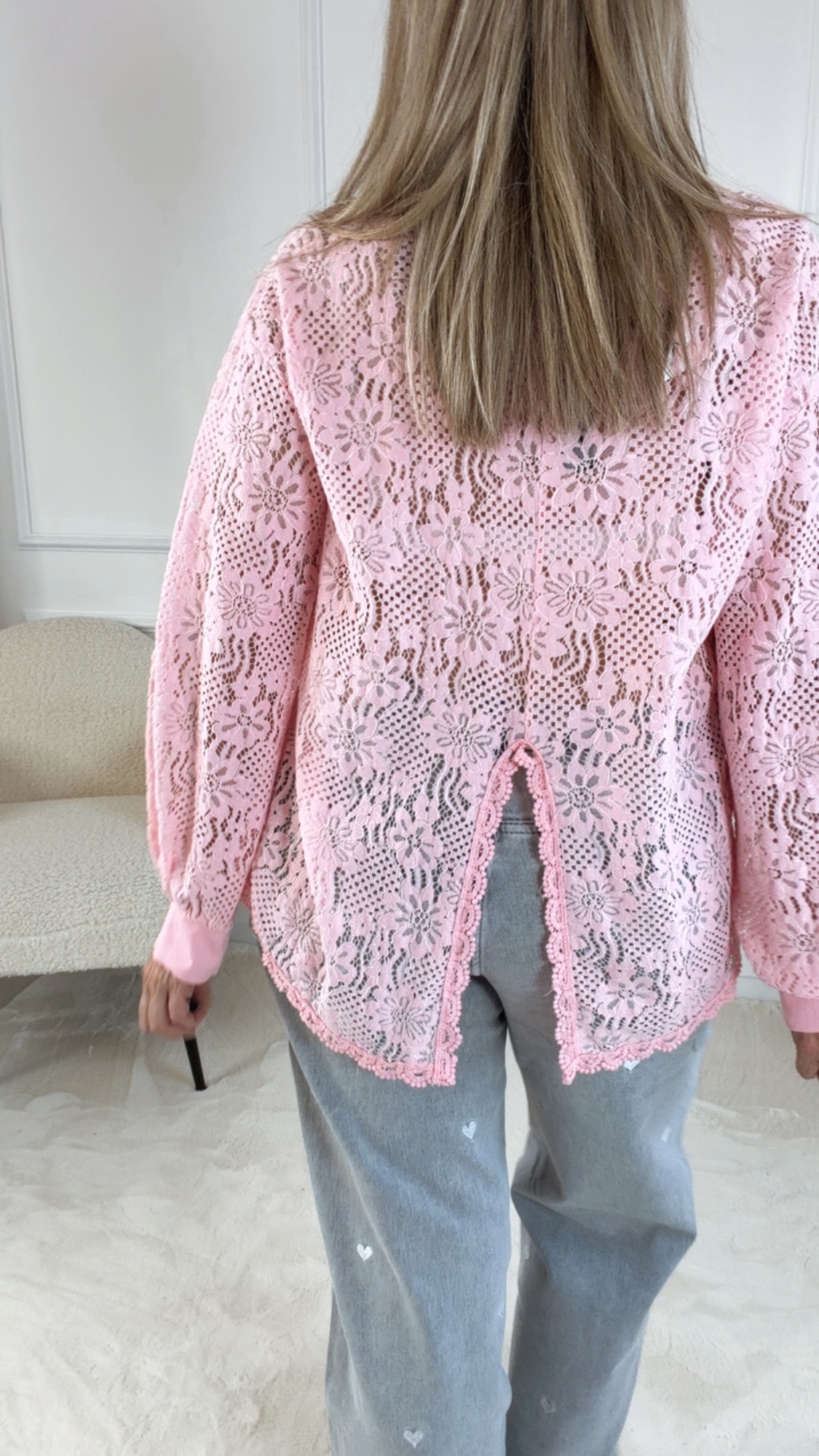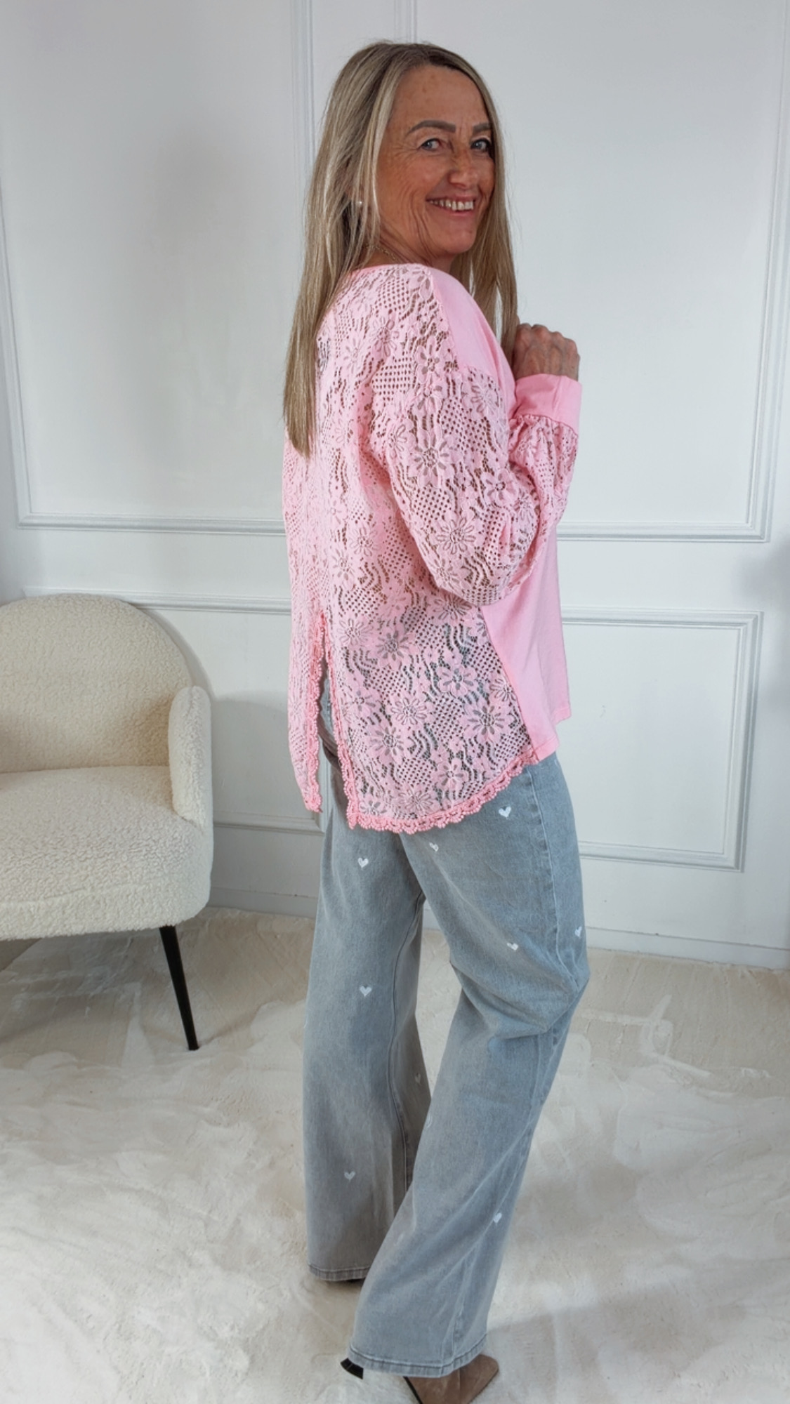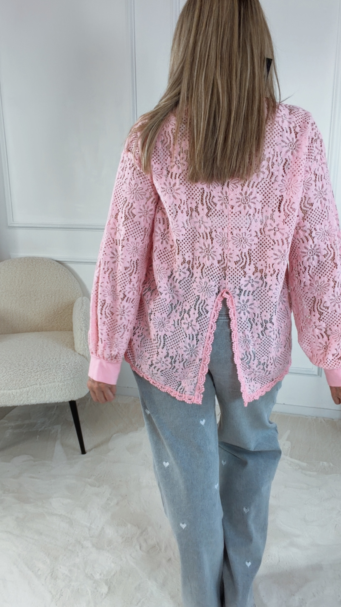 Langarm-Spitzenshirt mit vollständig verziertem Rücken