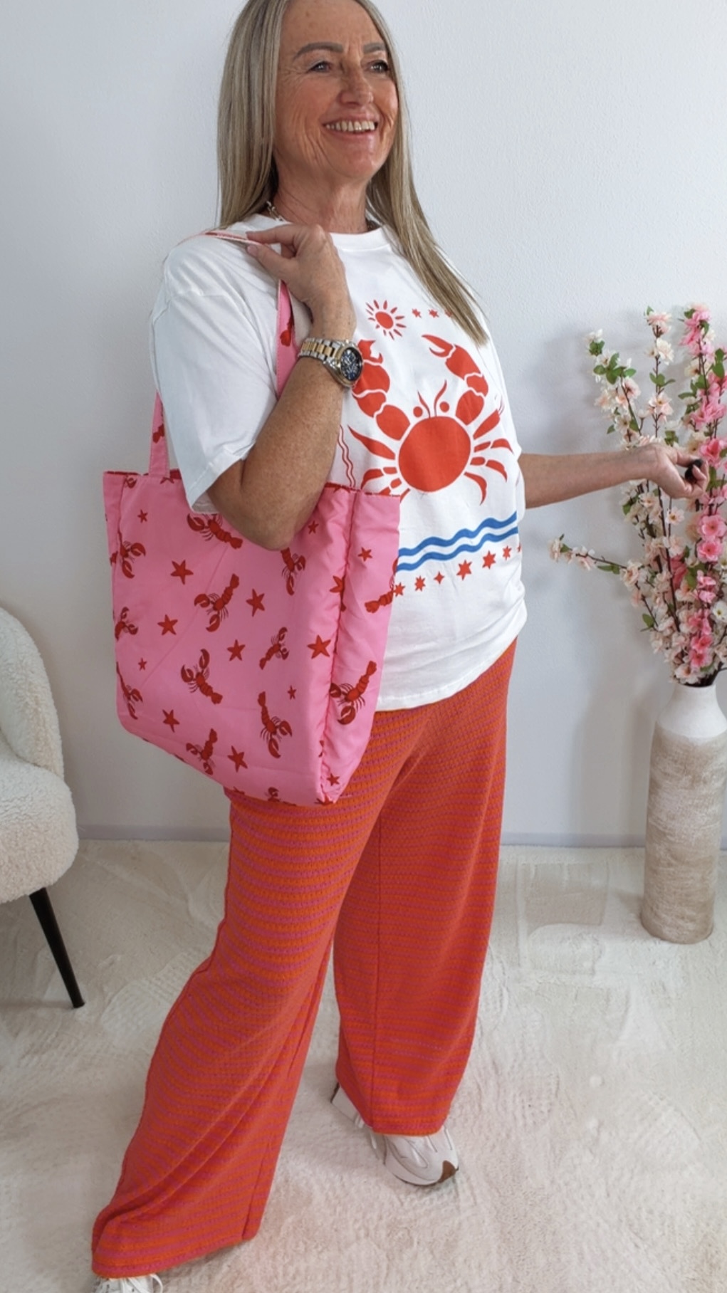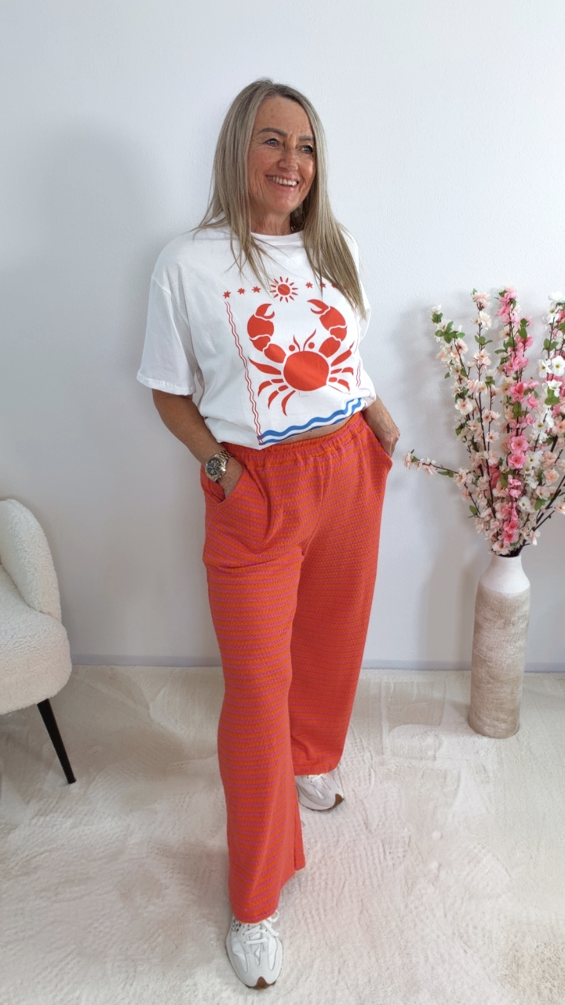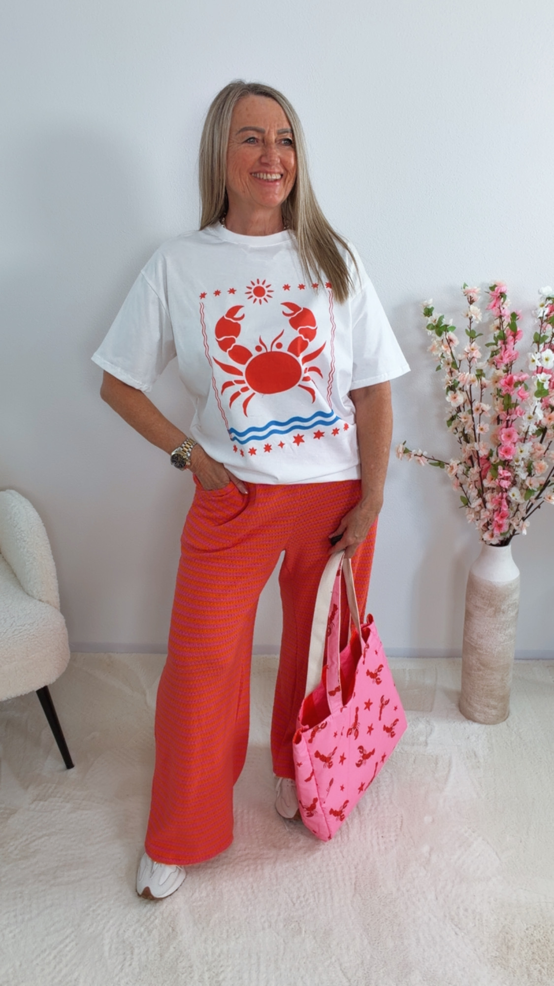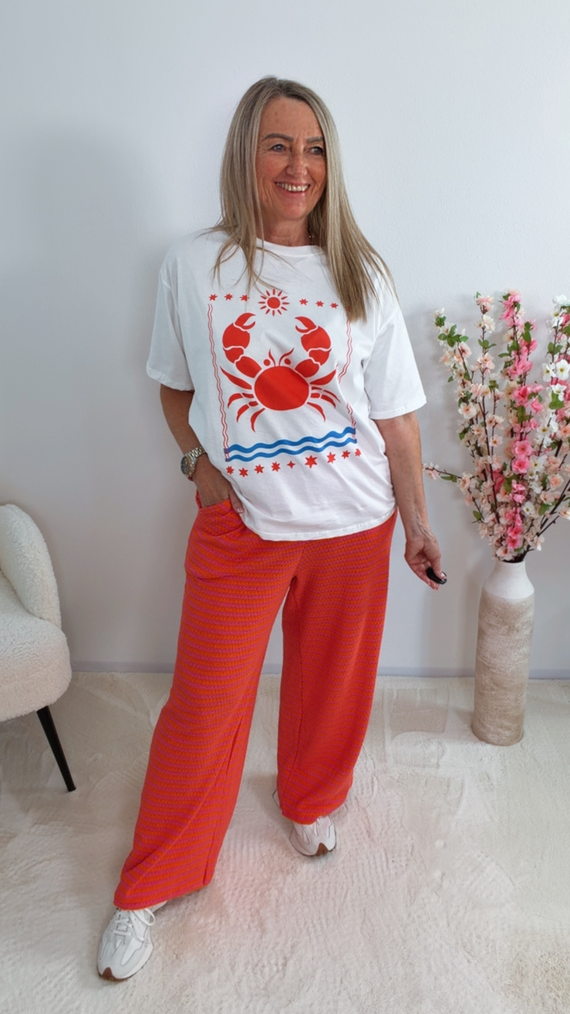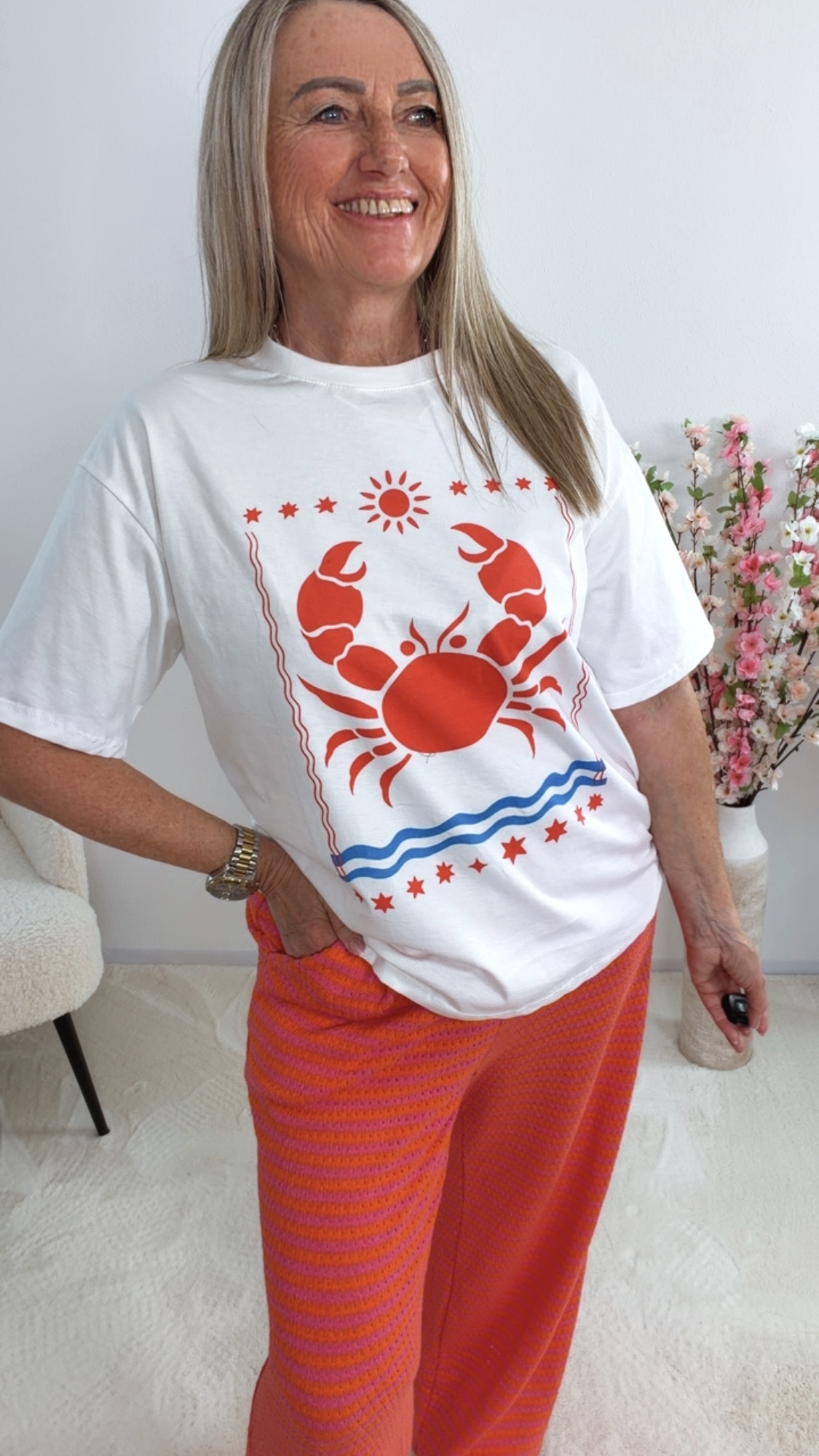 Kombiniere „Ysarela“ mit Shorts, Jeans oder Leinenhose für einen frischen Sommer-Look mit maritimem Flair 🦀👖👡✨