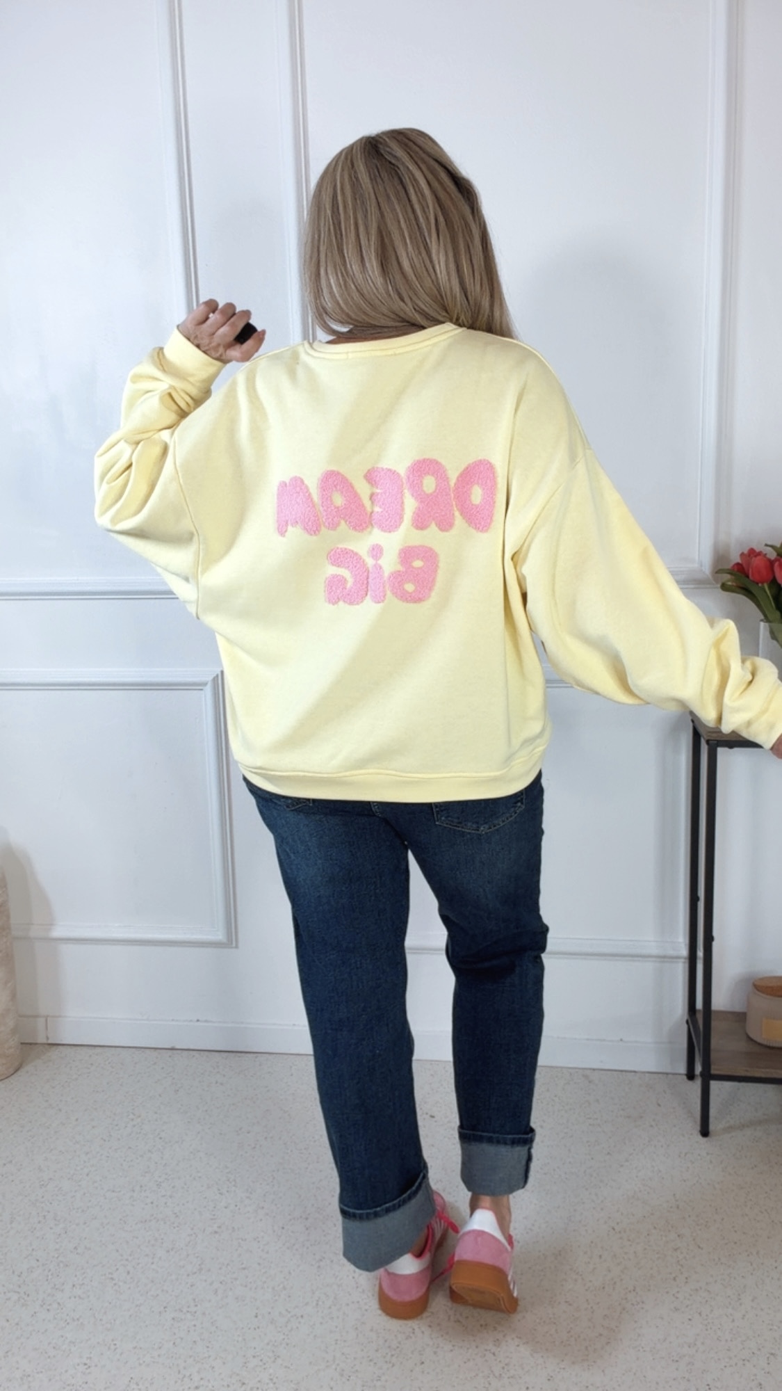 BUTTERMILK LEMON STATEMENT SWEATER DREAM BIG.1