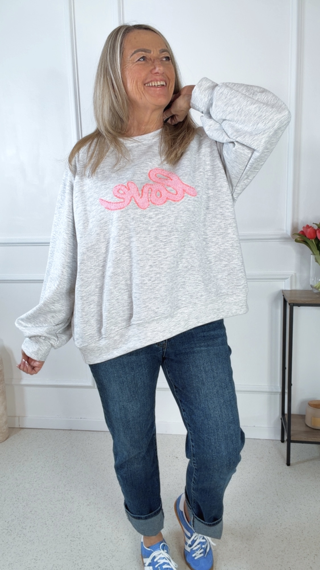Dieser Sweater ist ein echtes Wohlfühlteil mit Herz. Der Aufdruck „Love“ auf der Vorderseite setzt ein liebevolles Statement, während das mega gemütliche Material für maximalen Tragekomfort sorgt. Der bequeme Schnitt macht den Sweater zum perfekten Begleiter für entspannte Alltagslooks.