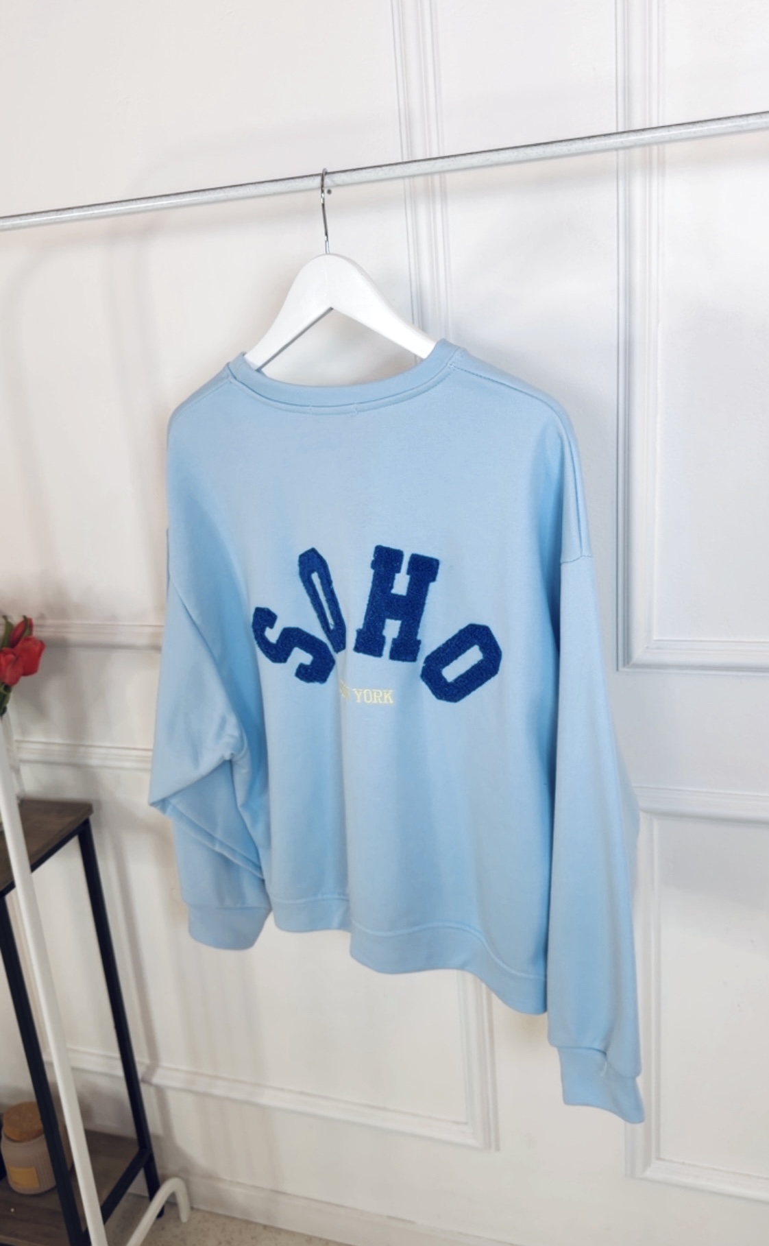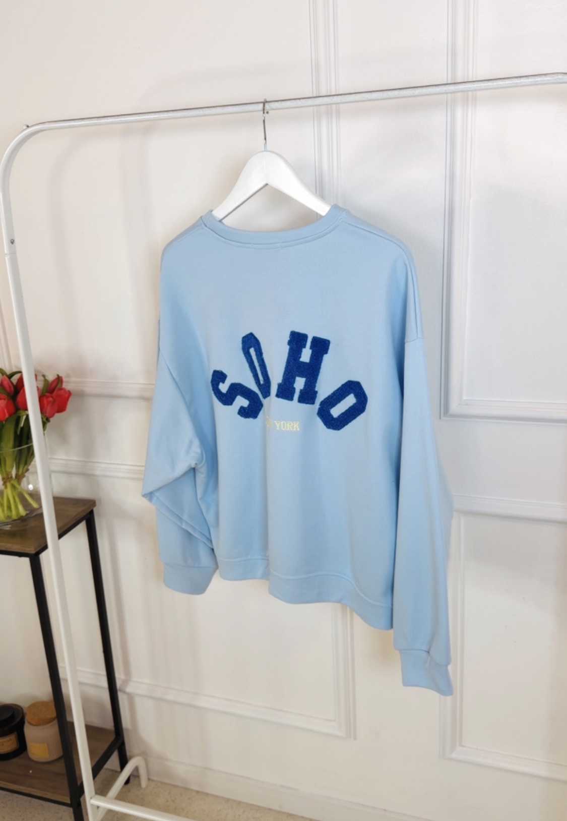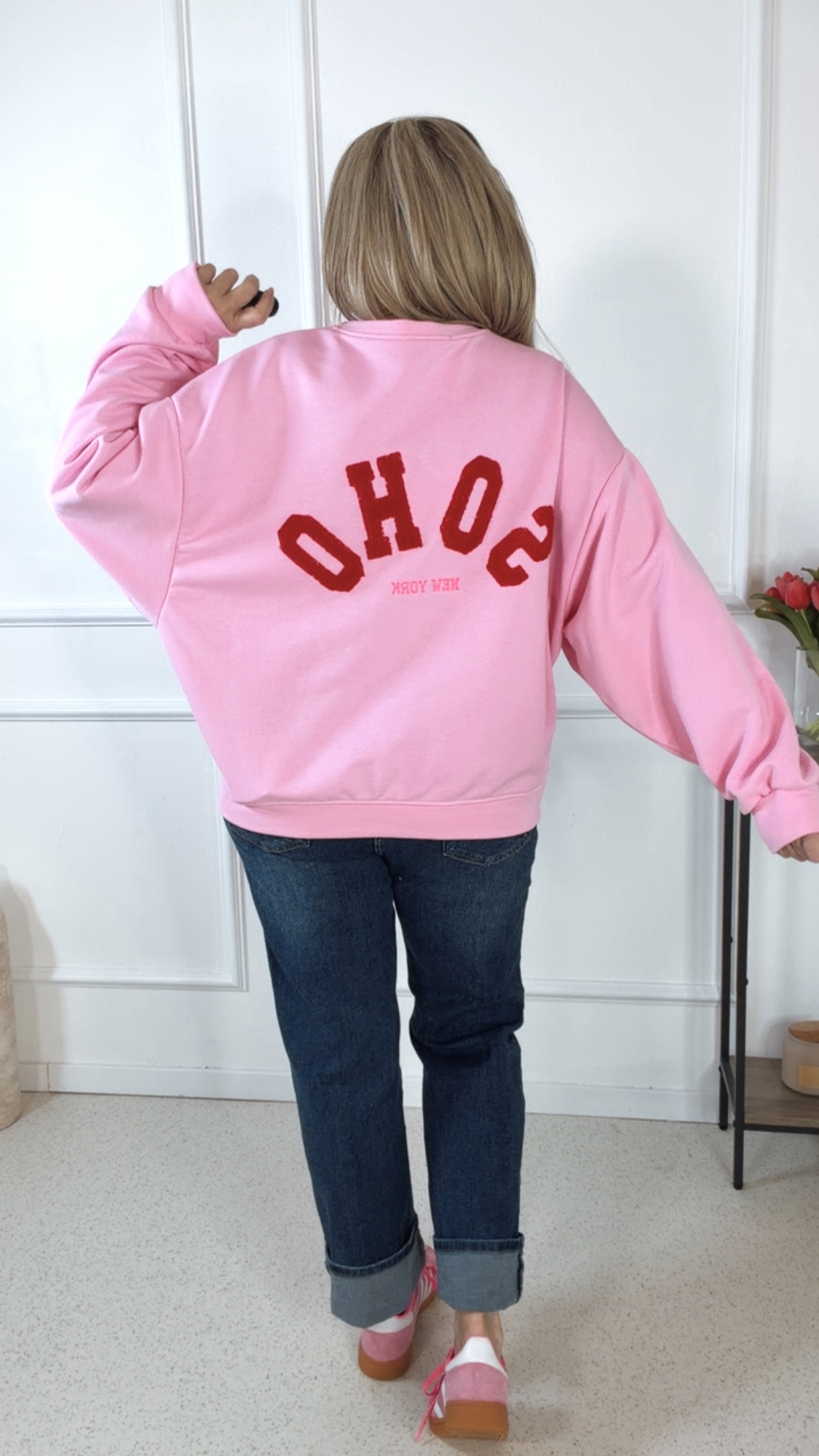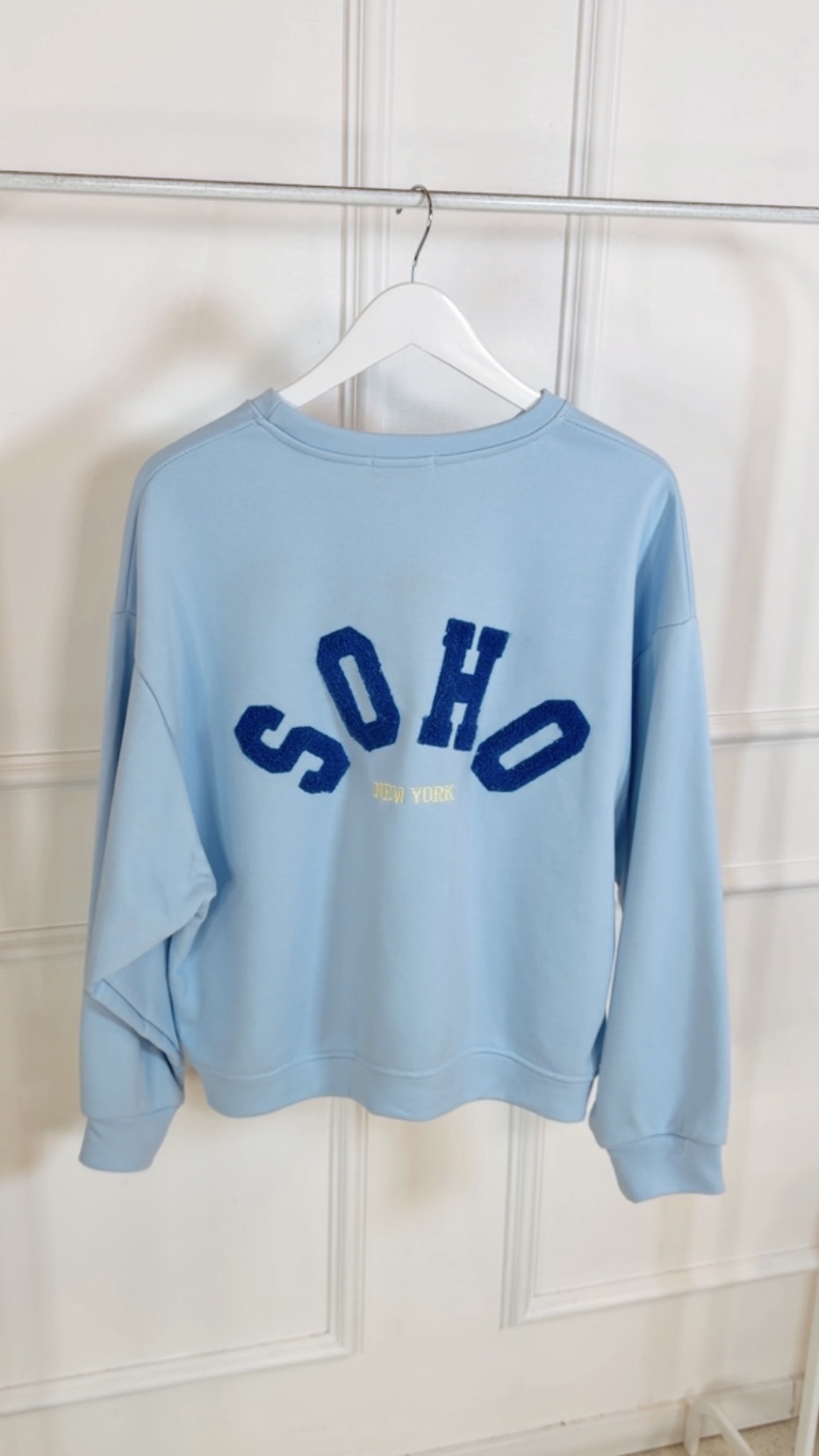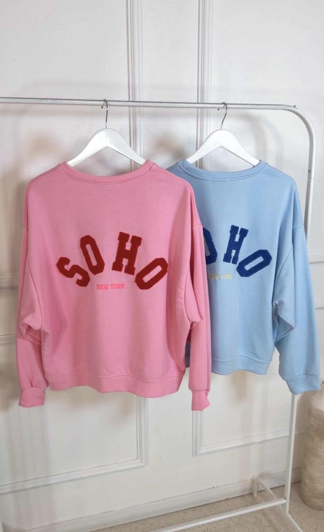 Dieses Sweatshirt SOHO vereint Style und maximalen Wohlfühlfaktor. Innen leicht angeraut und dadurch besonders weich und schön kuschelig, ist es ideal für kühle Tage. Der hochwertige beflockte Rückenprint „SOHO“ setzt ein stilvolles Statement und verleiht dem Sweatshirt eine edle Optik.