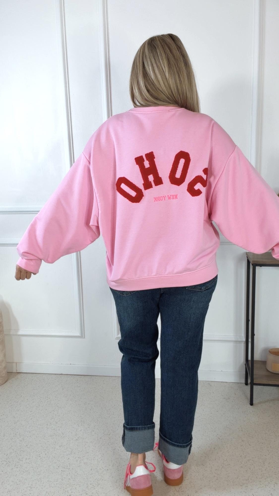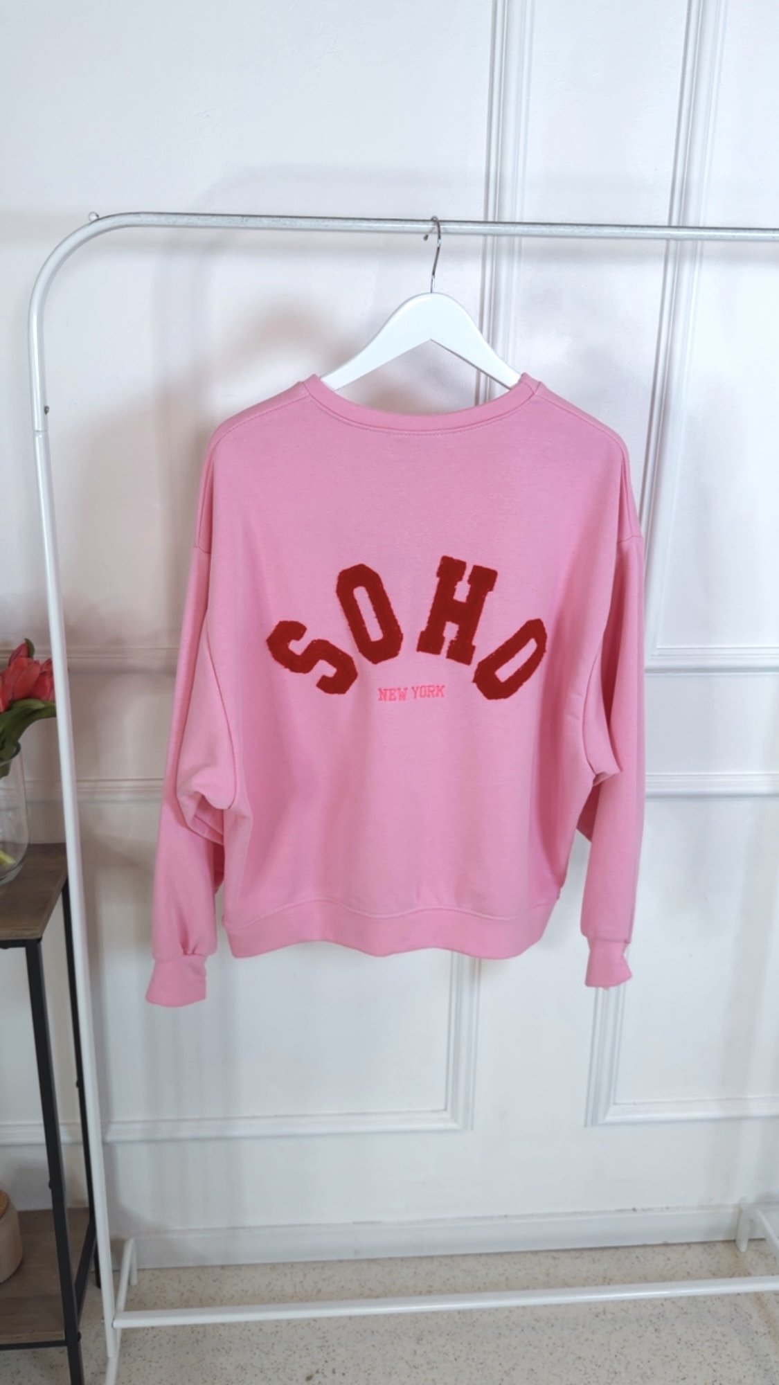 Dieses Sweatshirt SOHO vereint Style und maximalen Wohlfühlfaktor. Innen leicht angeraut und dadurch besonders weich und schön kuschelig, ist es ideal für kühle Tage. Der hochwertige beflockte Rückenprint „SOHO“ setzt ein stilvolles Statement und verleiht dem Sweatshirt eine edle Optik.