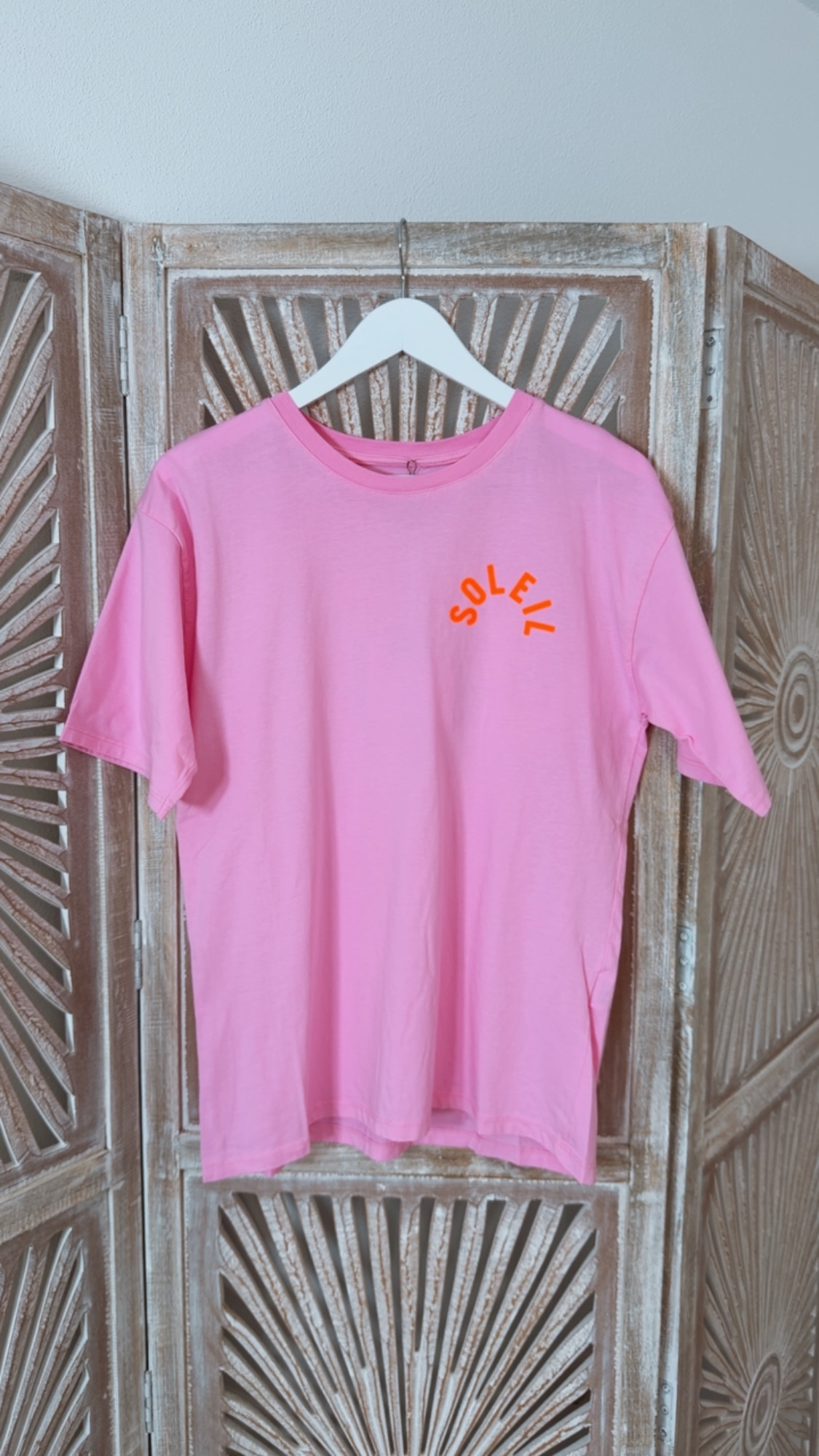 Vorne minimalistisch mit kleinem „Soleil“-Schriftzug, hinten ein absoluter Hingucker mit Leo-Print-Statement 🐆💖