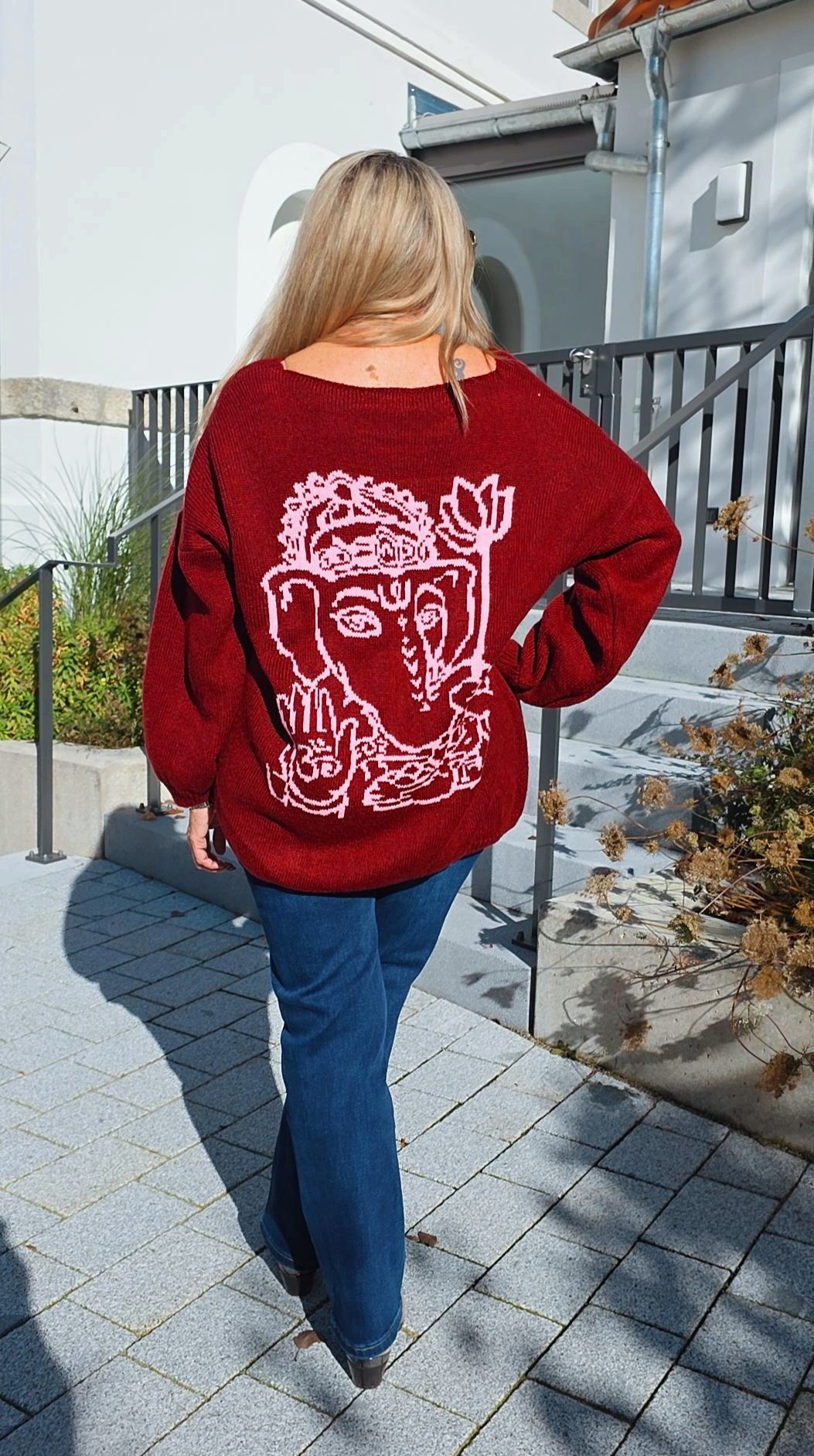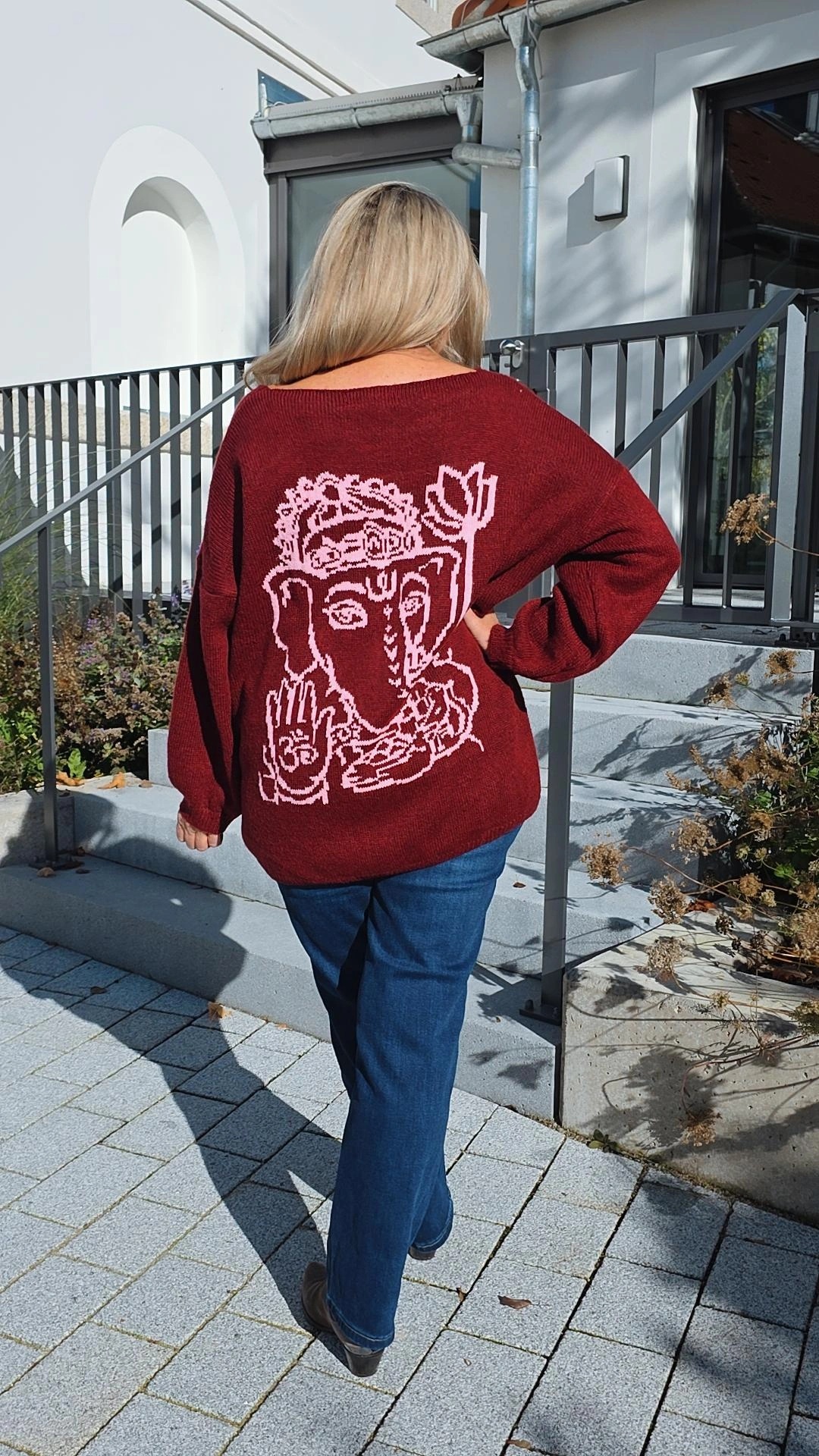 STRICK-PULLOVER YVONNE mit Rückenmotiv Elefant & V-Ausschnitt 34-44 Made in Italy