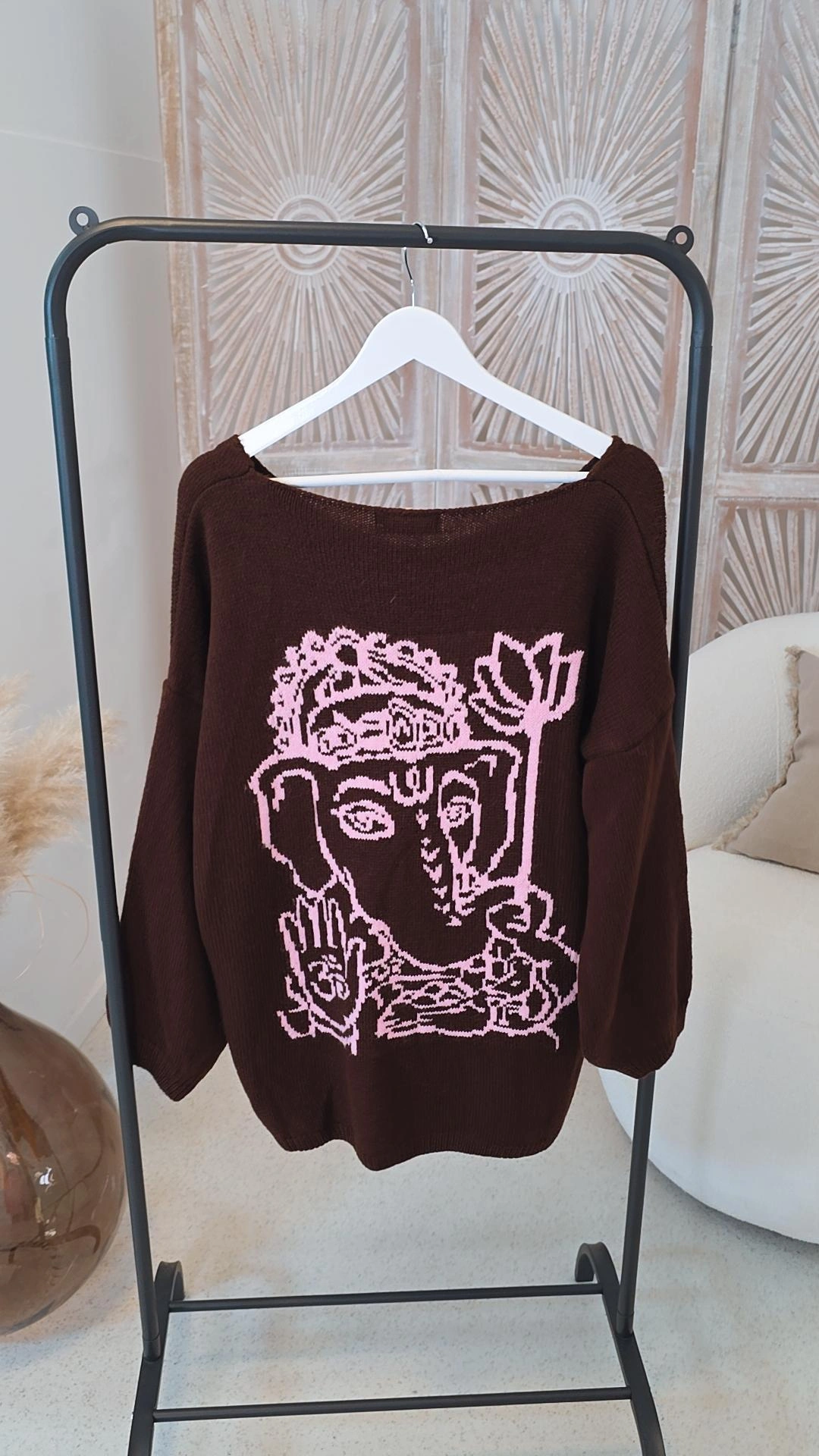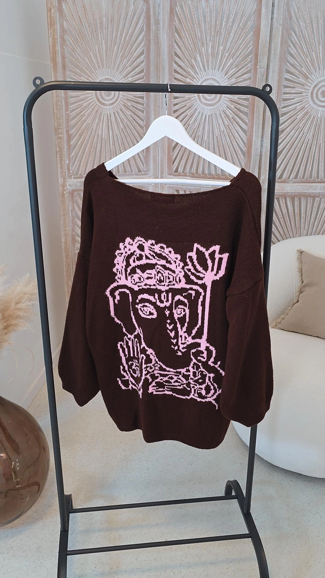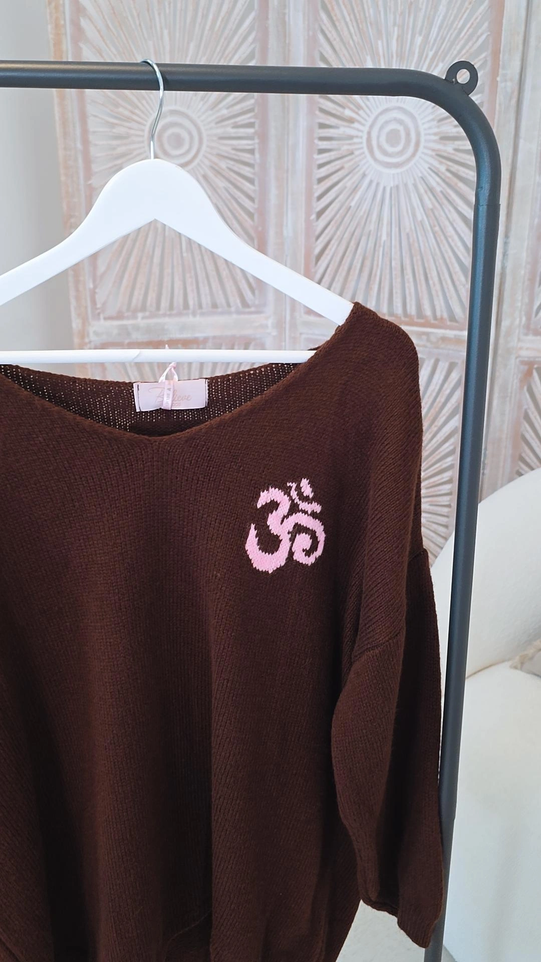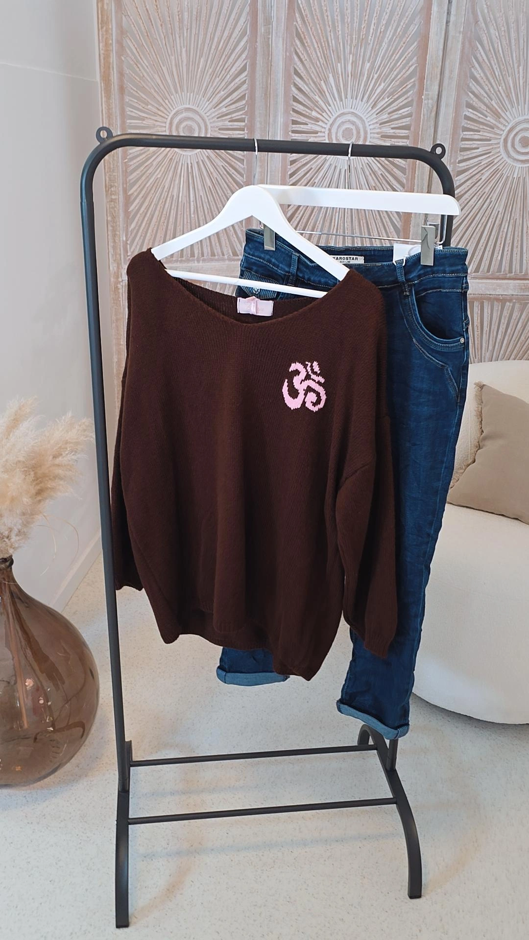 SCHOKO-ROSA STRICK-PULLOVER YVONNE Rückenmotiv&V-Ausschnitt.1