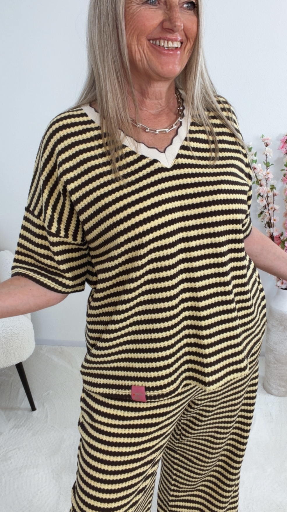 Das wunderschöne Strick-Shirt „Eliovena“ begeistert mit seinem trendigen Streifenlook und einer locker-lässigen Passform 😍✨