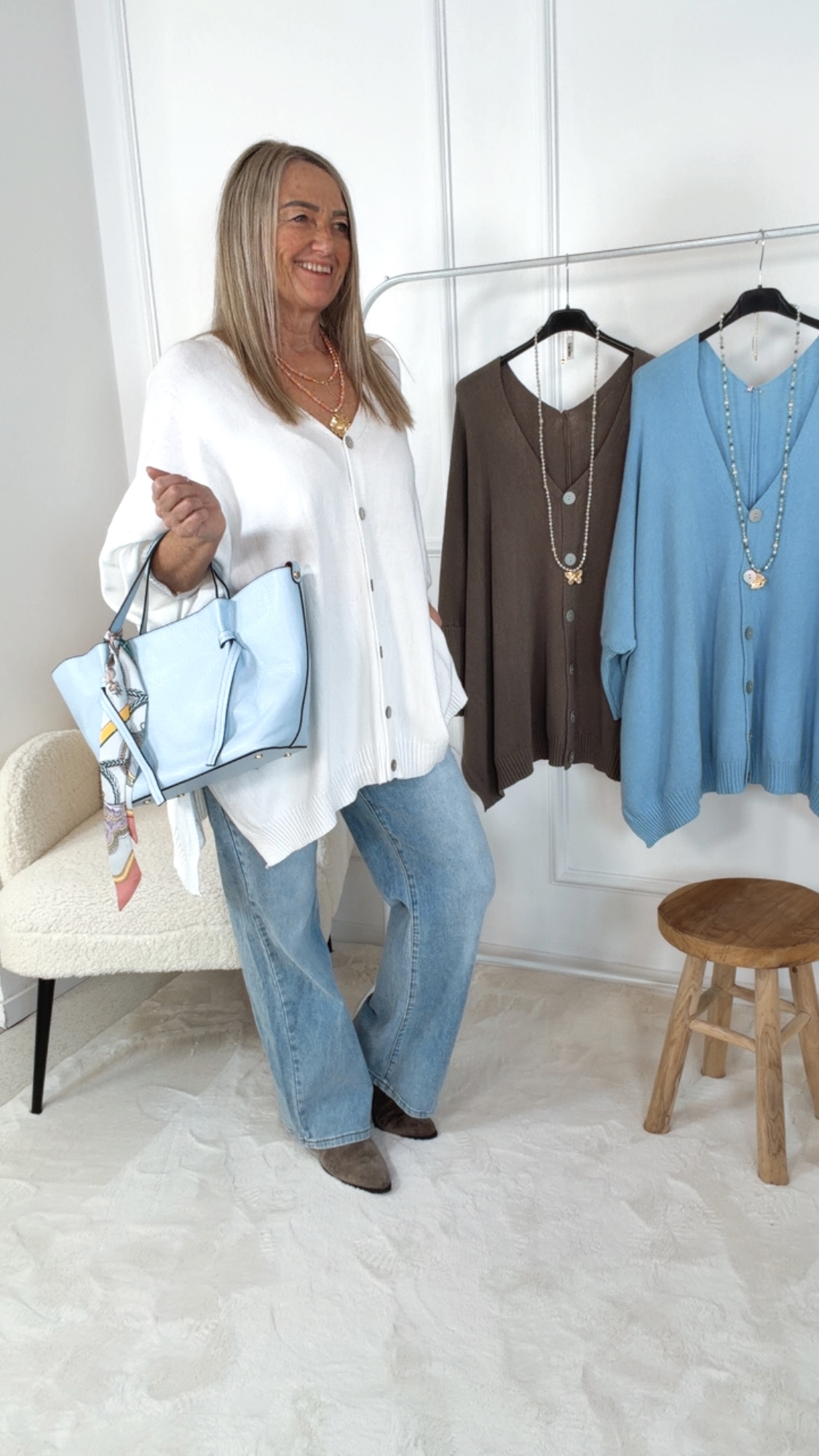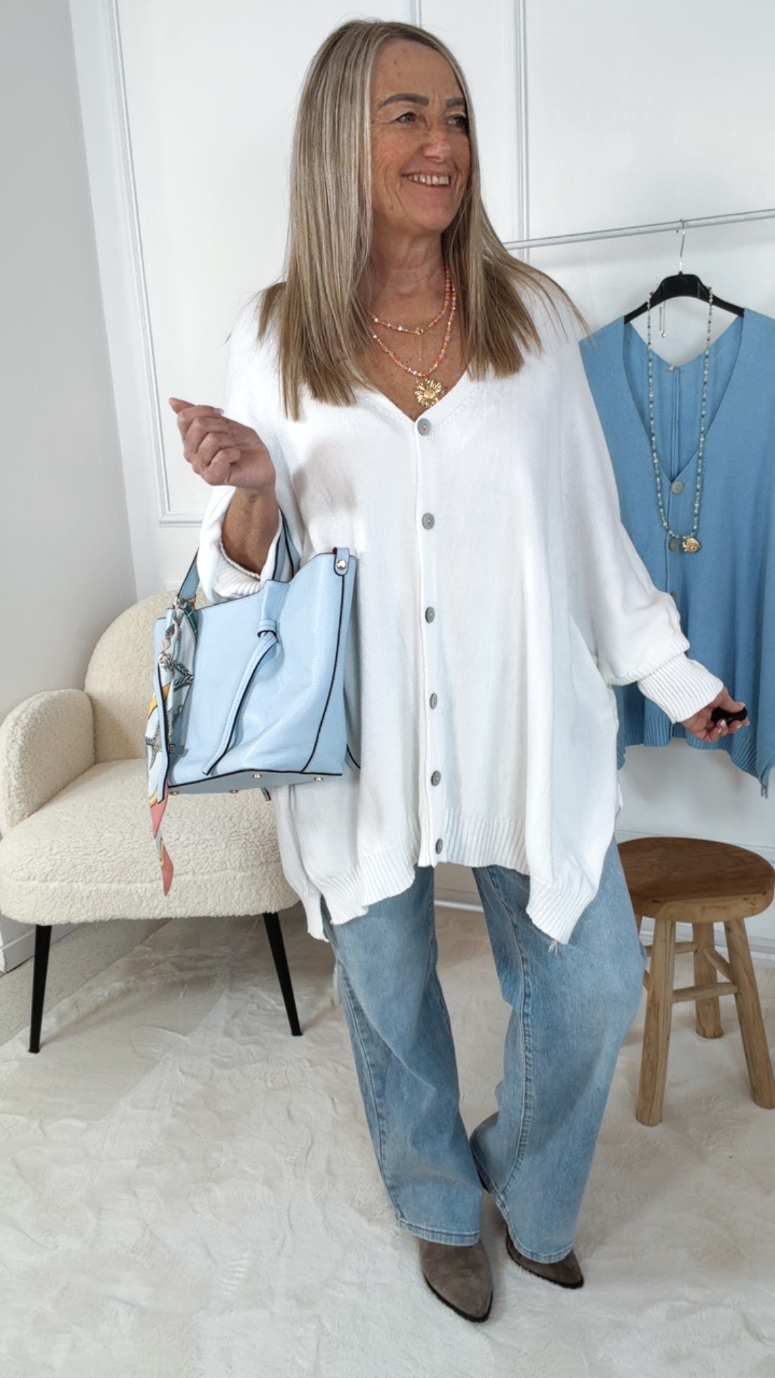 „Luminara“ ist ein stilvoller Wohlfühl-Cardigan mit italienischem Charme 🇮🇹💙 – weich, feminin und zeitlos schön. Ein Lieblingsstück für viele Saisons 💕