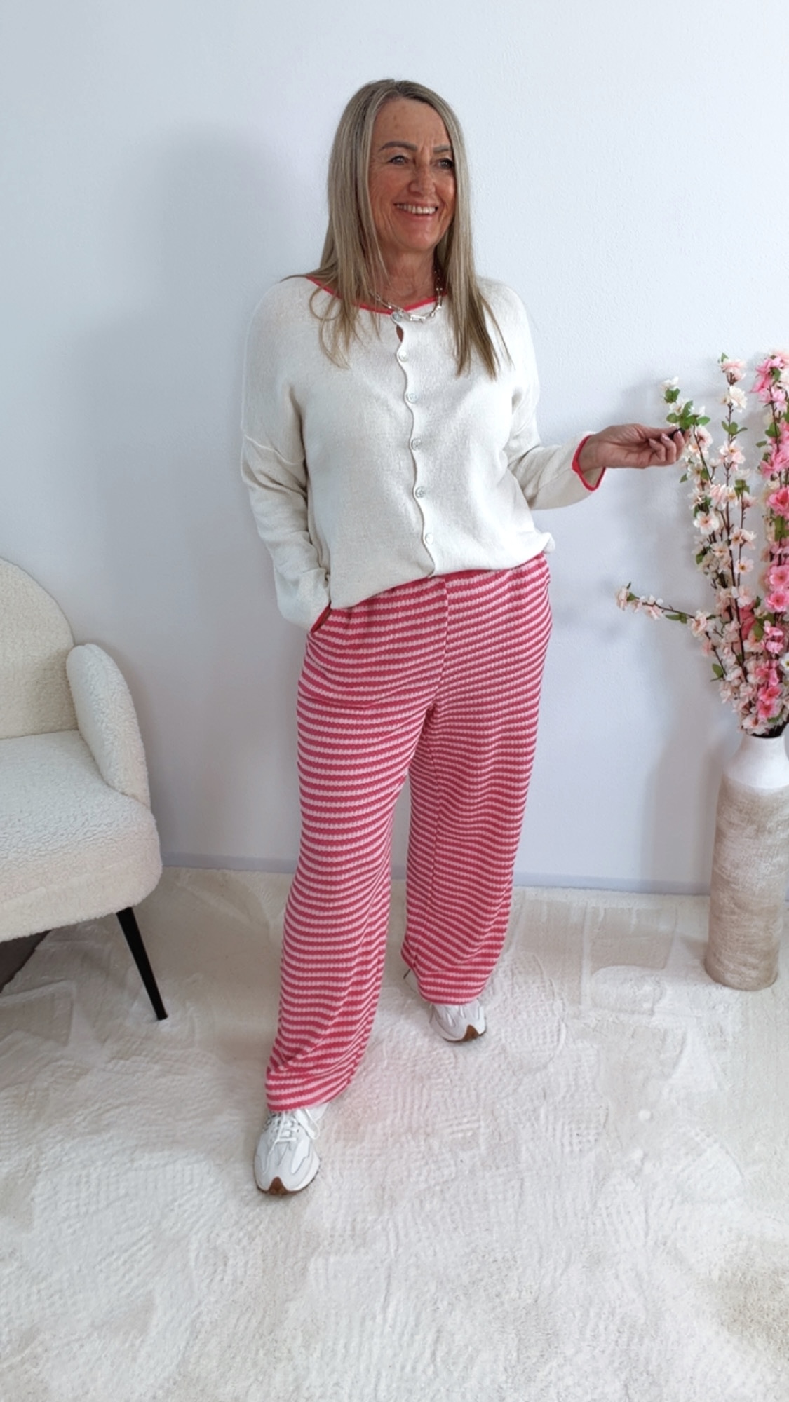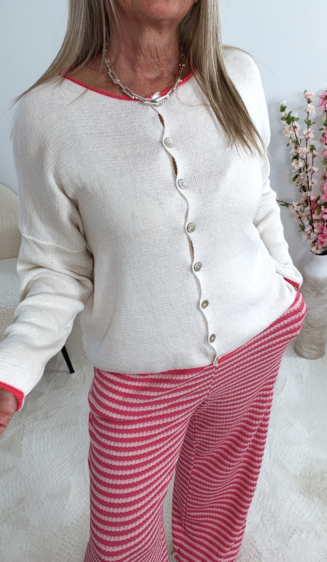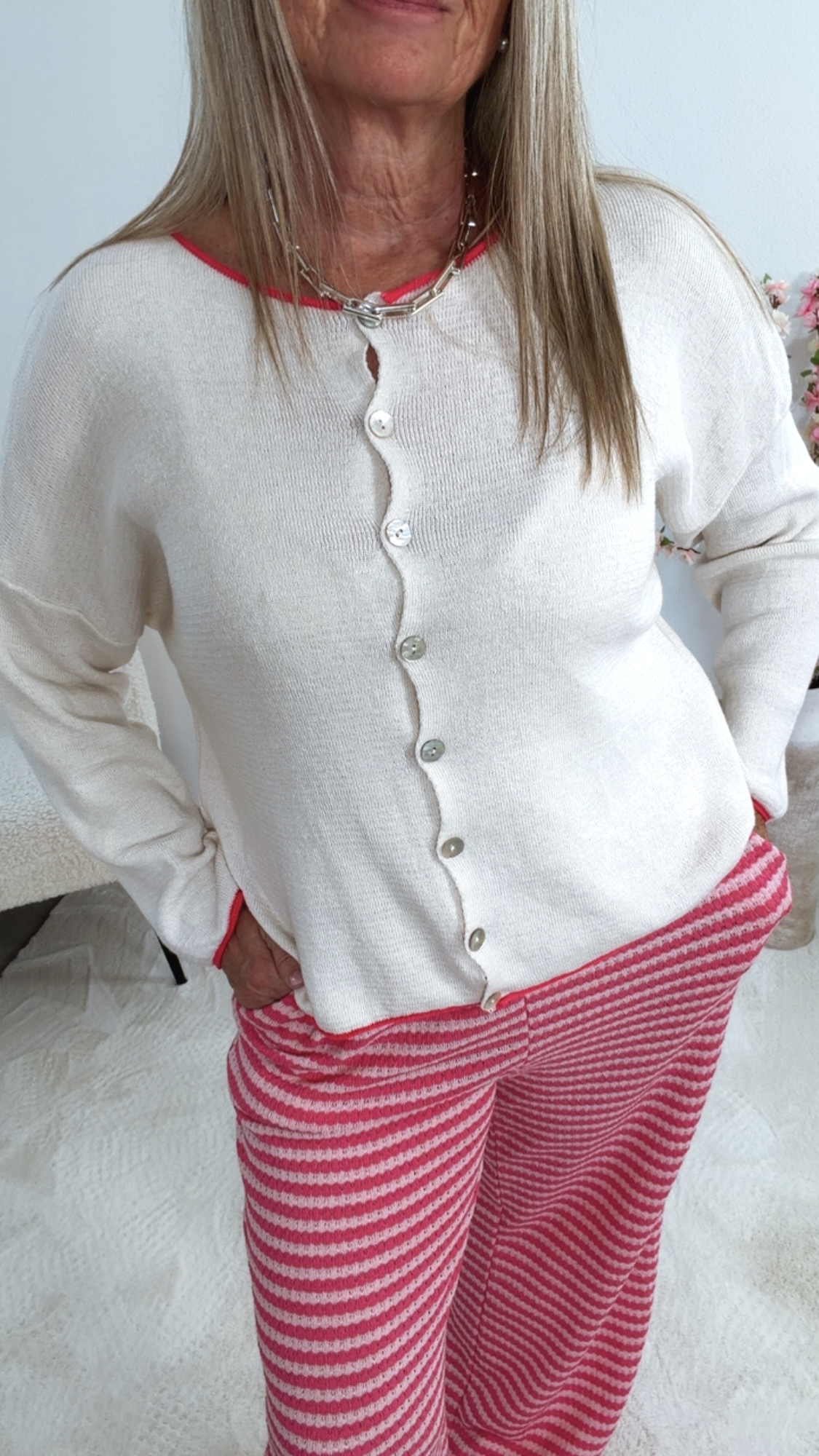 Ob offen getragen oder geschlossen – diese Strickjacke lässt sich vielseitig kombinieren und verleiht deinem Outfit das gewisse Etwas 🌷👗