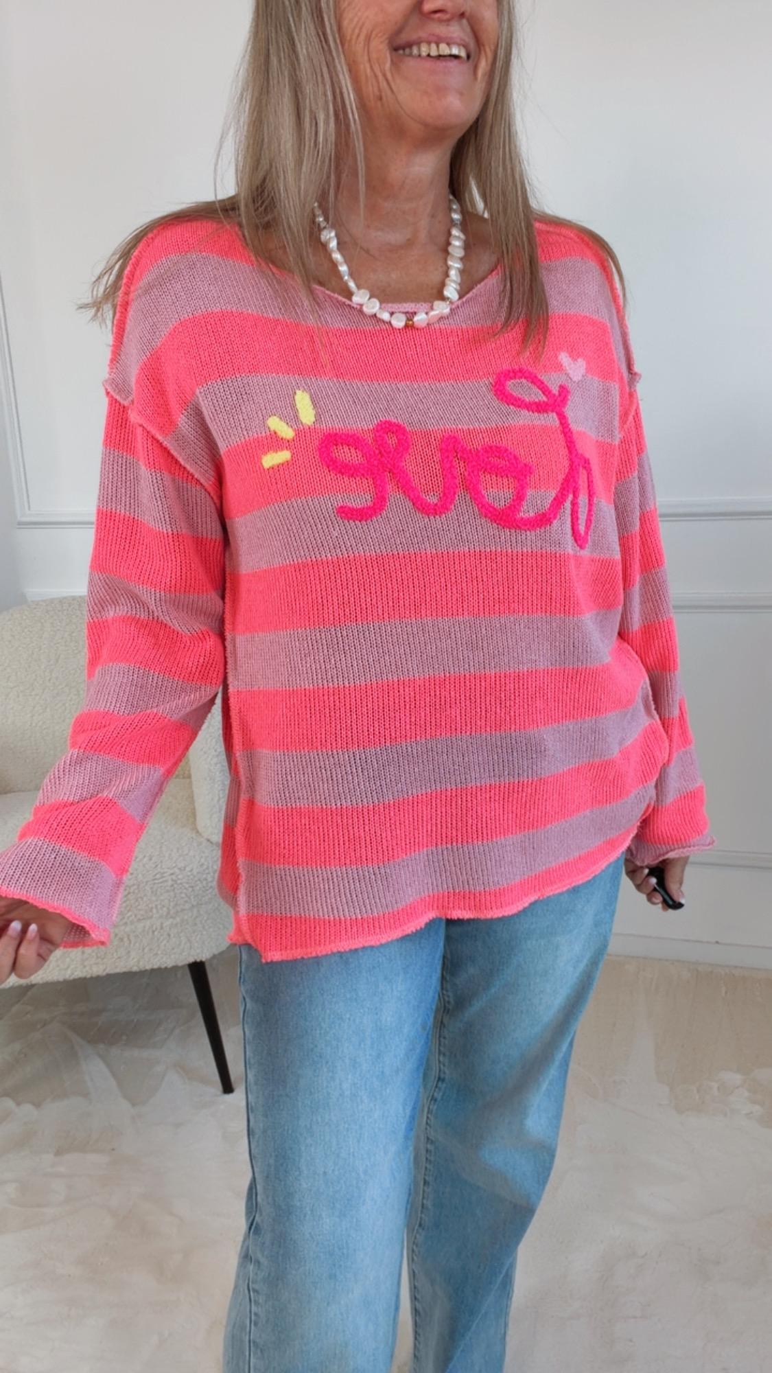 STRICKPULLOVER FABEL LOVE/STRIPES Made in Italy 34 - 42