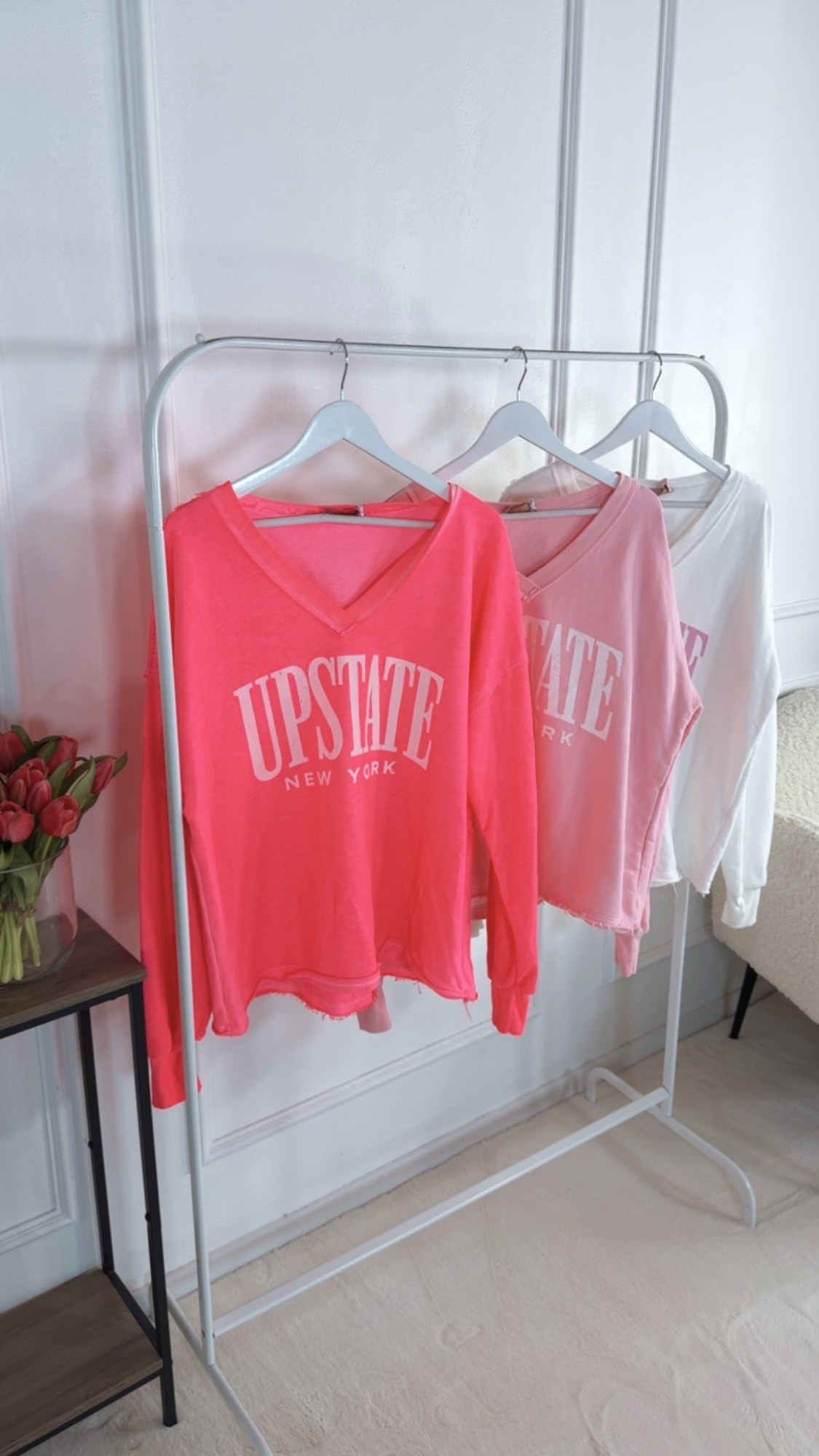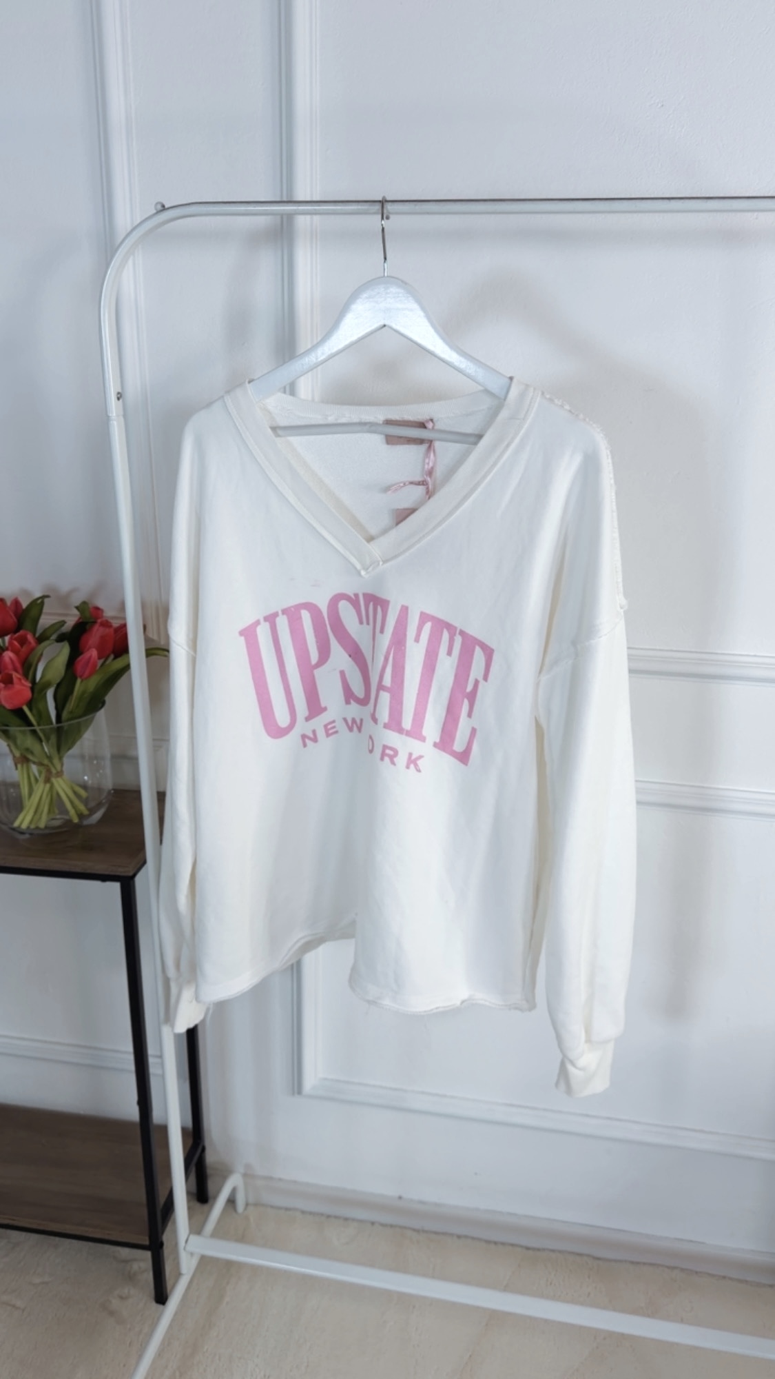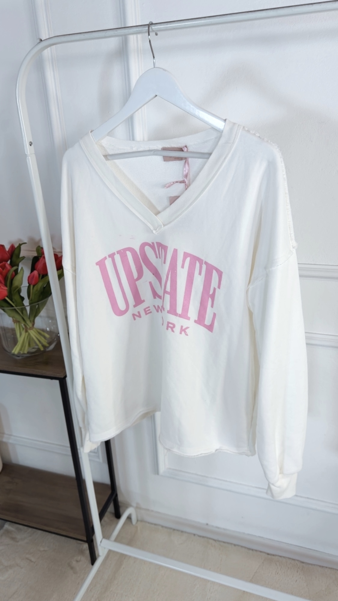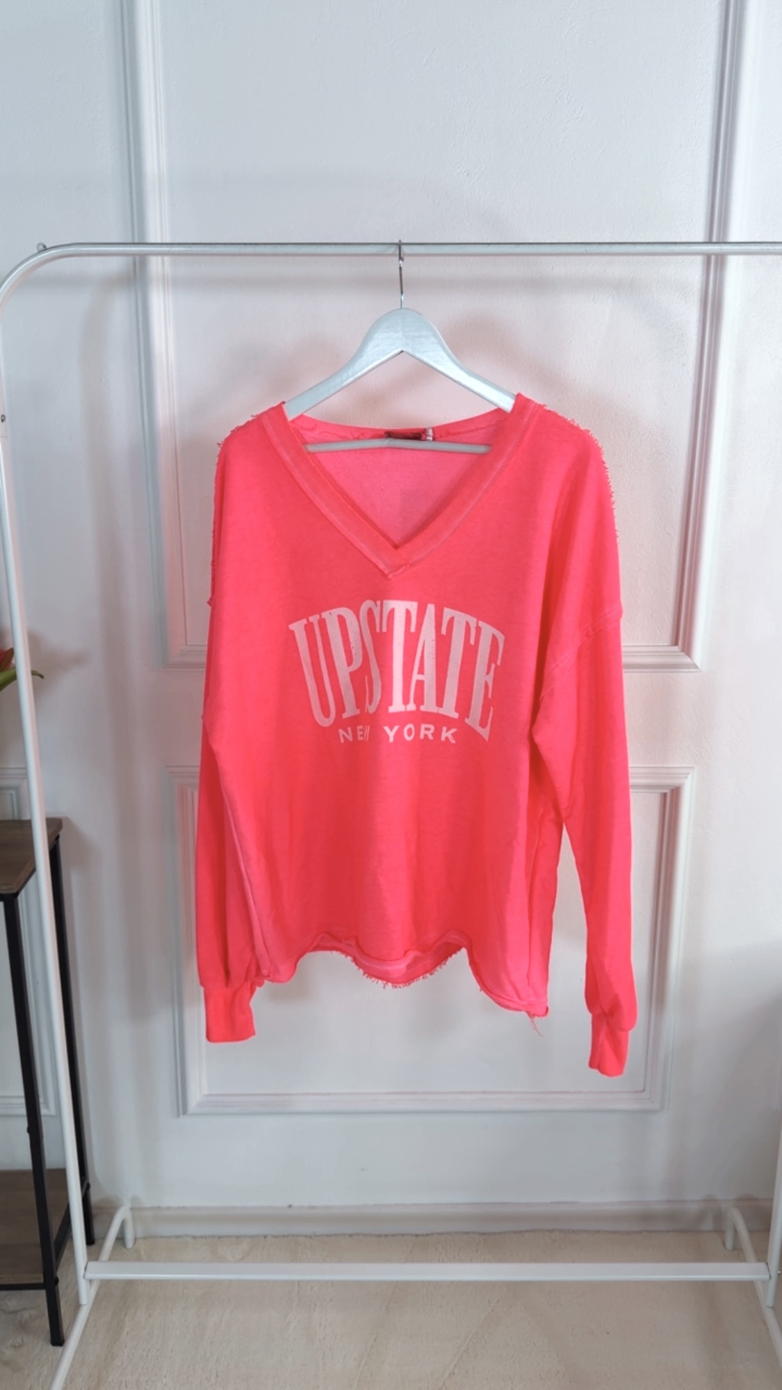 Dieser Sweater mit angesagtem V-Ausschnitt vereint Komfort und Style auf perfekte Weise. Der trendige Aufdruck setzt einen modernen Akzent und macht den Sweater zu einem echten Hingucker. Das weiche Material sorgt für ein angenehmes Tragegefühl, während der Schnitt locker und vielseitig kombinierbar bleibt – ideal für lässige Alltagslooks mit coolem Statement.