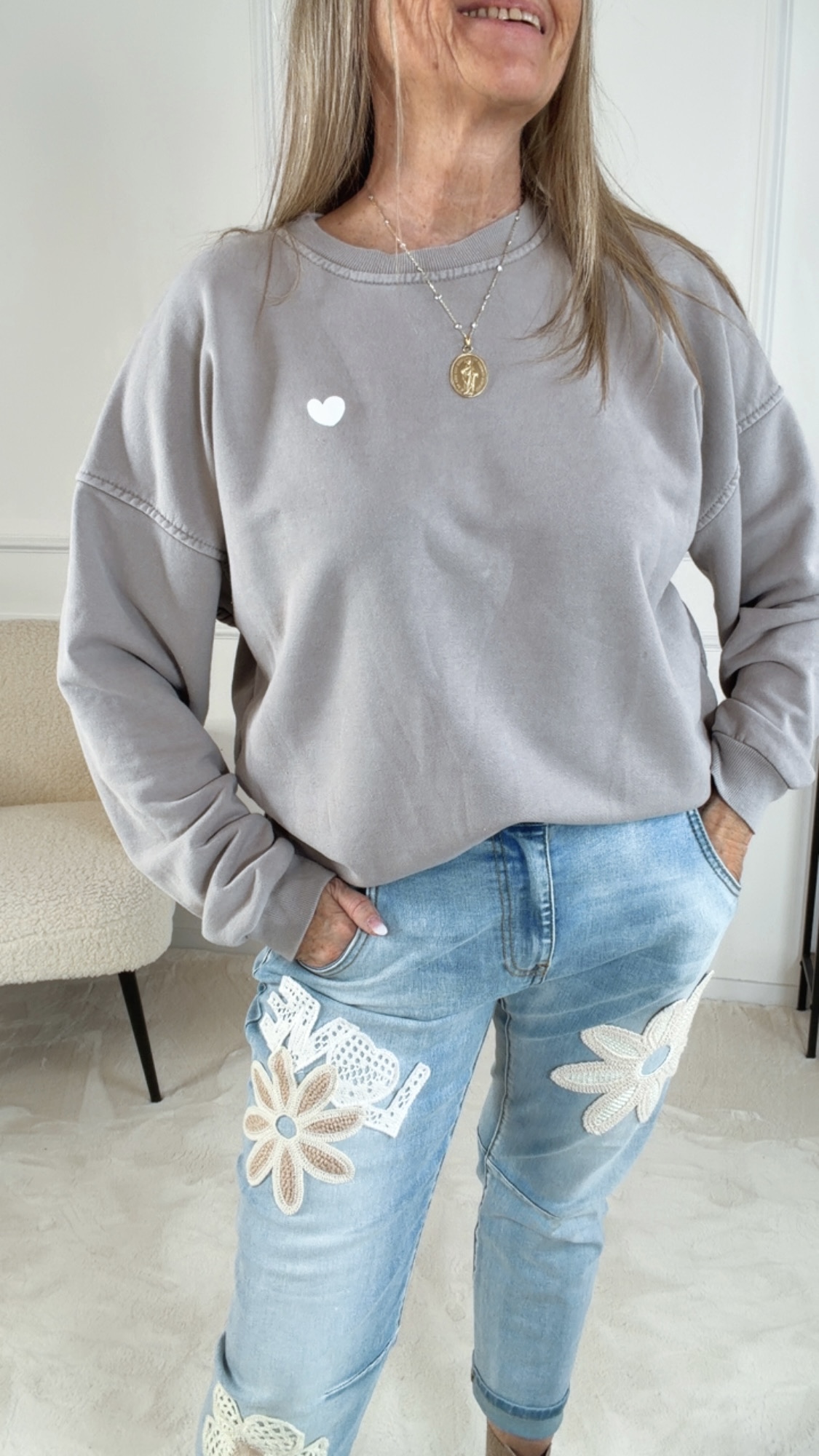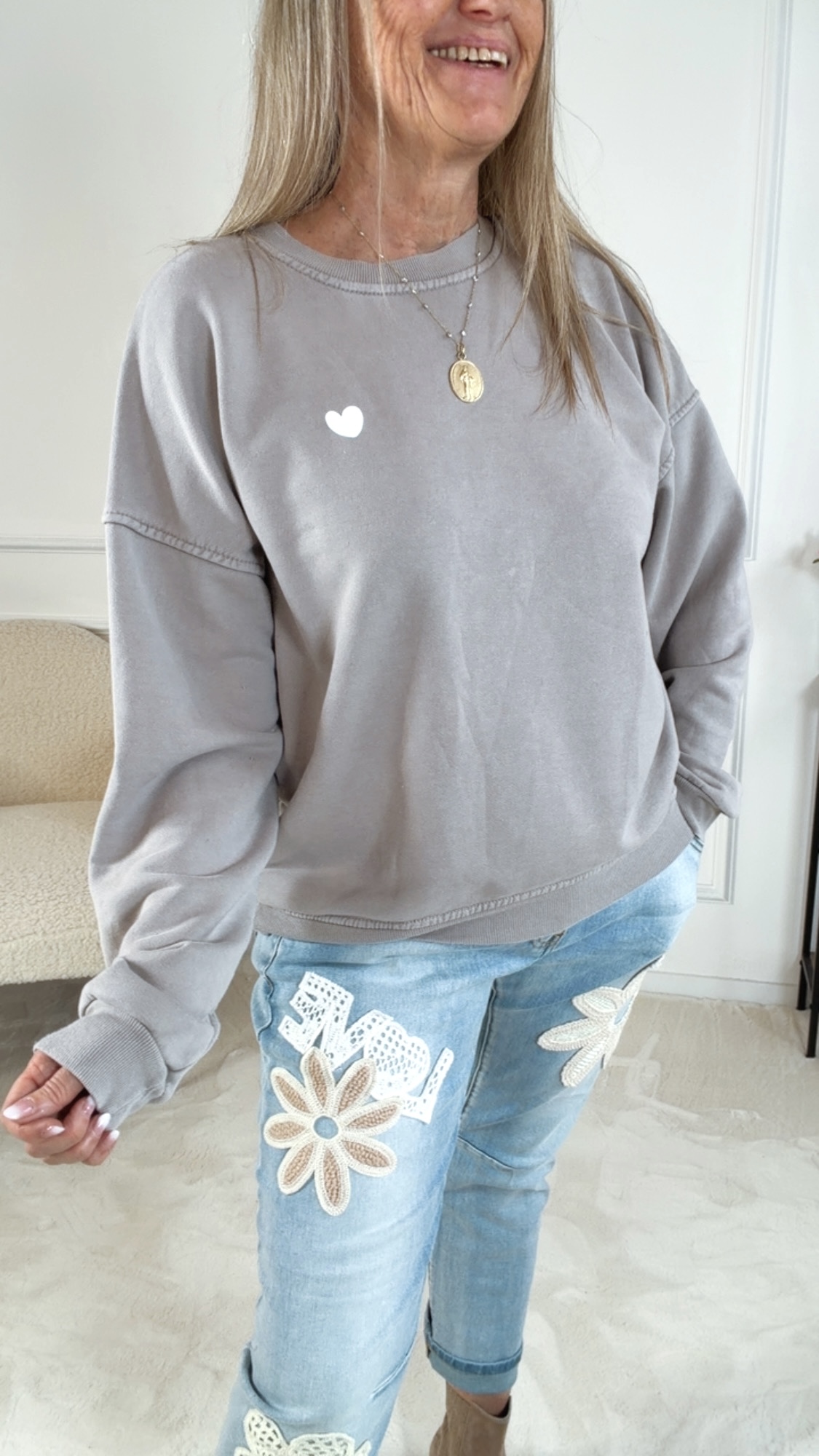 Setze ein modisches Statement mit Herz – dieser Sweater bringt Komfort und Persönlichkeit in deinen Kleiderschrank. ❤️