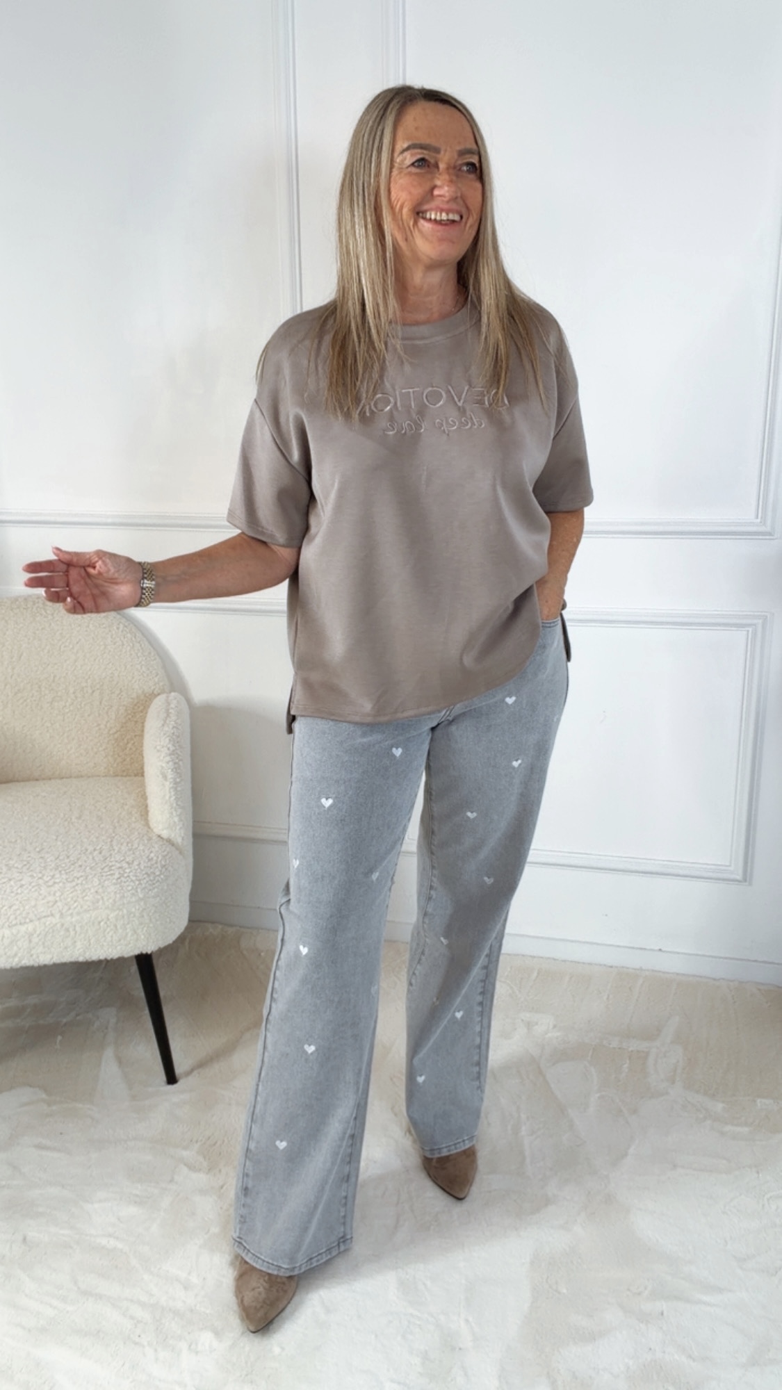 Unser Sweater Kurzarm „Devotion Deep Love“ verbindet lässigen Chic mit luxuriösem Tragekomfort. Der feine Butterstoff schmeichelt der Haut und sorgt für ein unglaublich weiches, leichtes Gefühl – perfekt für jede Jahreszeit.