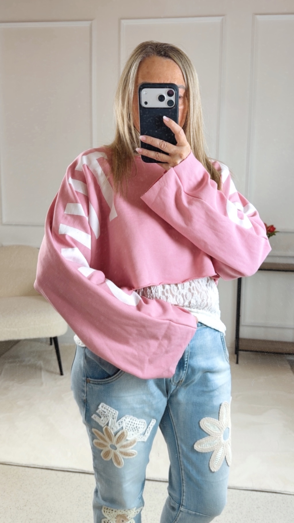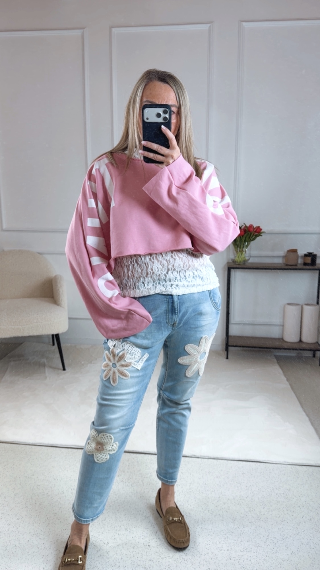 SWEATER LACE LANGARM CROPPED Made in Italy 34 - 40