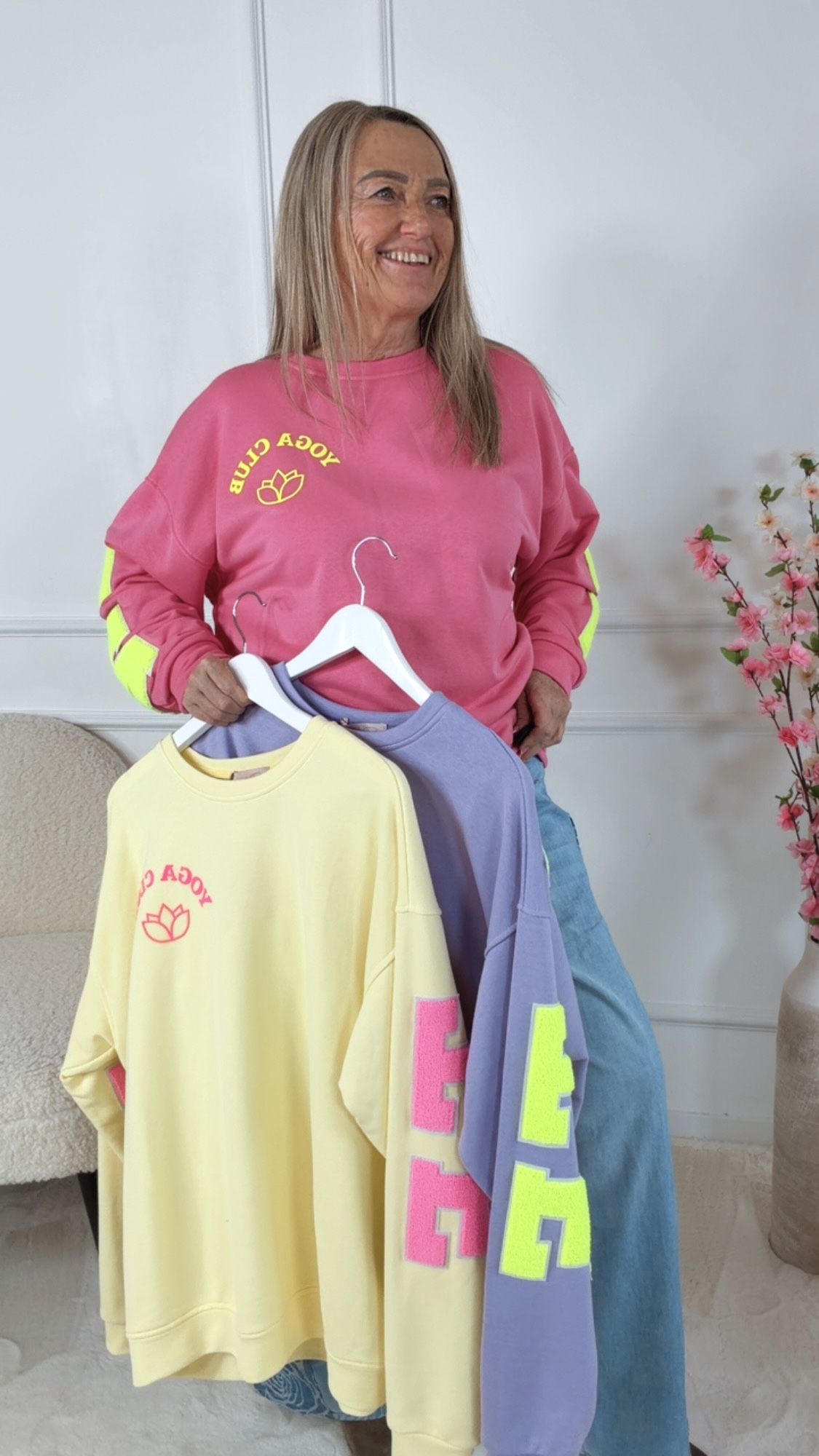 Durch den hohen Baumwollanteil trägt sich der Pullover angenehm weich und bietet optimalen Komfort – perfekt für Yoga, entspannte Tage oder stylische Casual-Looks ☁️.