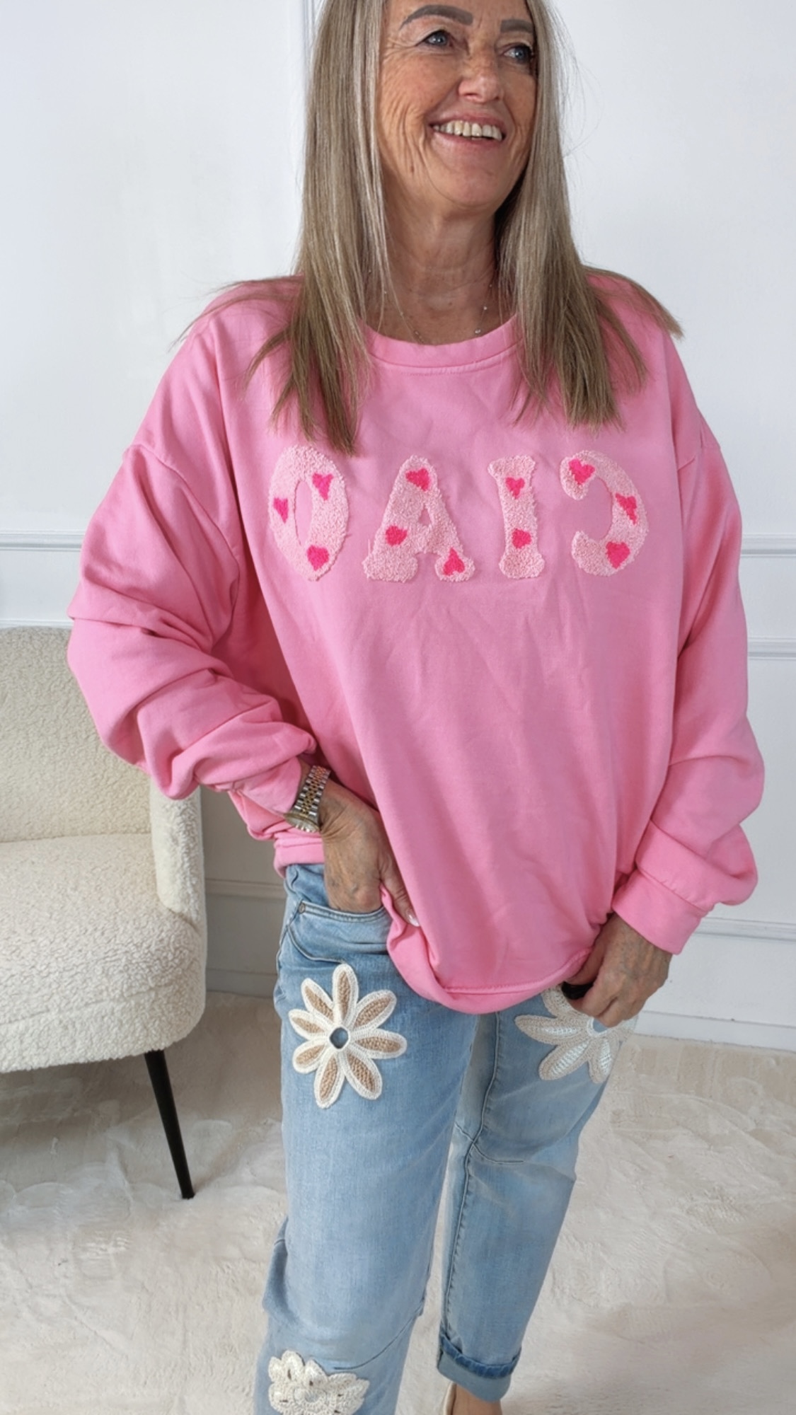 • Dieser lässige Sweater bringt italienisches Flair in deine Garderobe! Das Highlight ist die stilvolle, bestickte Aufschrift „Ciao“ auf der Vorderseite, die dem Sweater einen modernen, verspielten Charakter verleiht und gleichzeitig einen charmanten Eyecatcher setzt.