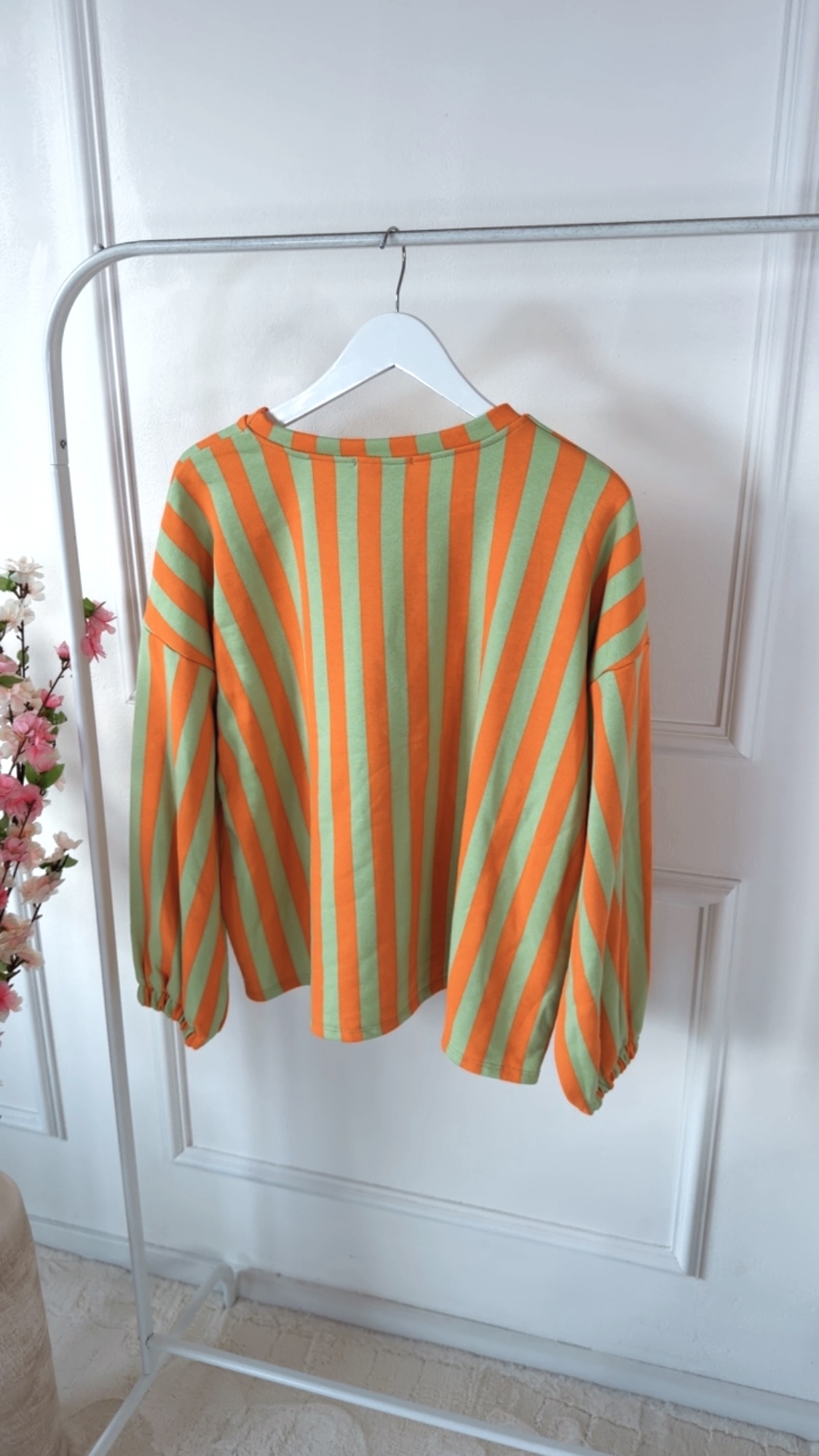 Dank des angenehmen Materialmixes fühlt sich das Sweatshirt weich auf der Haut an und eignet sich perfekt für entspannte Alltagslooks – ob zu Jeans, Leggings oder Rock. Die verschiedenen Farbkombinationen machen es zu einem echten Statement-Piece für jede Garderobe.