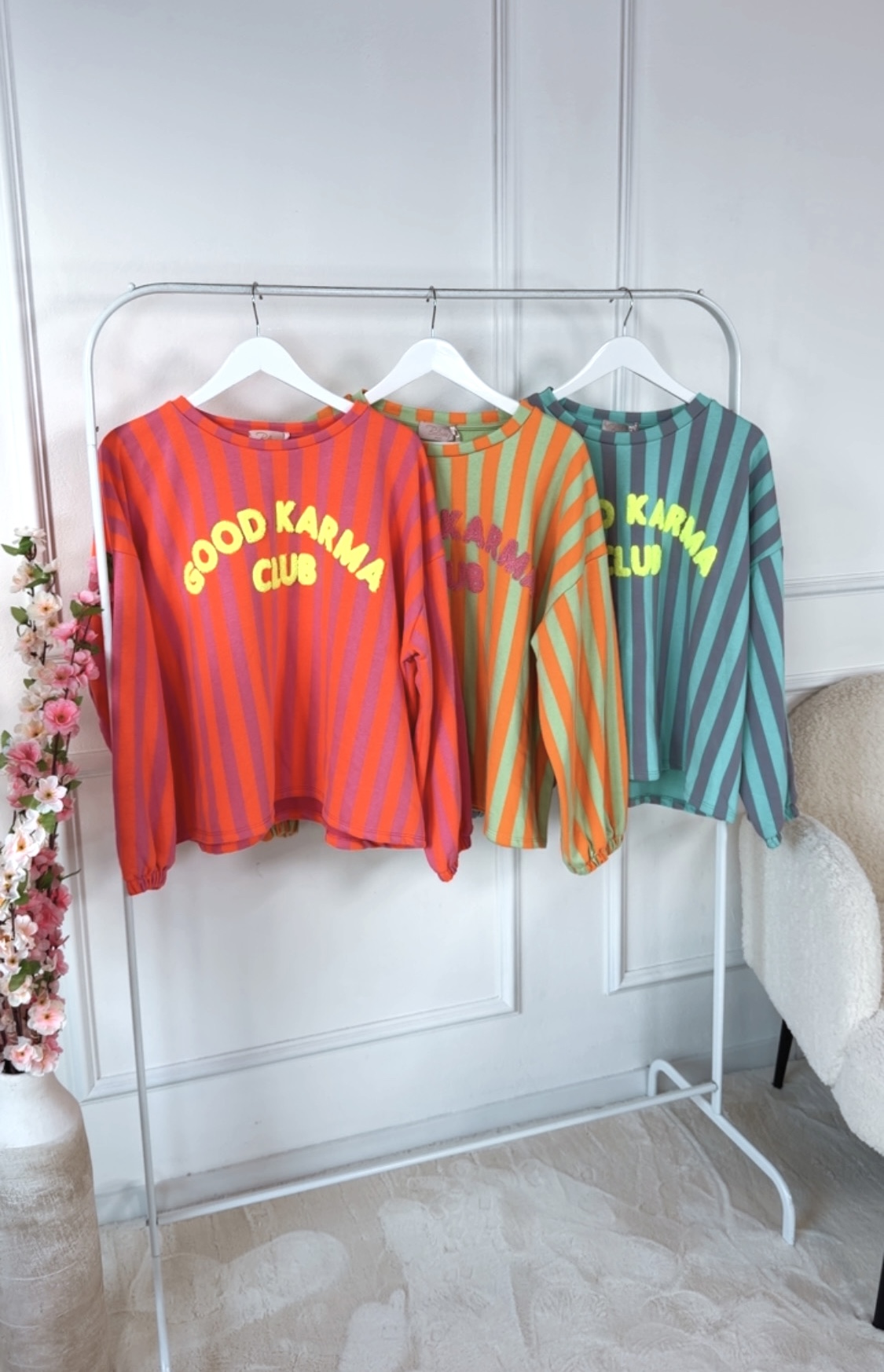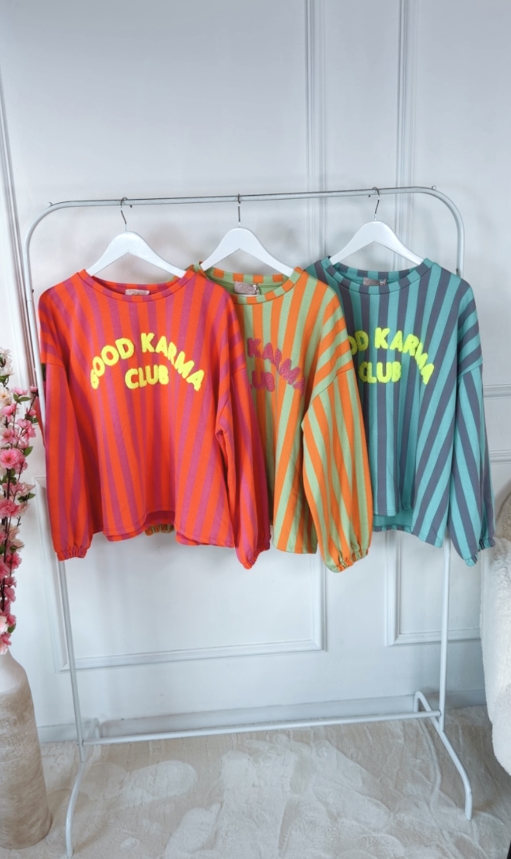 Sweatshirt „Good Karma Club“ – Color Stripe Made in Italy