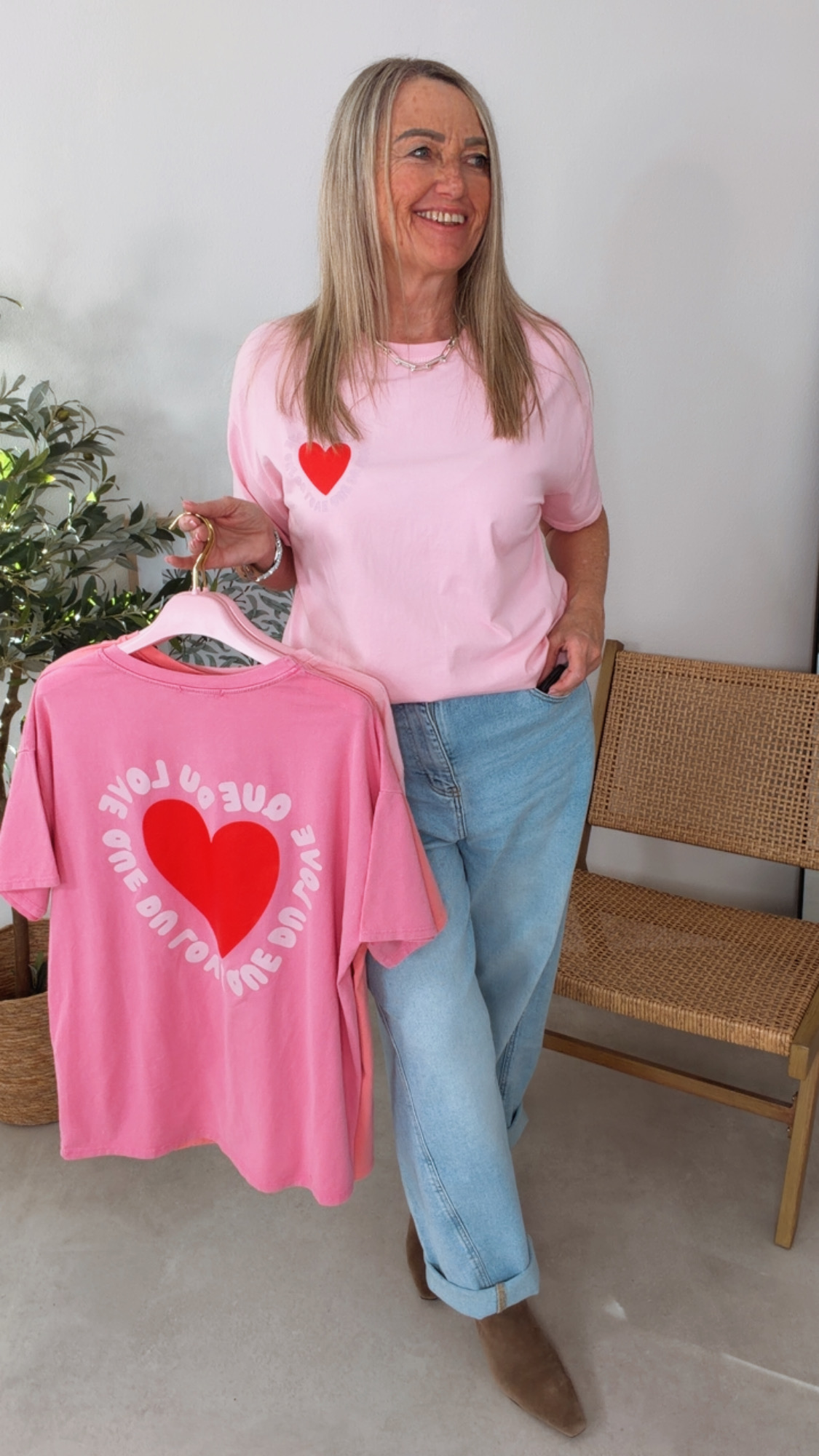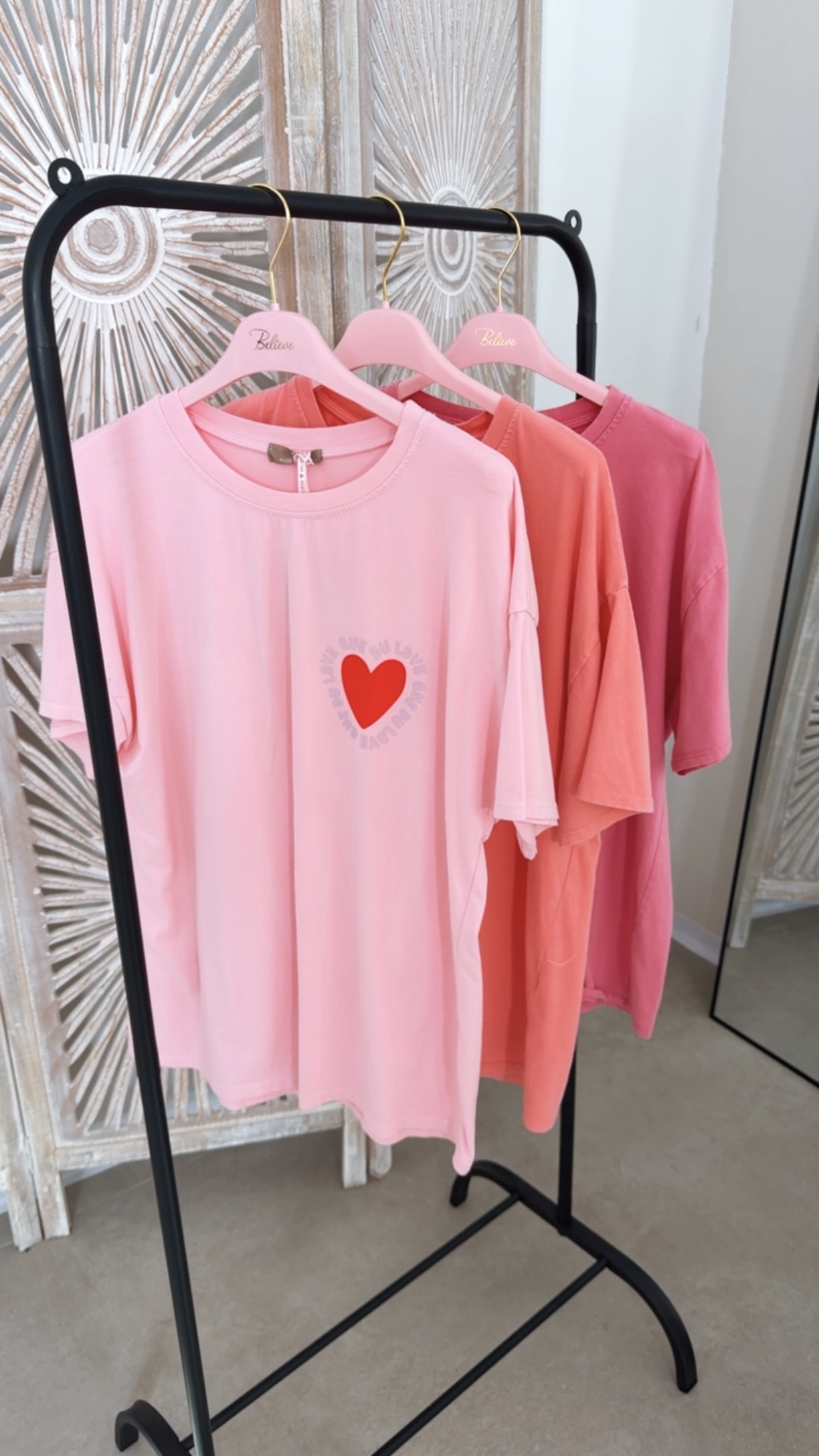 Der kleine Herz-Print mit Schriftzug auf der Vorderseite setzt einen zarten, romantischen Akzent und macht das Shirt zu einem echten Lieblingsstück 💕😊