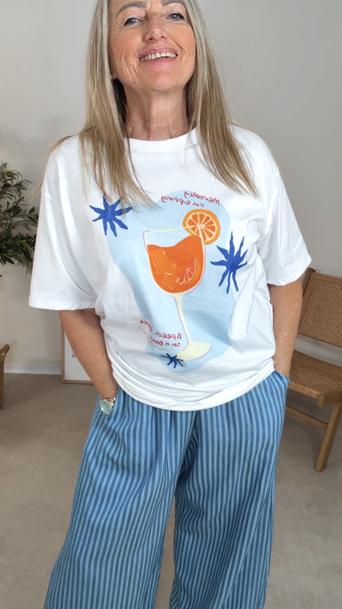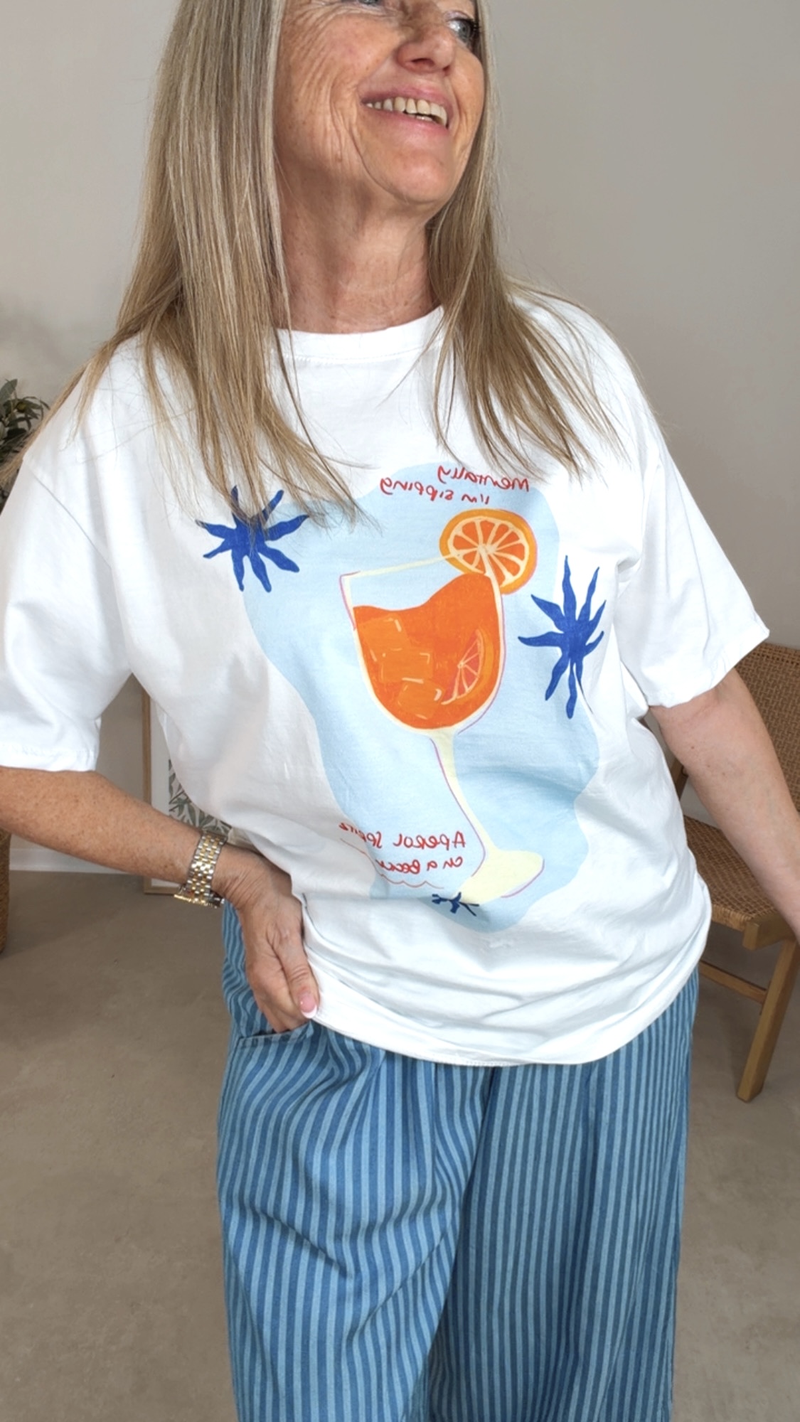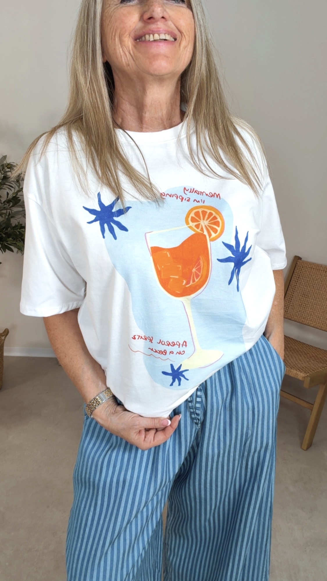 Mit seinem frischen Drink-Print im Vorderbereich bringt es echtes Beach- & Aperitivo-Feeling in deinen Alltag 🍹🌴💙