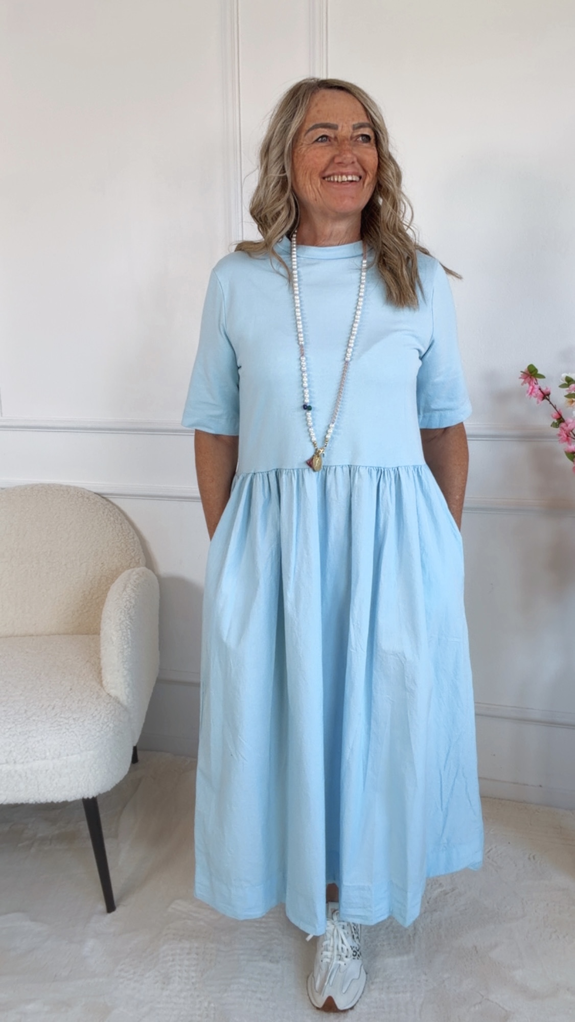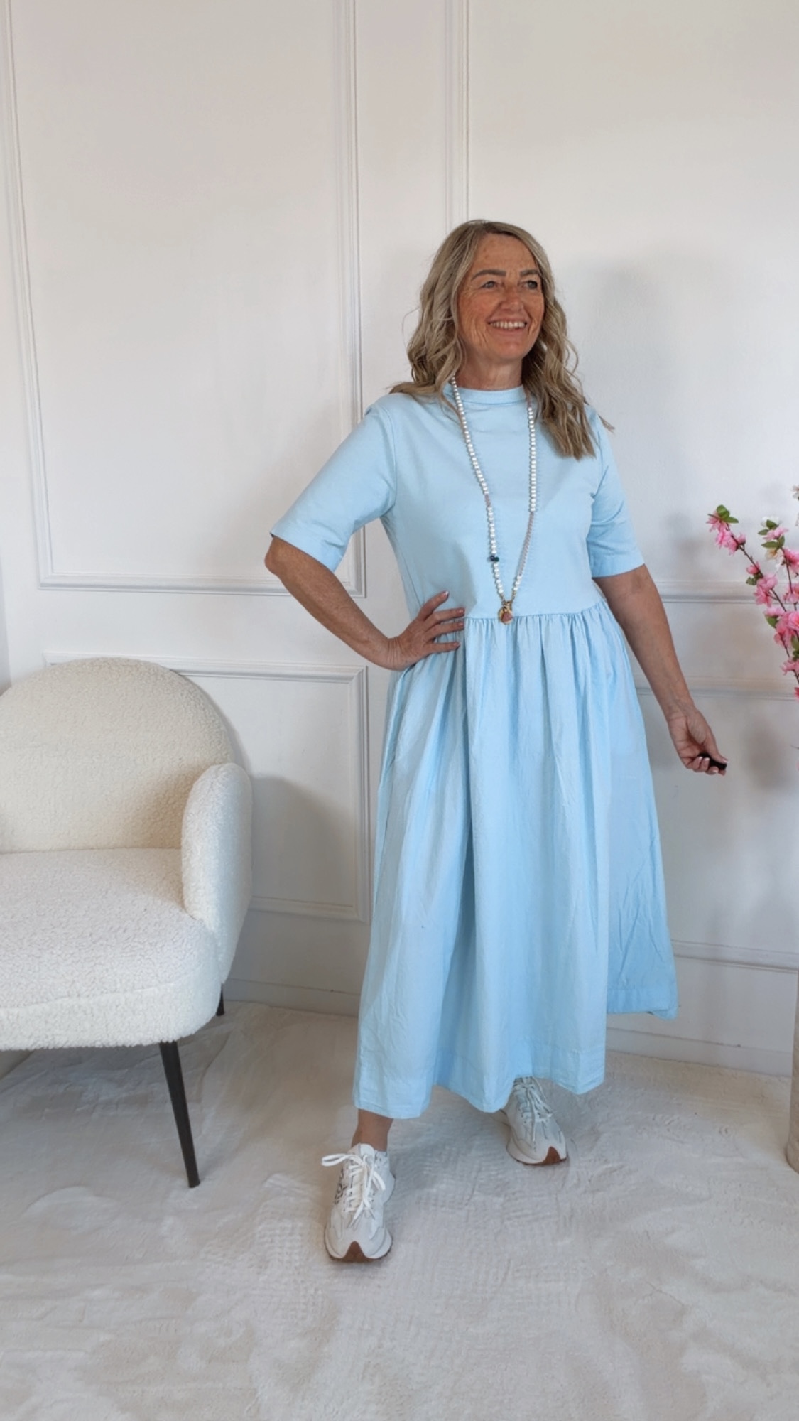 Das wunderschöne T-Shirt-Kleid „Alviretta“ vereint Komfort und Stil auf ganz besondere Weise. Der schlichte, cleane Schnitt wird durch den locker fallenden Rockteil wunderbar feminin ergänzt – ein echtes Wohlfühl-Piece! ☀️💗