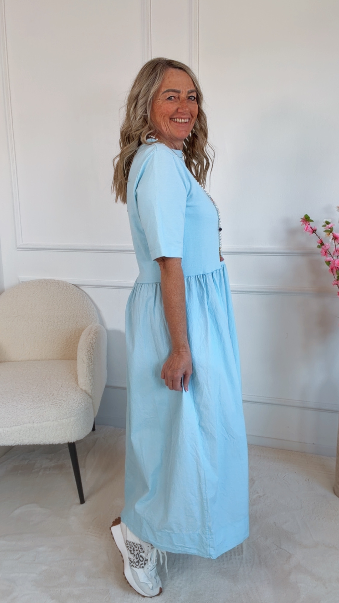 Dank 100% Baumwolle fühlt sich das Kleid herrlich weich auf der Haut an und bietet eine luftige, angenehme Tragequalität – ideal für warme Tage! ☁️🌸