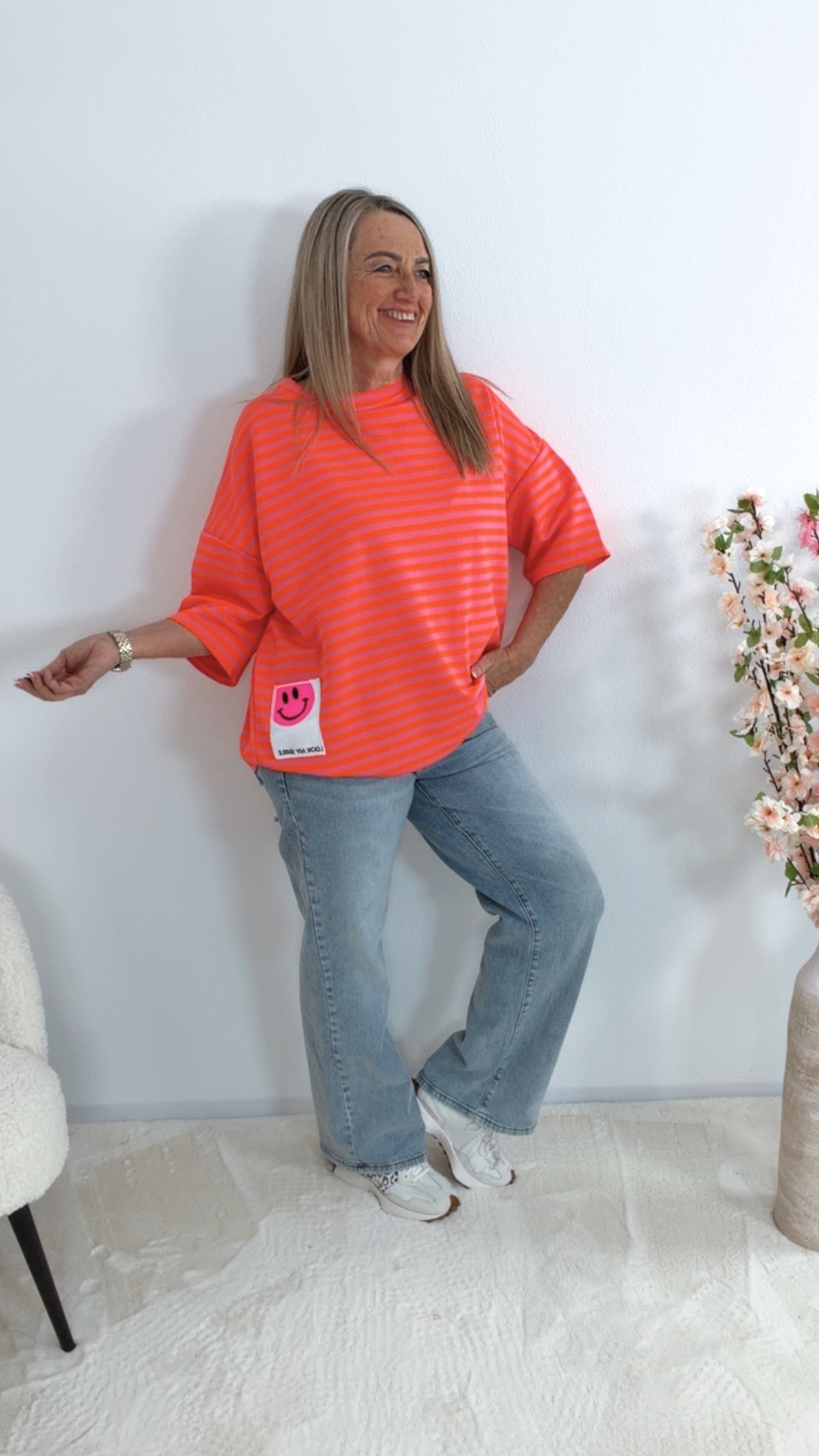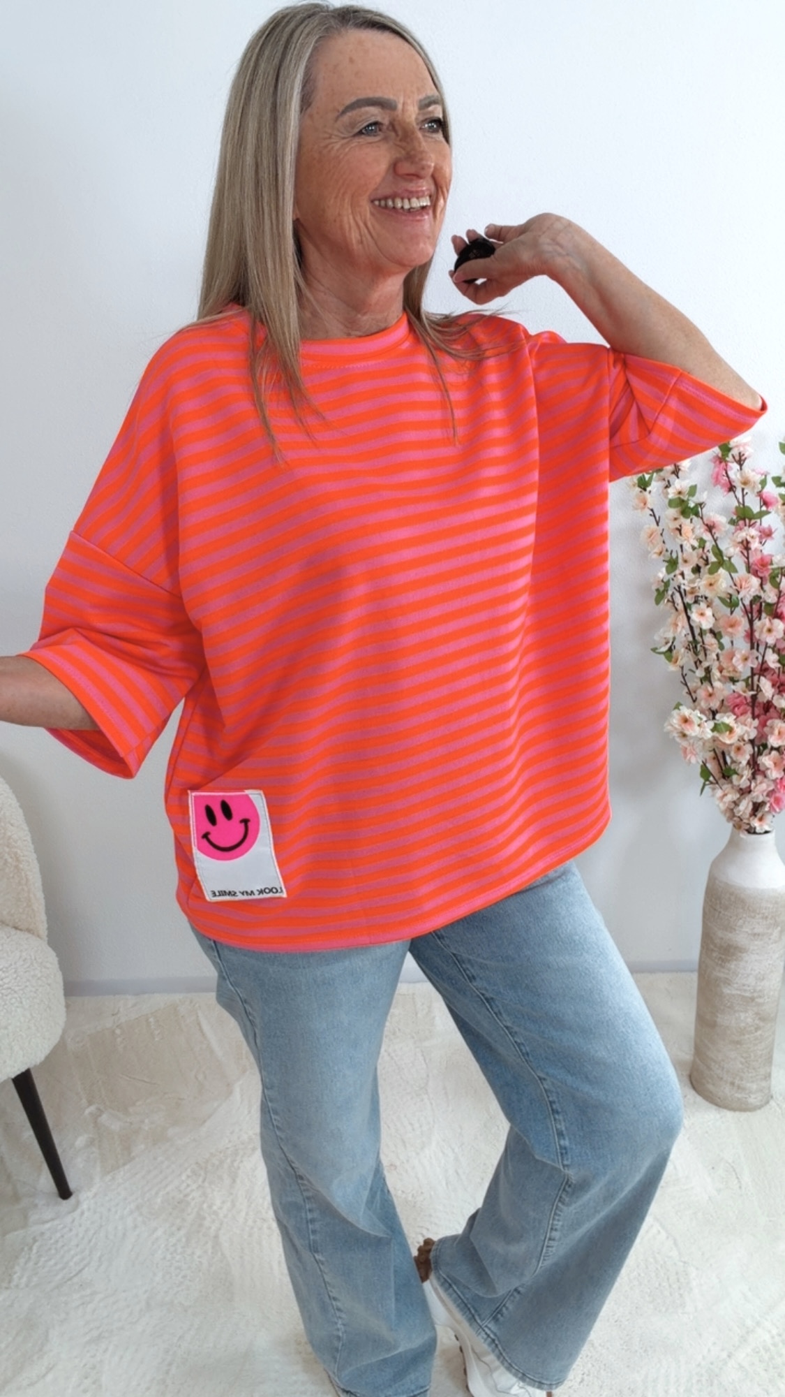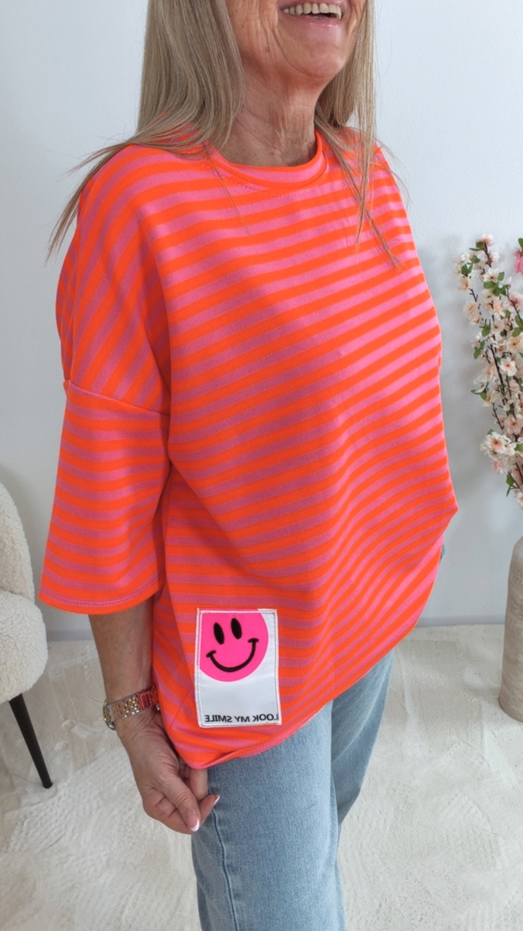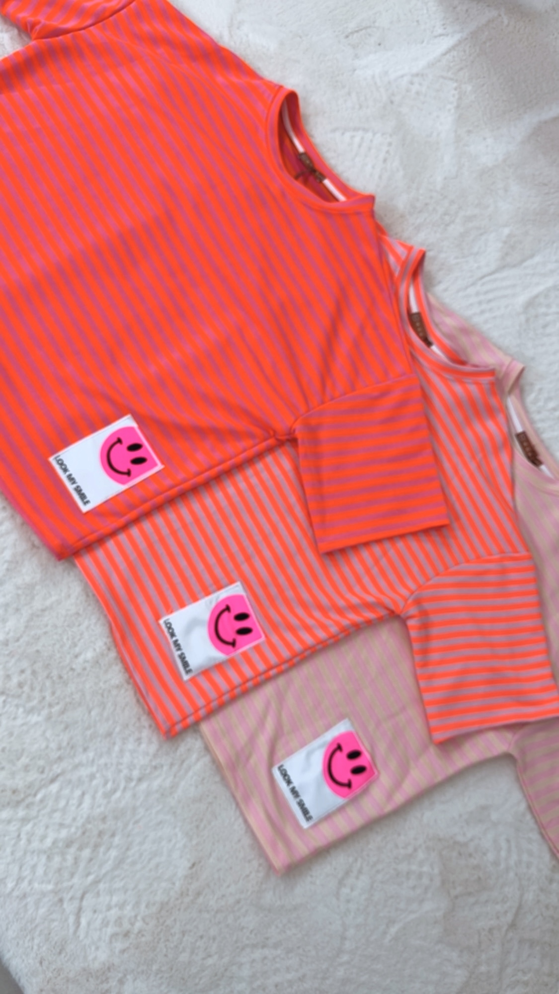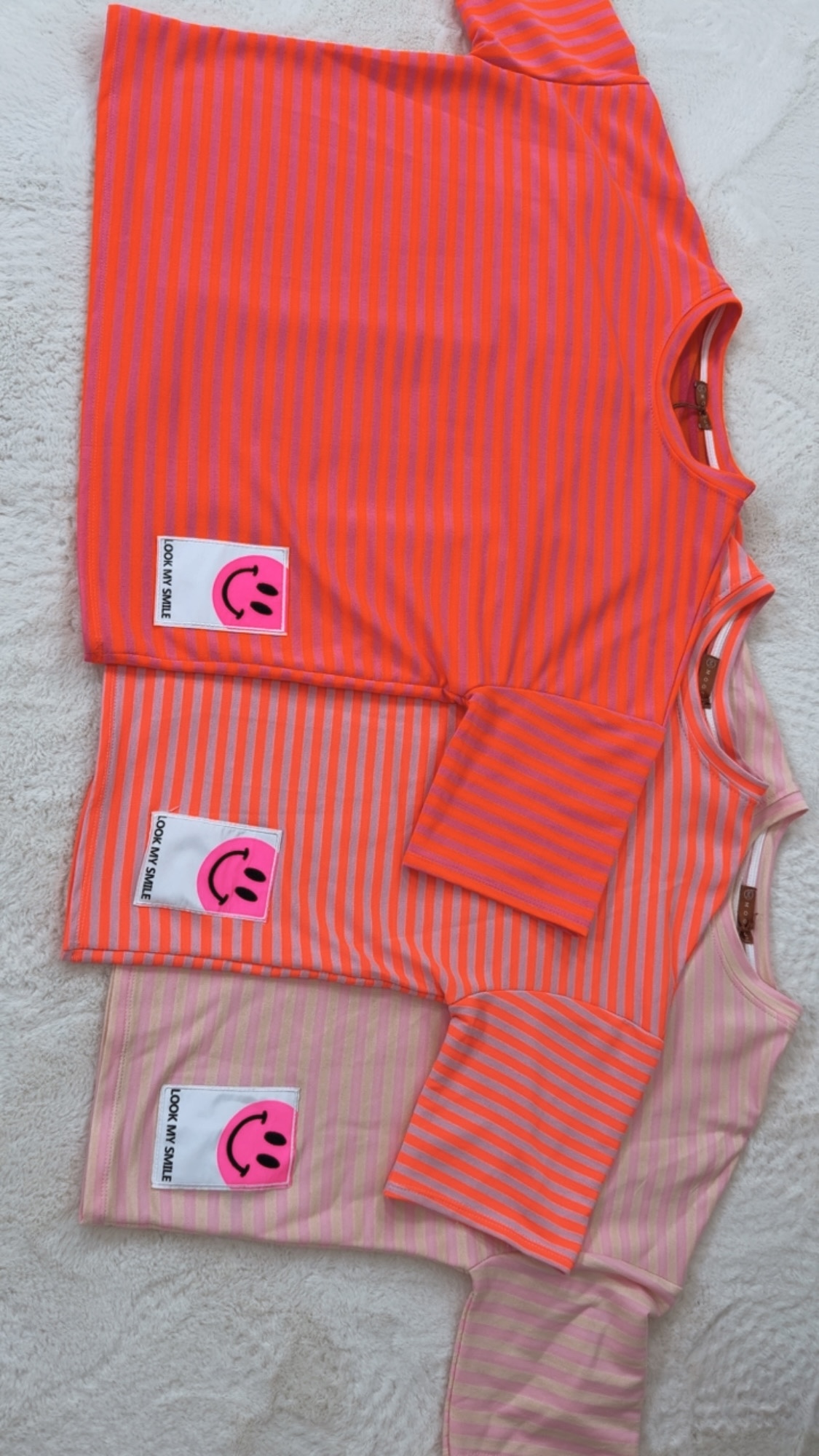 Mit seinem leuchtenden Streifen-Design und dem süßen Smiley-Patch 😊 ist er ein echter Hingucker und perfekt für alle, die es farbenfroh und besonders lieben 💕✨