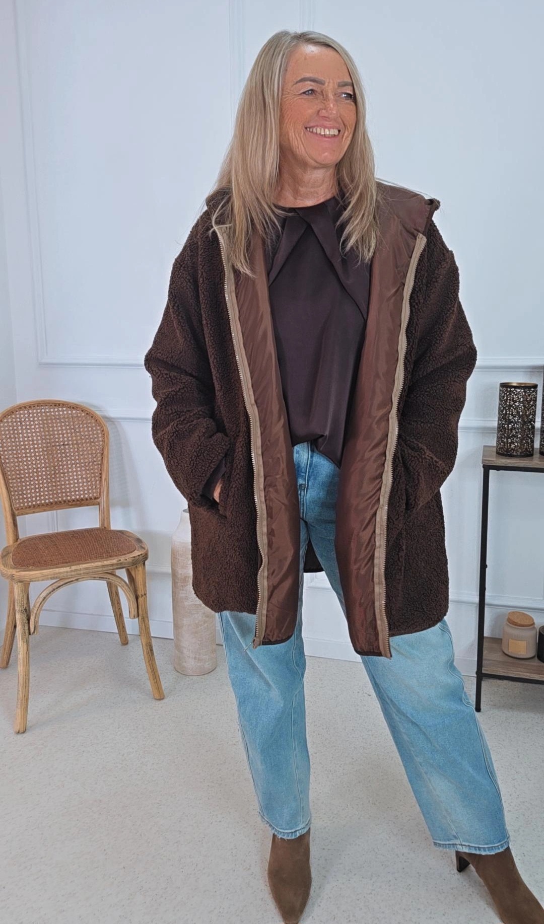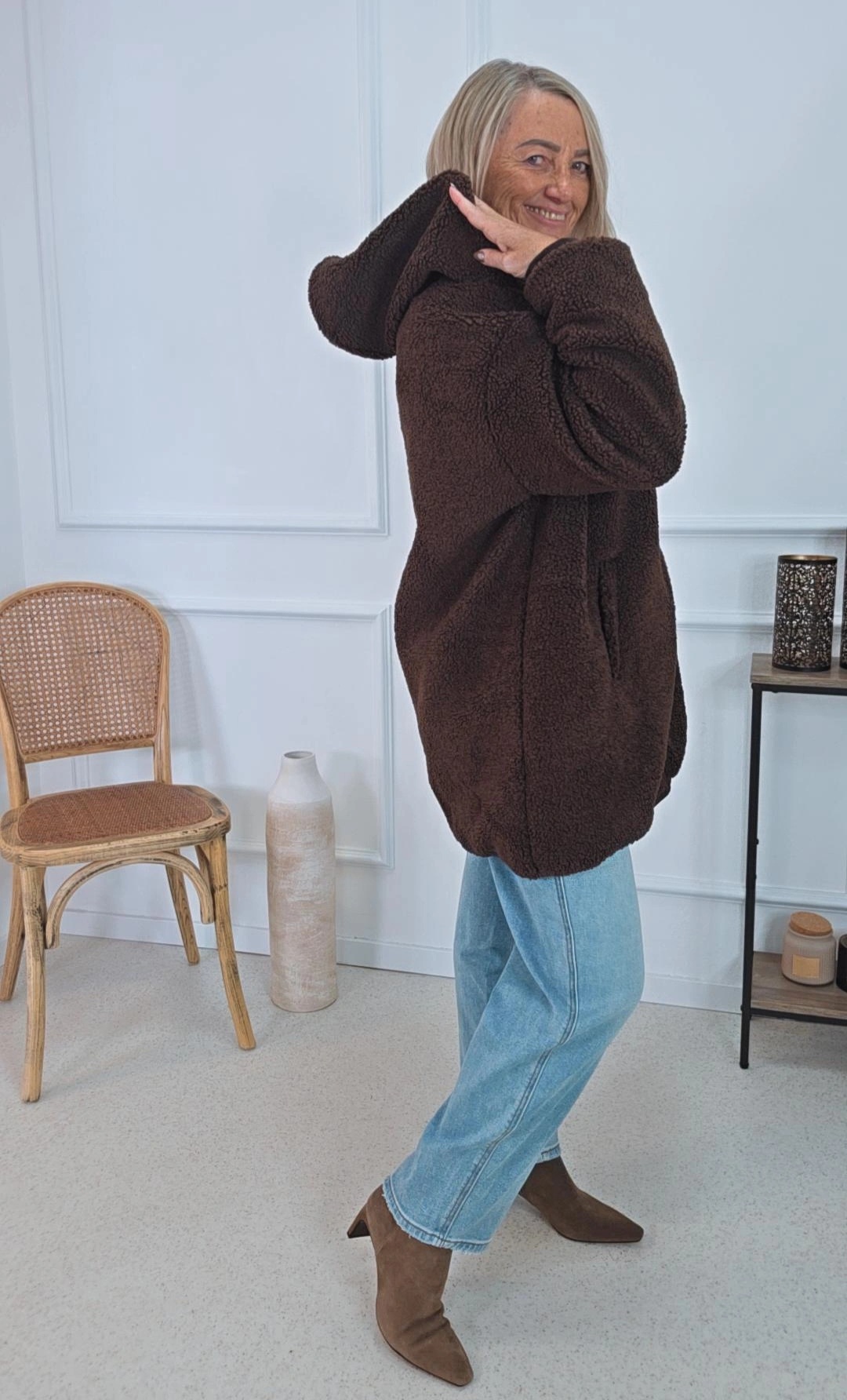 Produktinformationen "TEDDY MANTEL JENNY Made in Italy 34-44/46 Kapuzen-Jacke mit Reißverschluss in Midi-Länge"