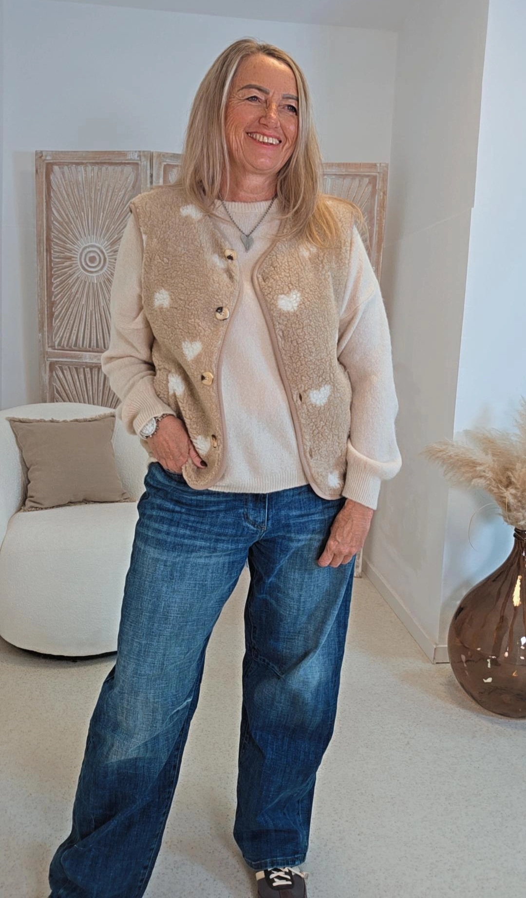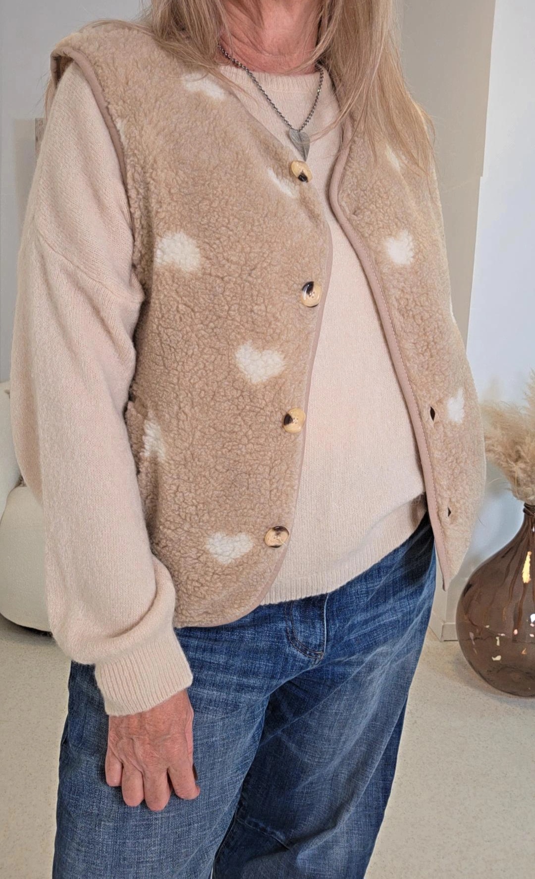 BEIGE-CREME TRENDIGE TEDDY WESTE CLAUDIA SMALL HEART.2