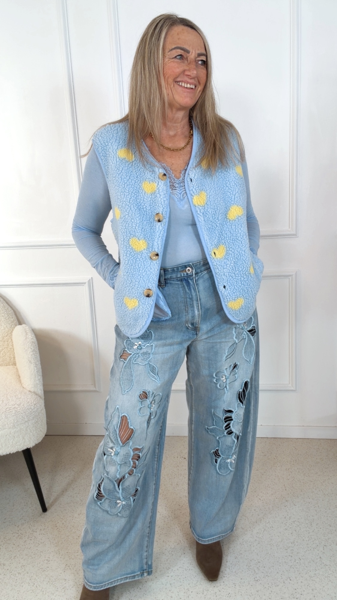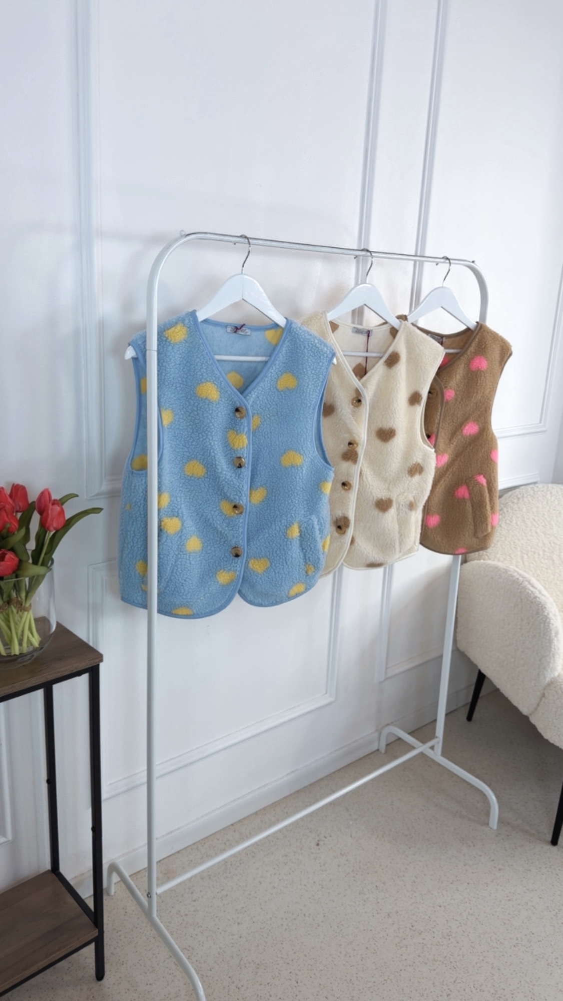 BLAU GELB TRENDIGE TEDDY WESTE CLAUDIA SMALL HEART.1