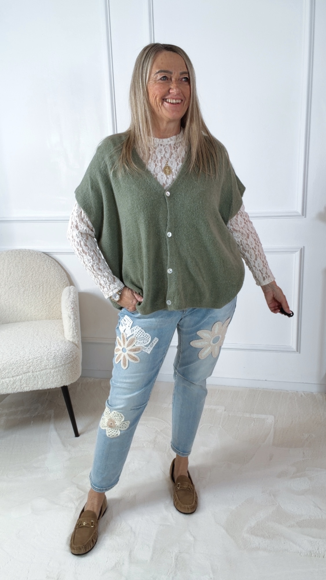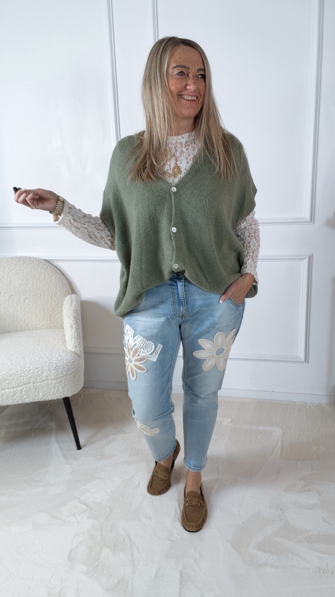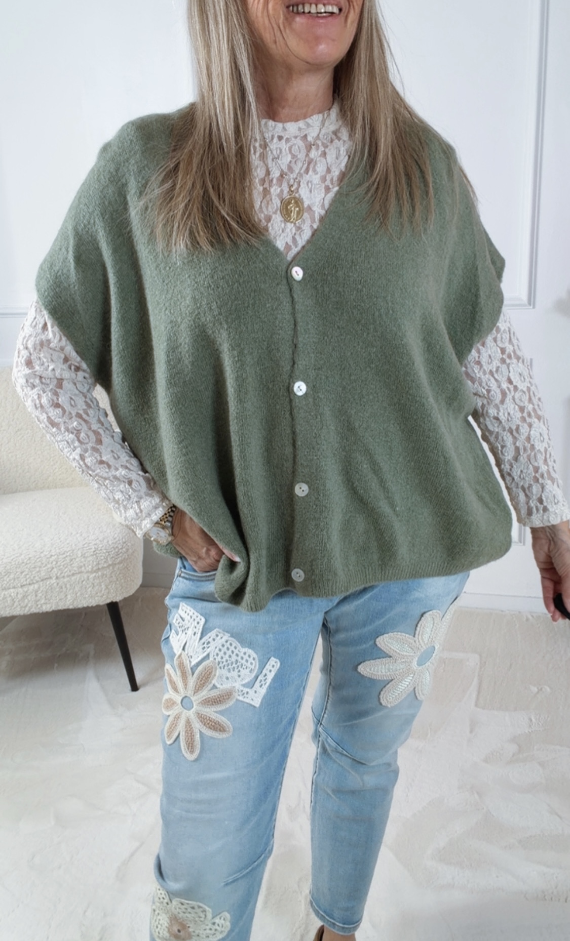 Der feminine V-Ausschnitt streckt optisch die Figur und verleiht dem Design eine elegante Note, während die klassische Knopfleiste zeitlose Akzente setzt. Offen getragen wirkt die Weste besonders entspannt, geschlossen sorgt sie für einen stilvollen, cleanen Look.